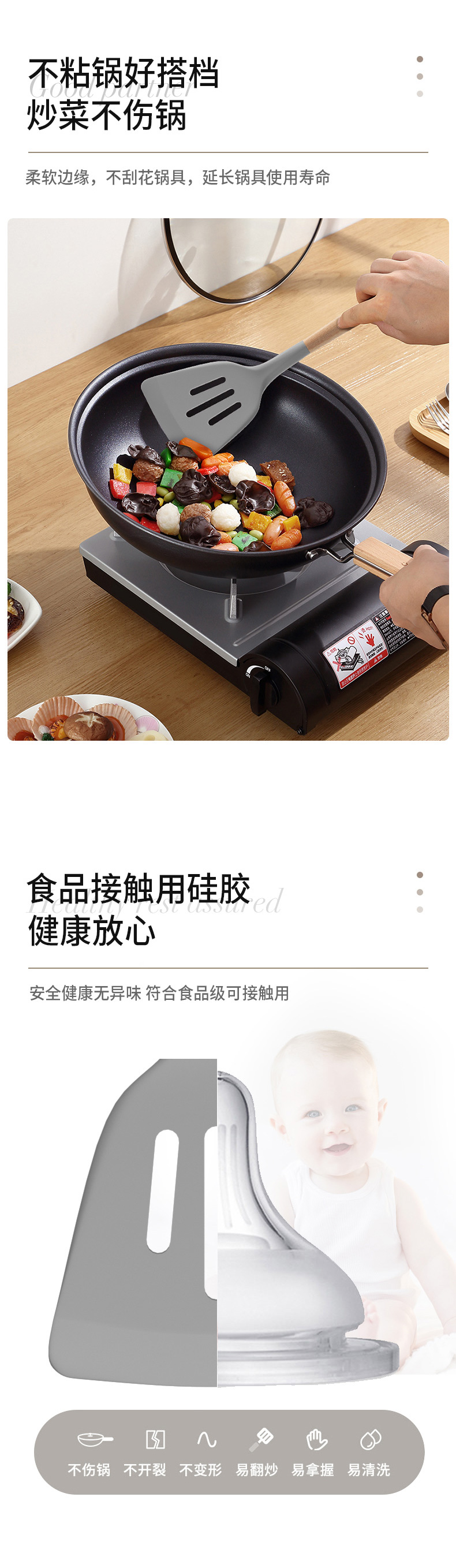 食品级硅胶、手柄榉木