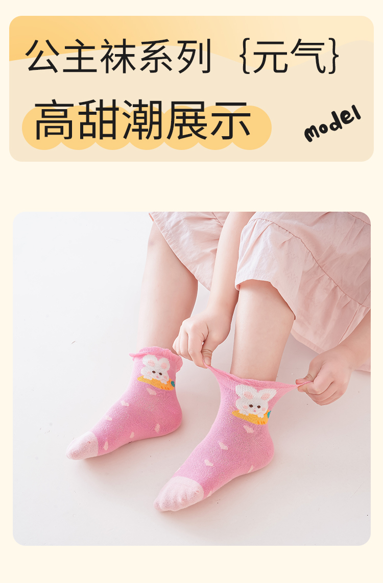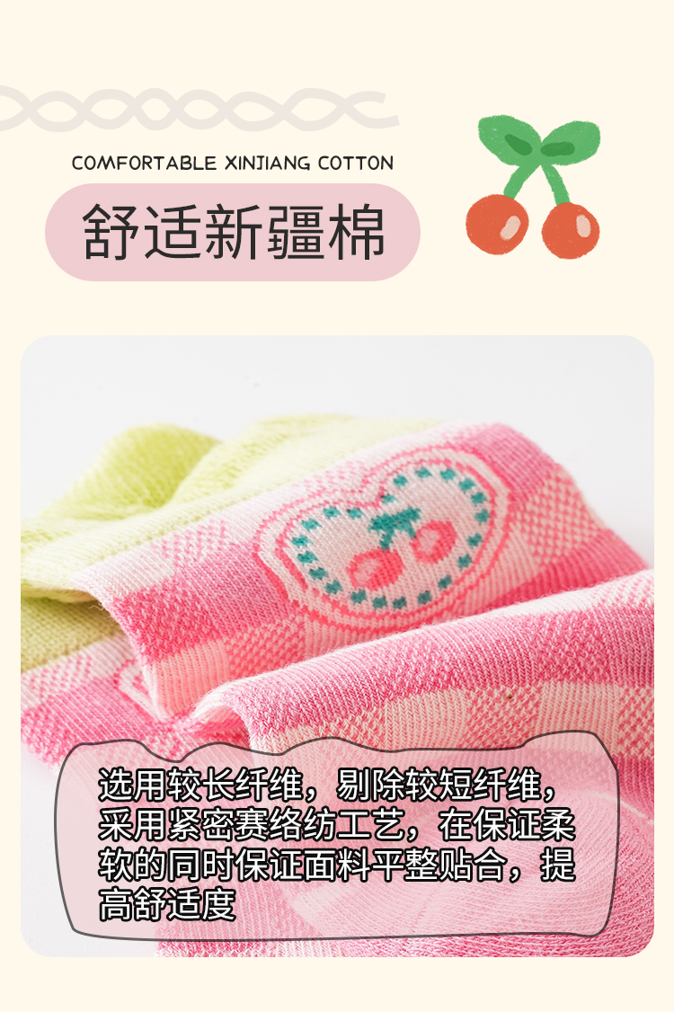 花辞日记纯棉儿童袜兔子樱桃粉色系中筒袜【10双装】