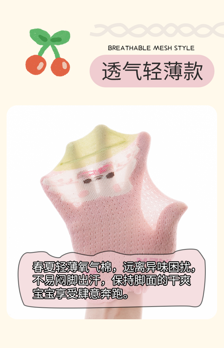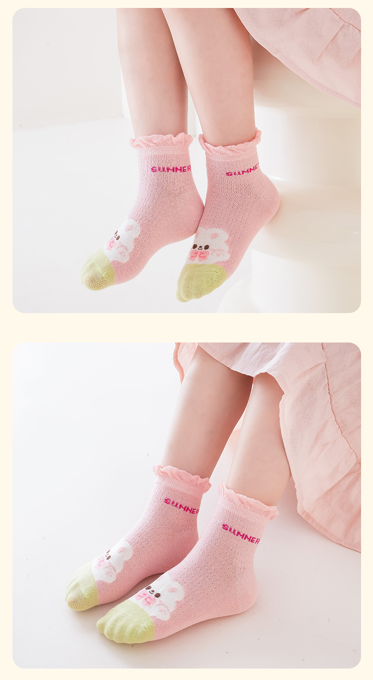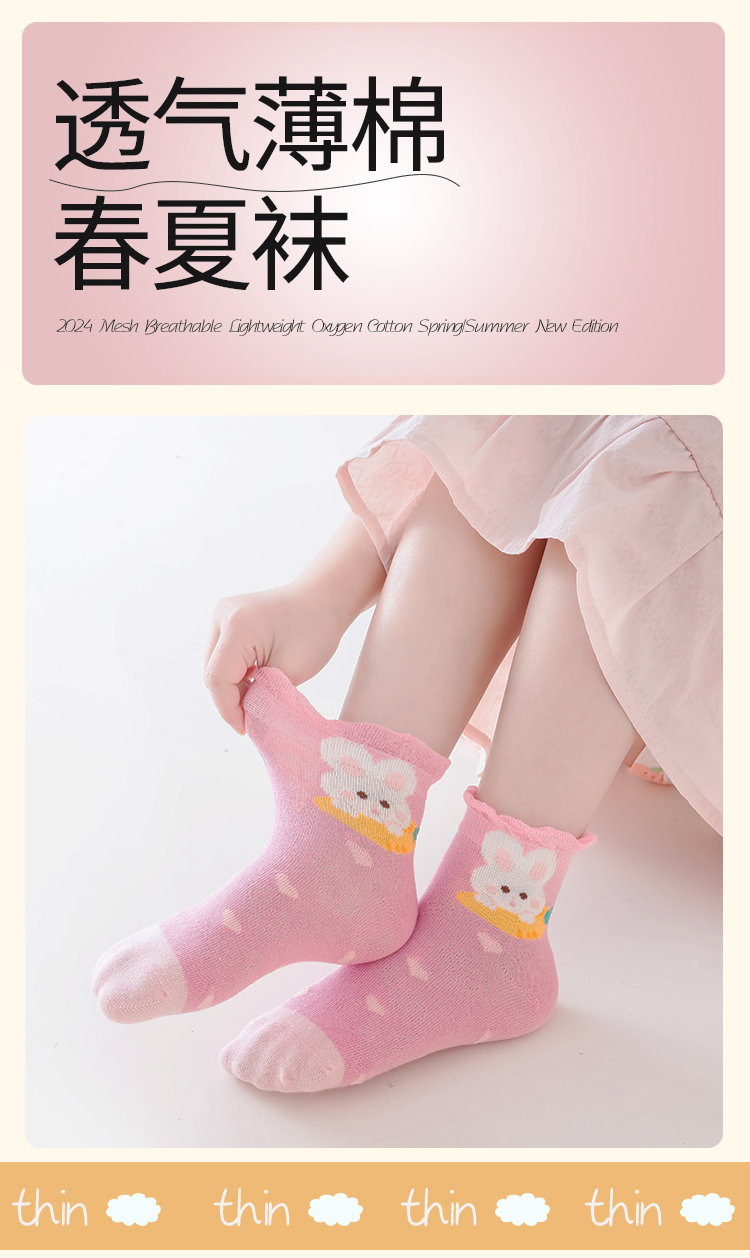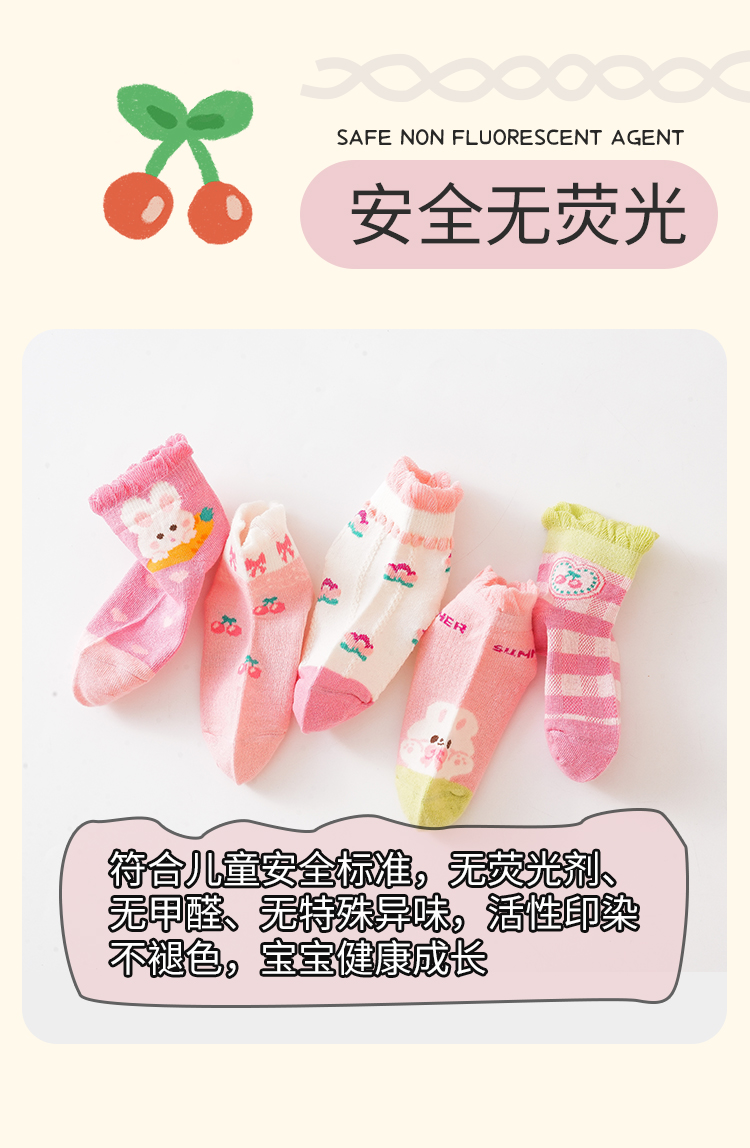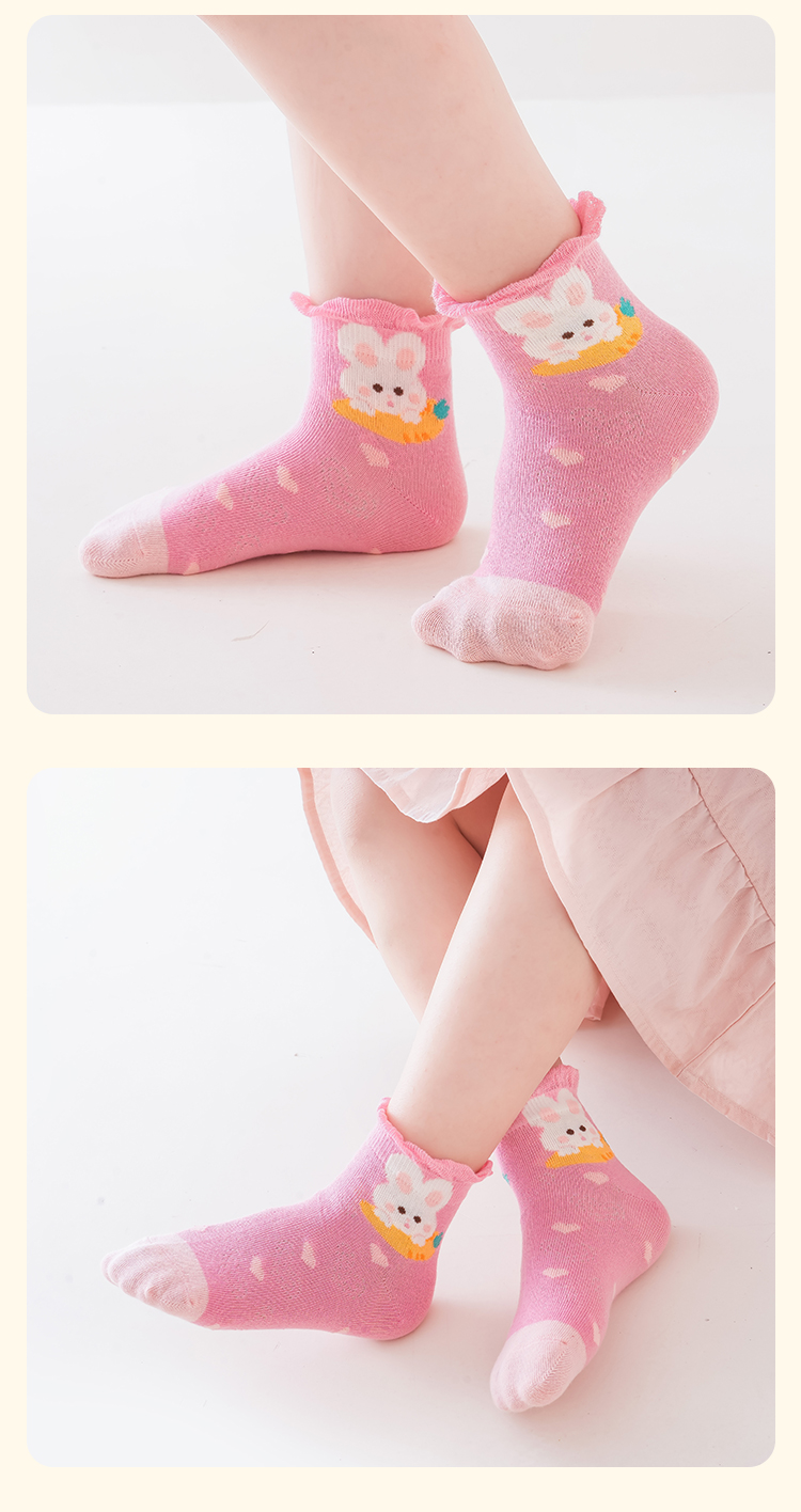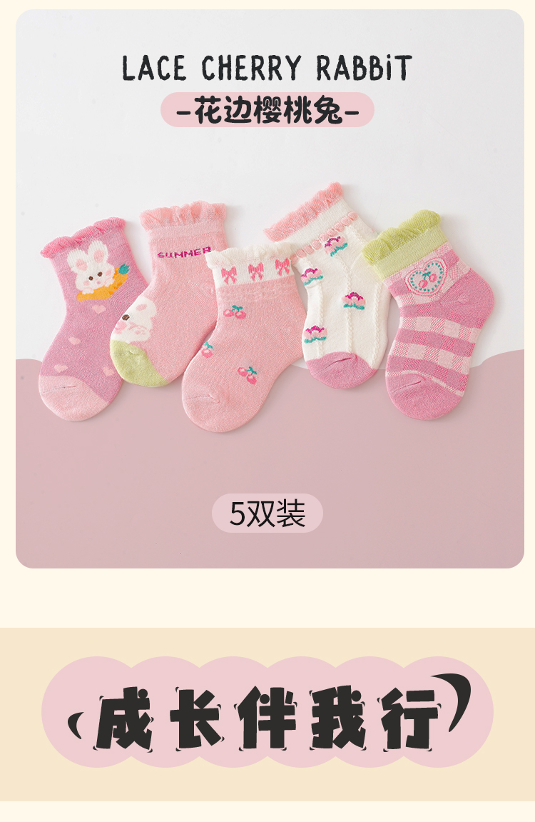 兔子樱桃粉色系中筒袜【5双装*2组】