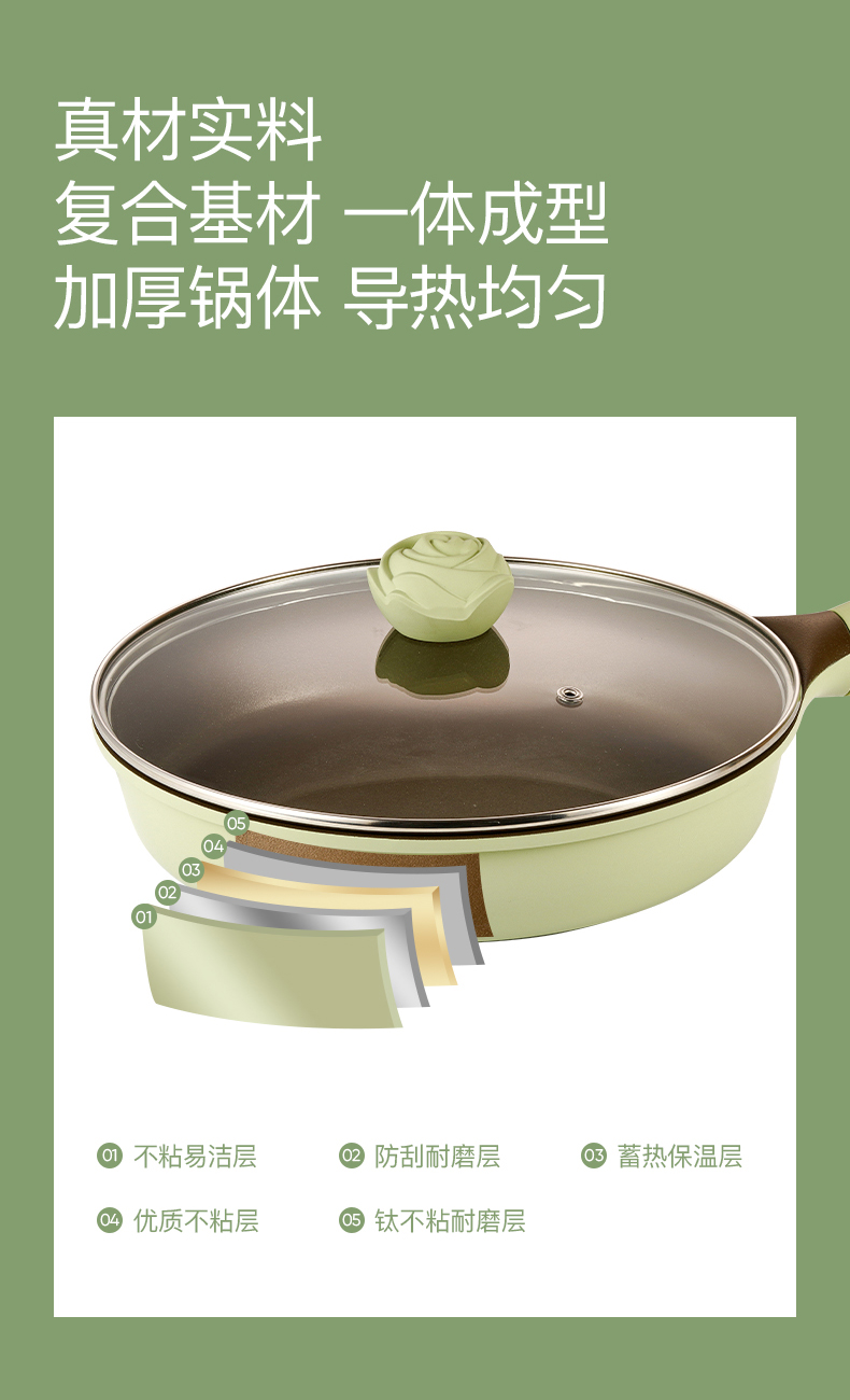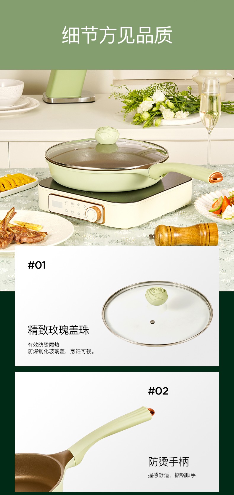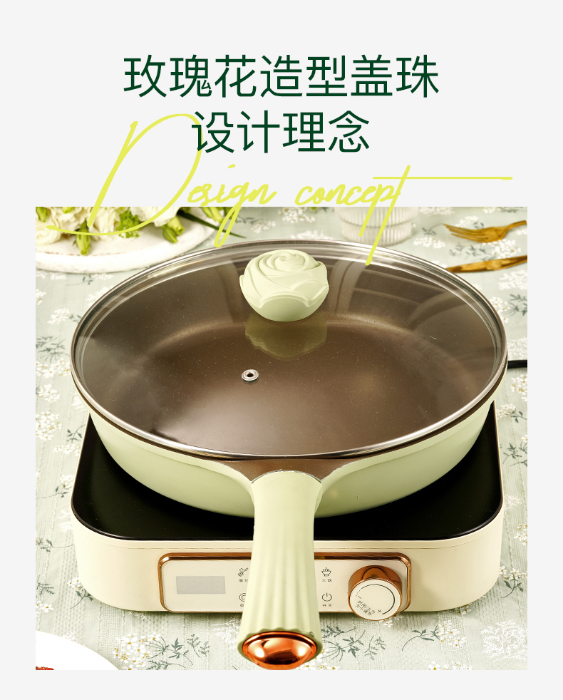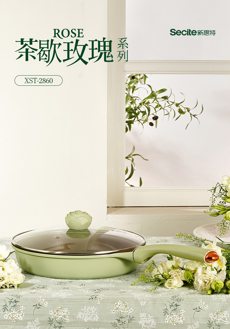 新思特Secite茶歇玫瑰系列2860煎锅不粘锅电磁炉 明火通用平底锅
