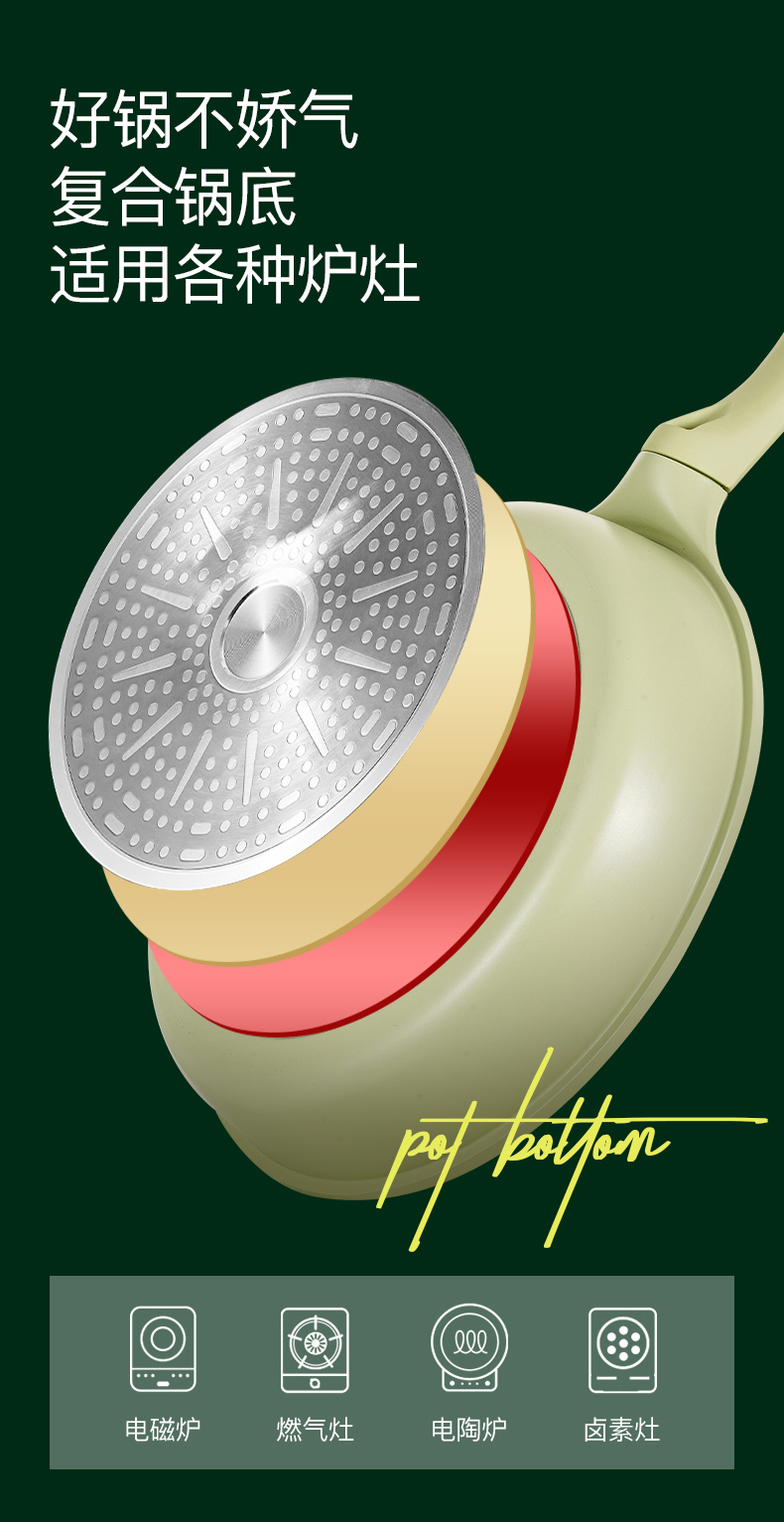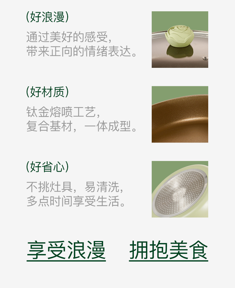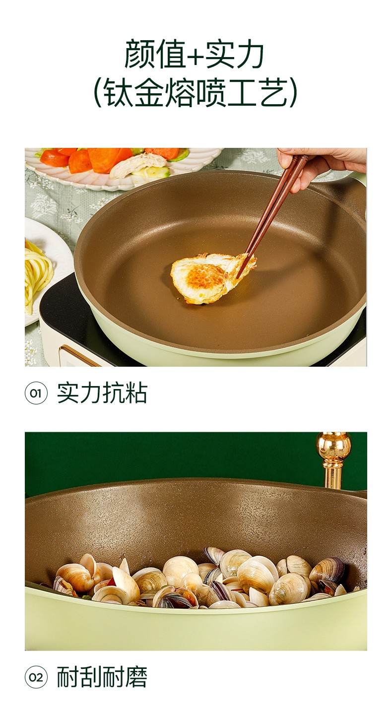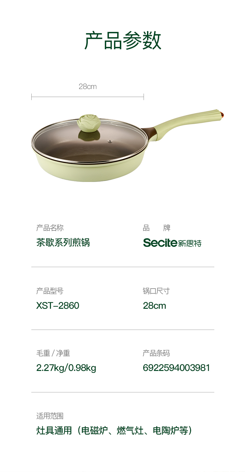新思特Secite茶歇玫瑰系列2860煎锅不粘锅电磁炉 明火通用平底锅