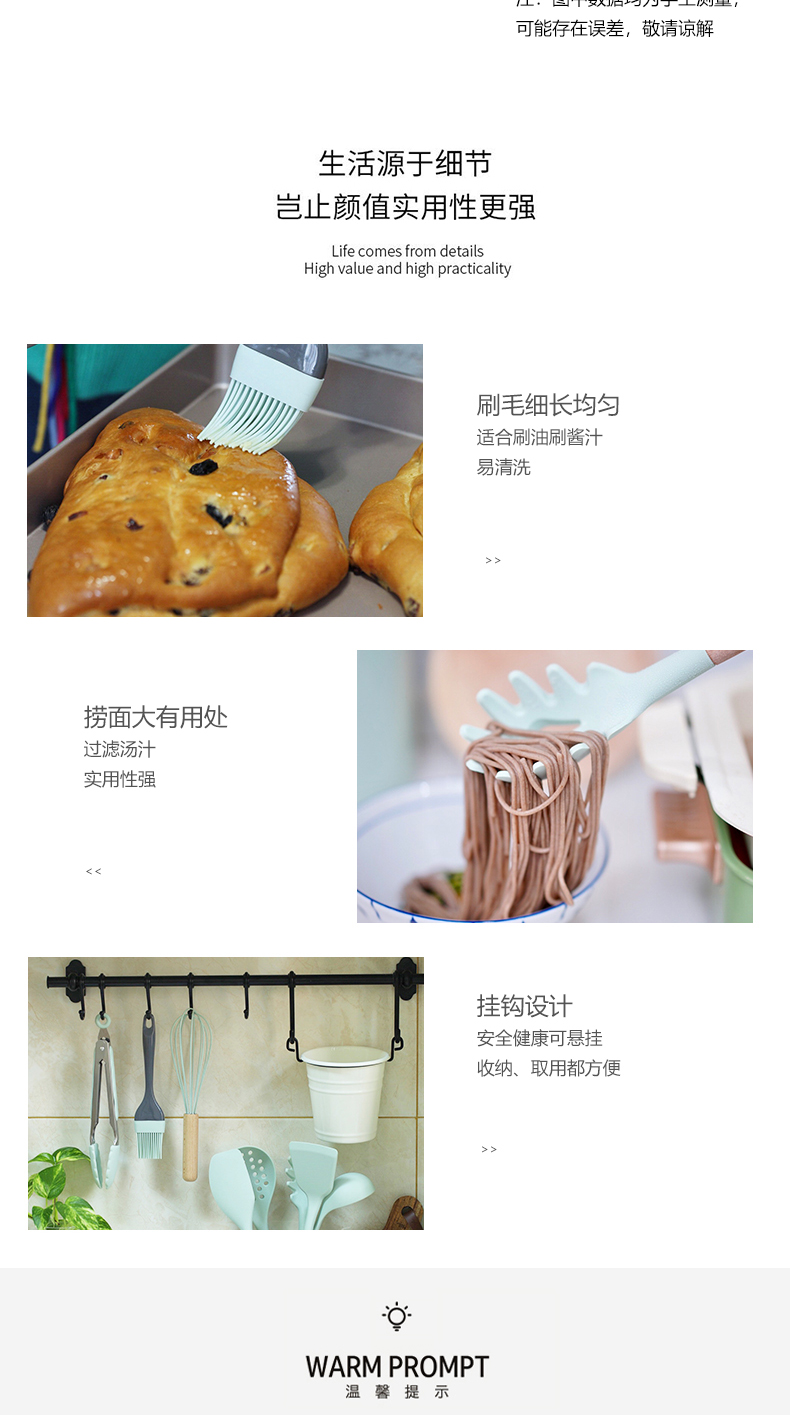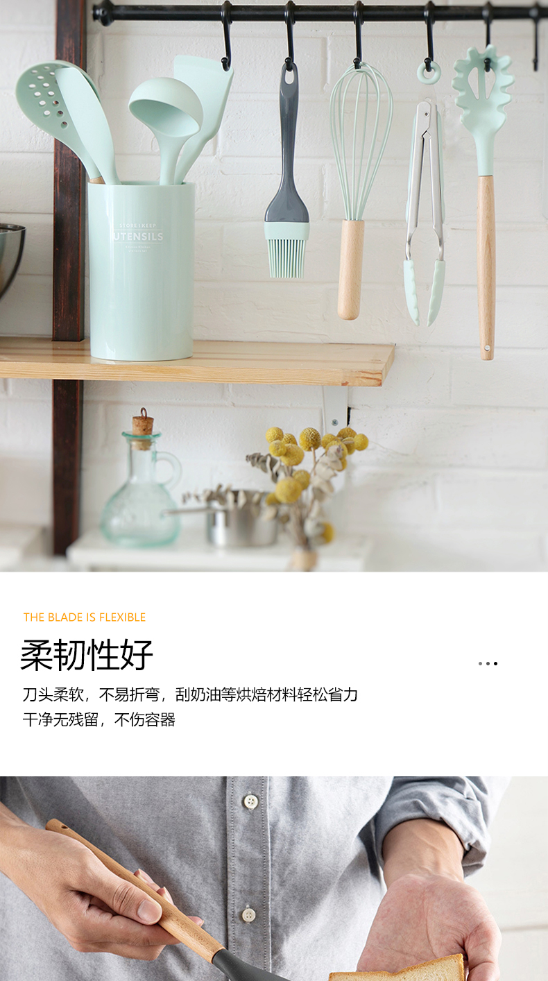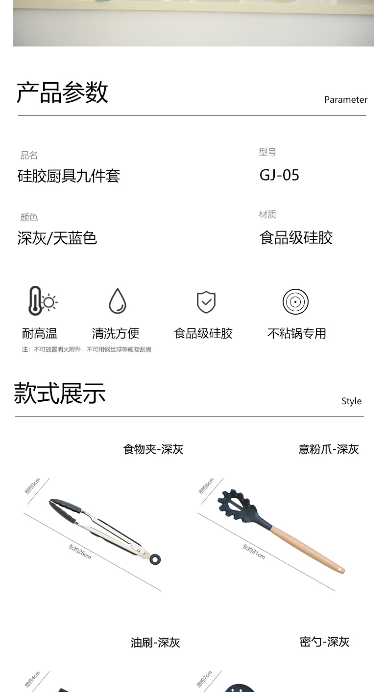 新思特GJ-05不粘锅专用食品级硅胶铲九件套硅胶铲子护锅铲勺 GJ-05九件套北欧蓝