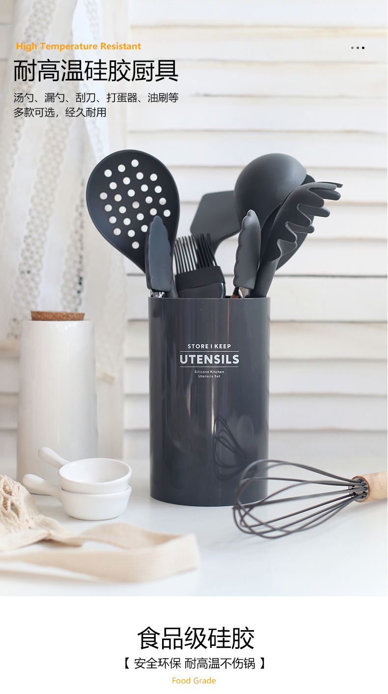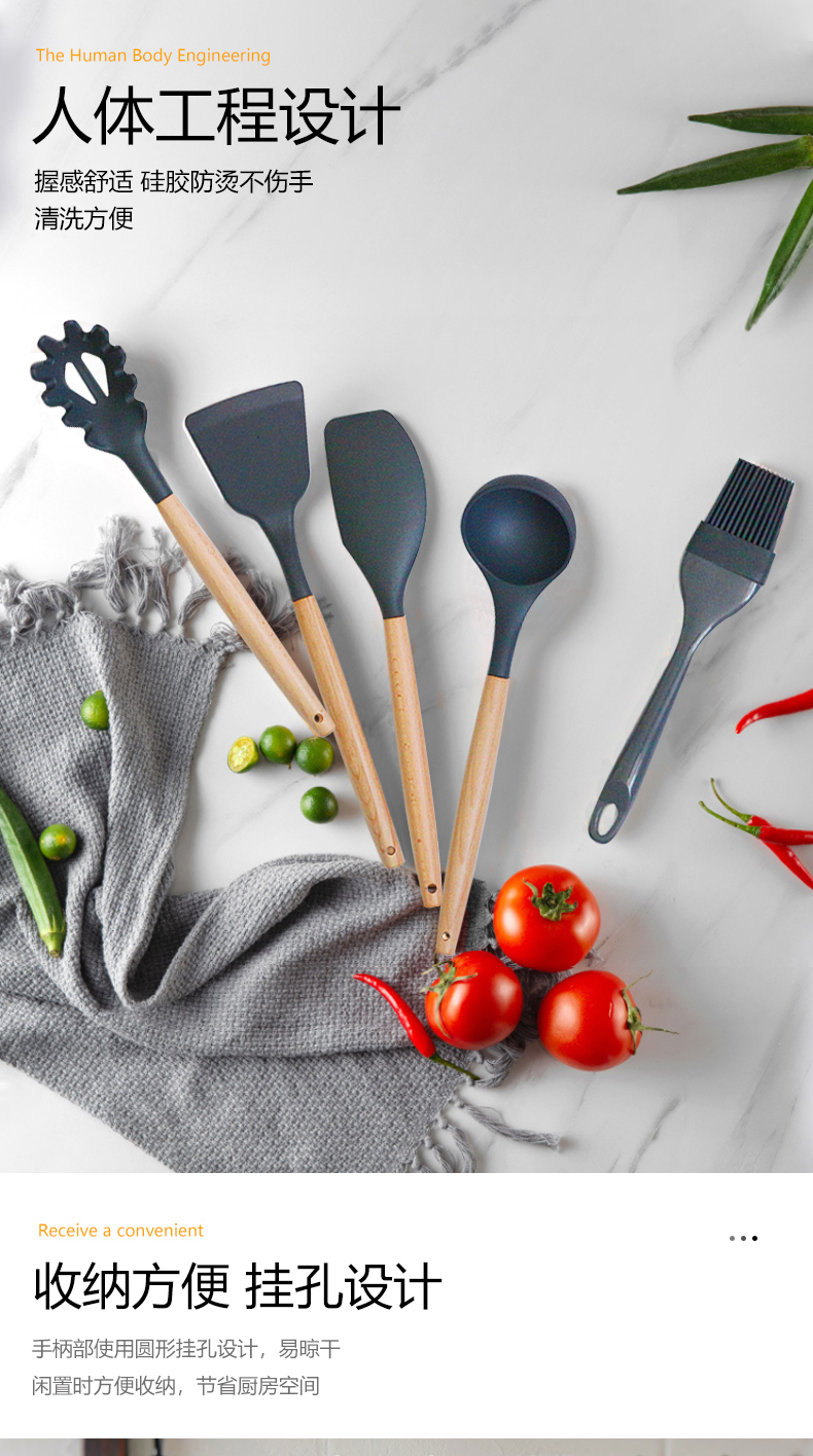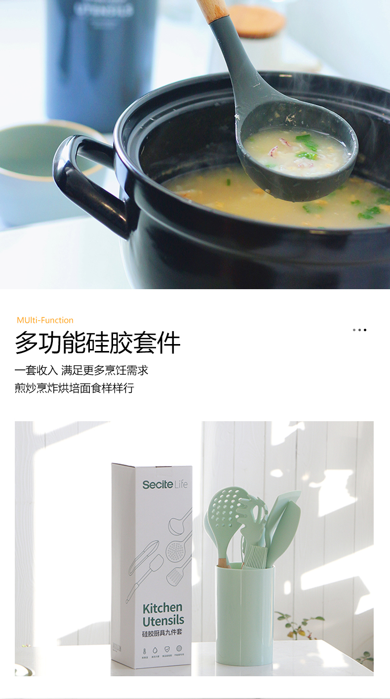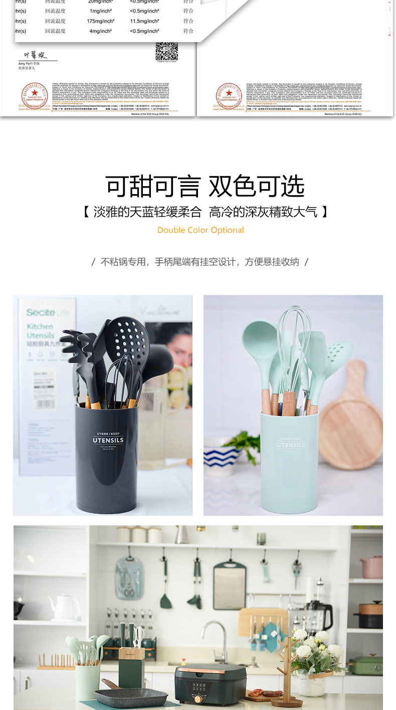 新思特GJ-05不粘锅专用食品级硅胶铲九件套硅胶铲子护锅铲勺 GJ-05九件套北欧蓝