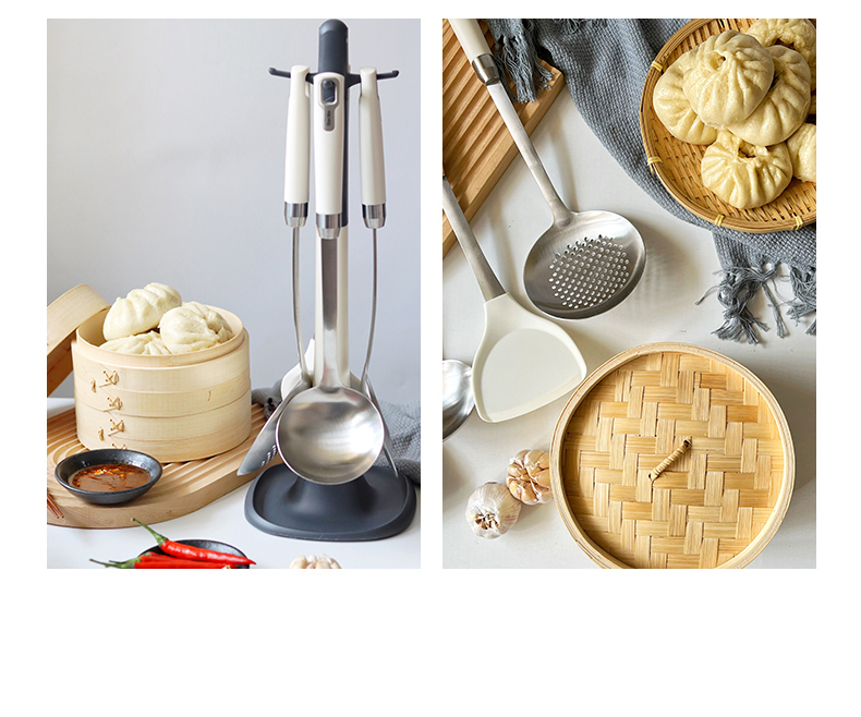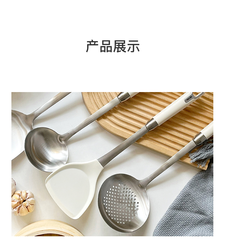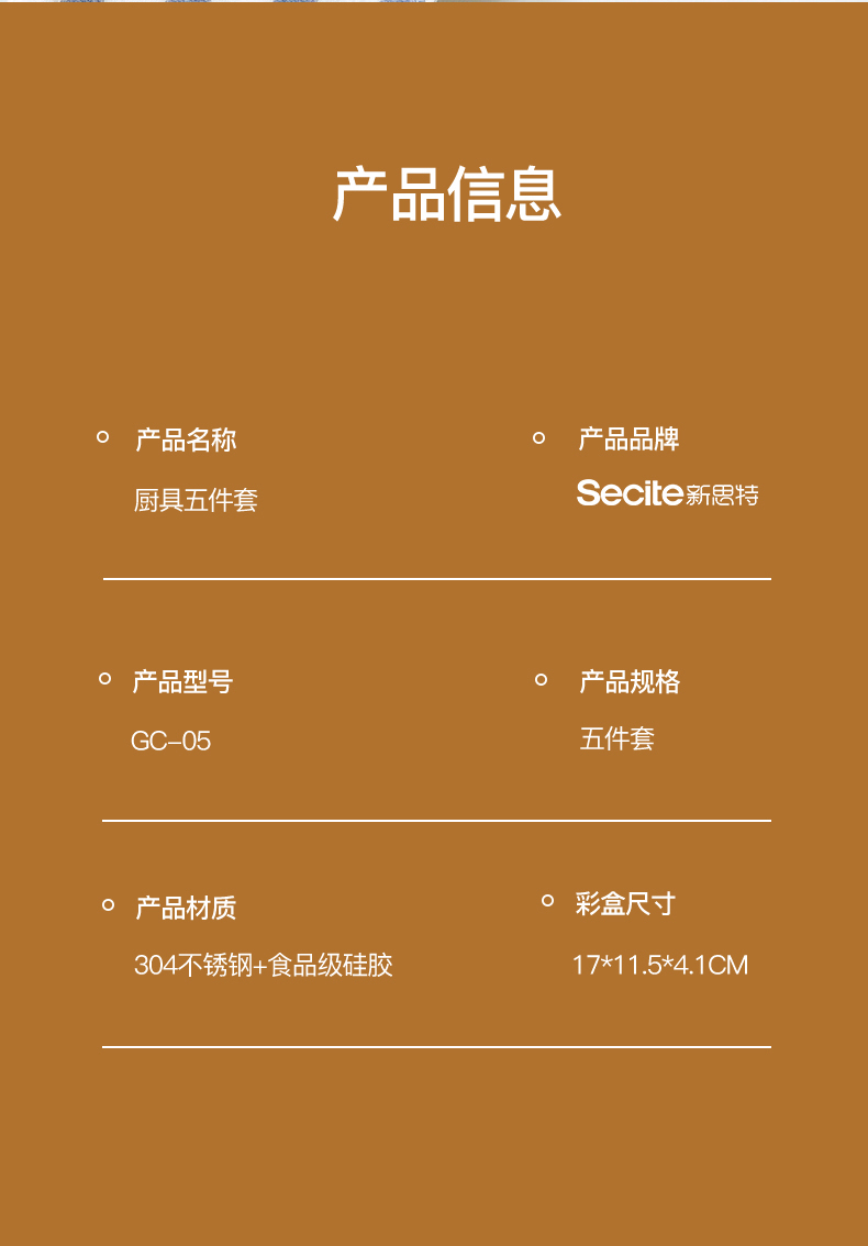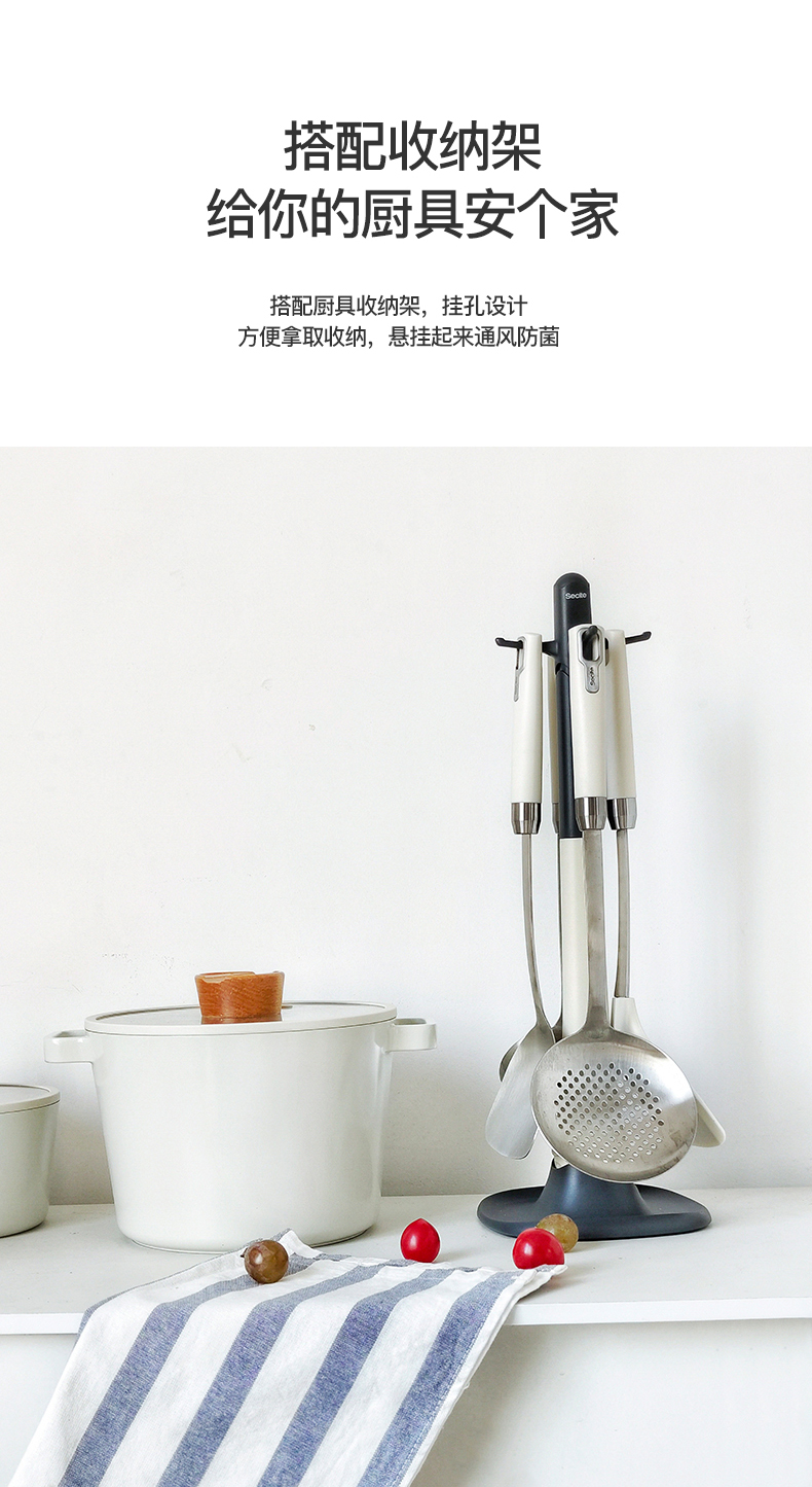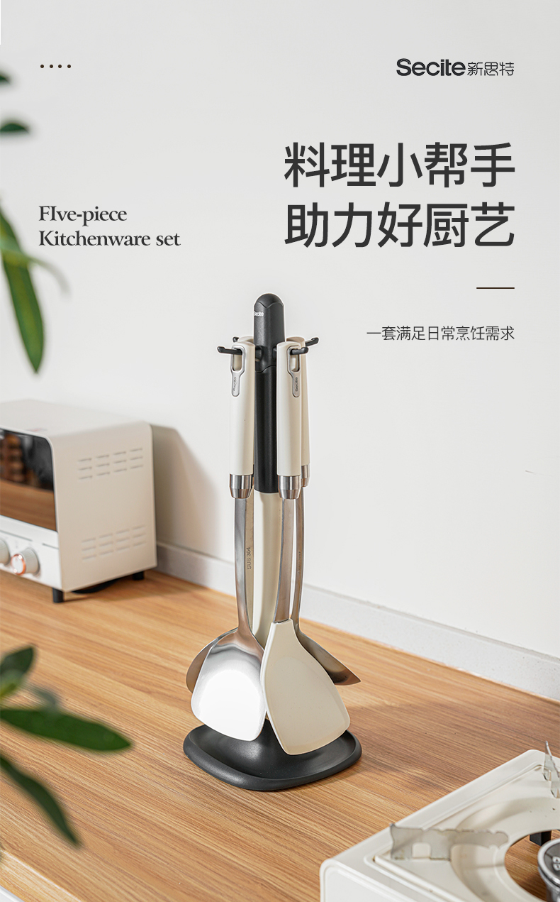 新思特厨具五件套GC-05 不锈钢汤勺不锈钢铲不锈钢漏勺硅胶铲厨具架