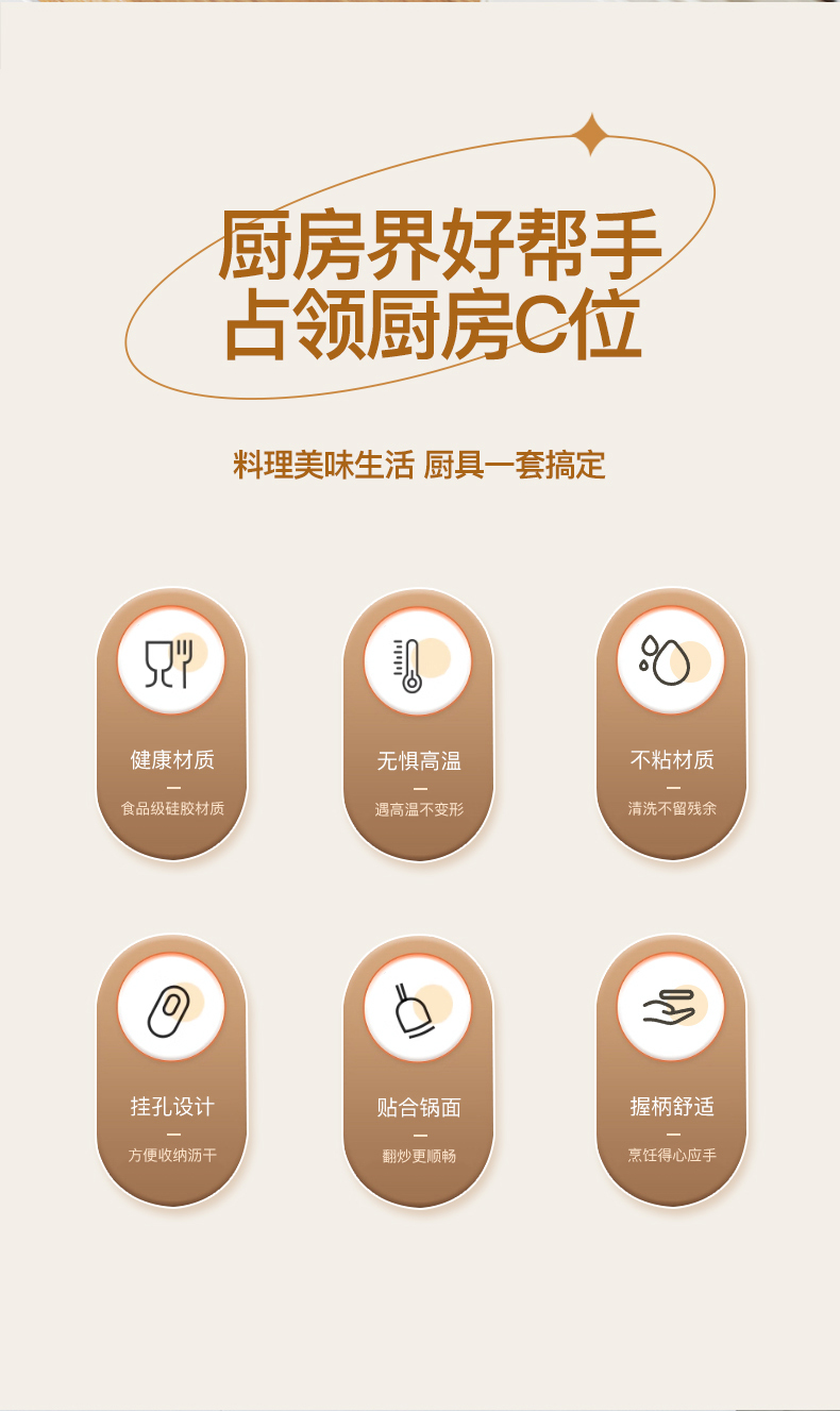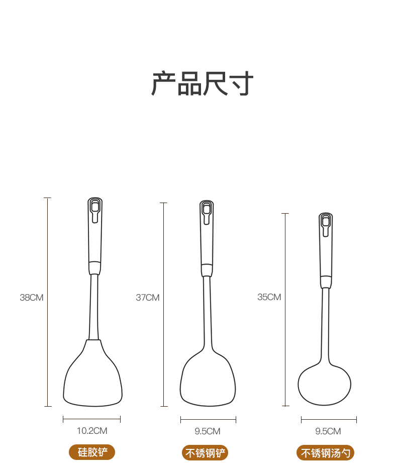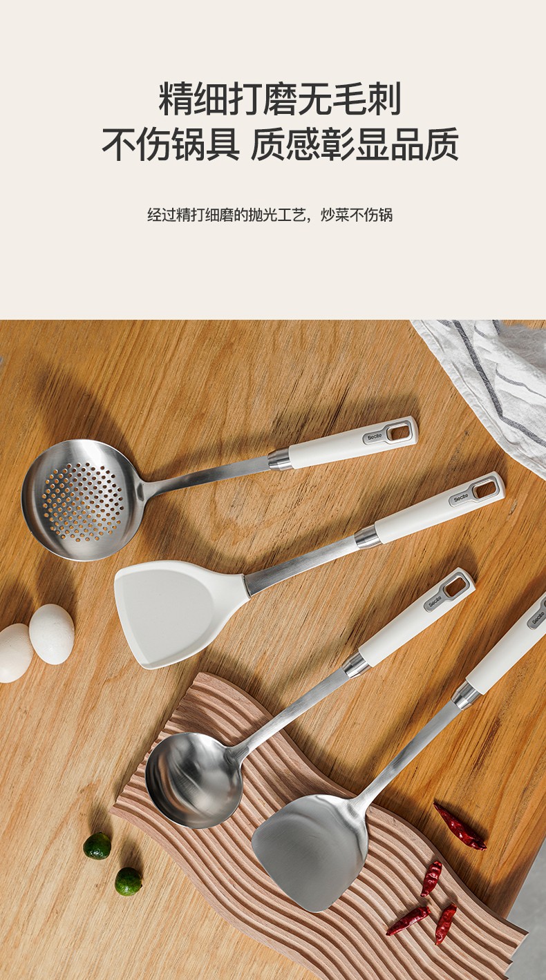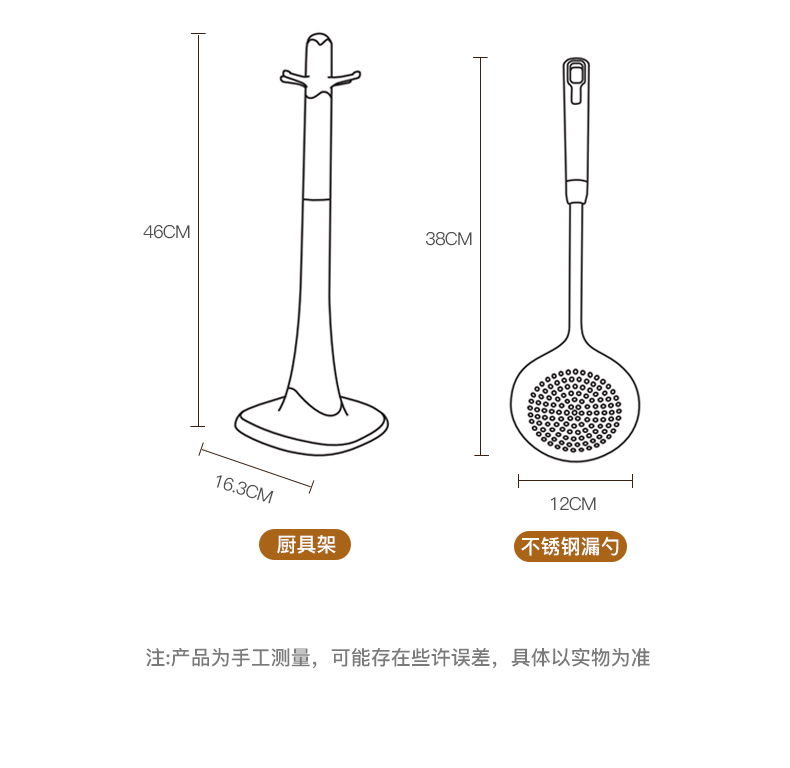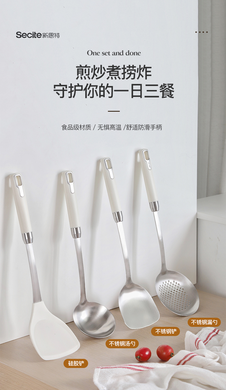 新思特厨具五件套GC-05 不锈钢汤勺不锈钢铲不锈钢漏勺硅胶铲厨具架