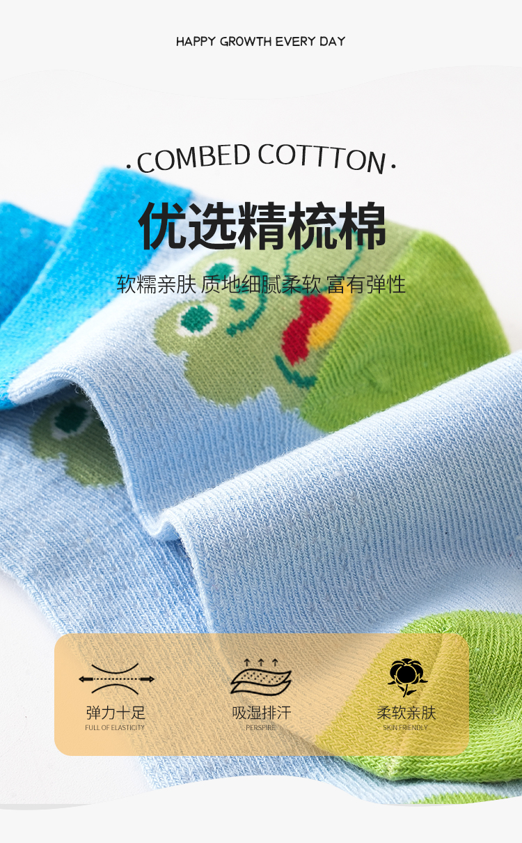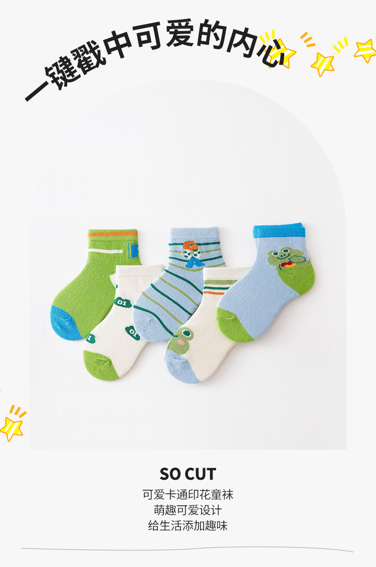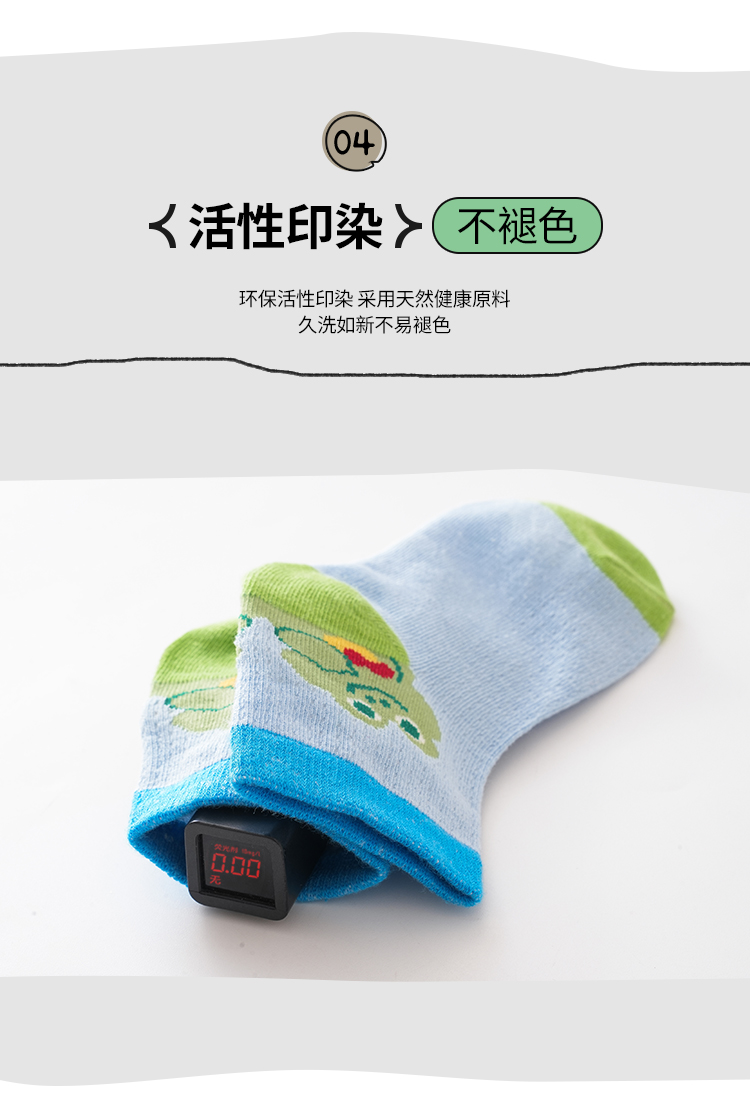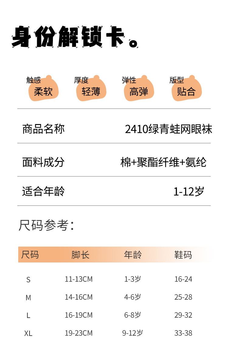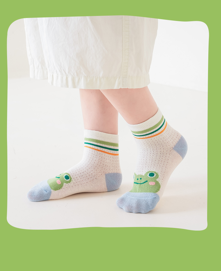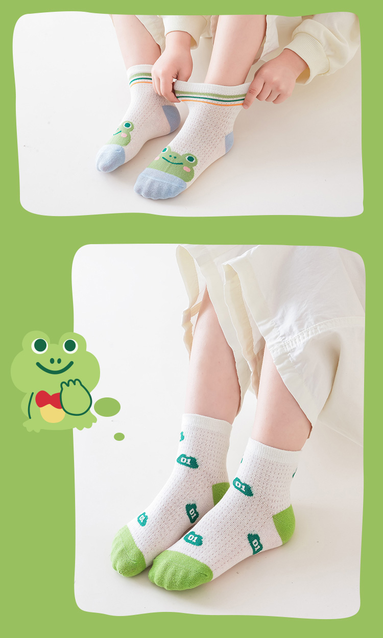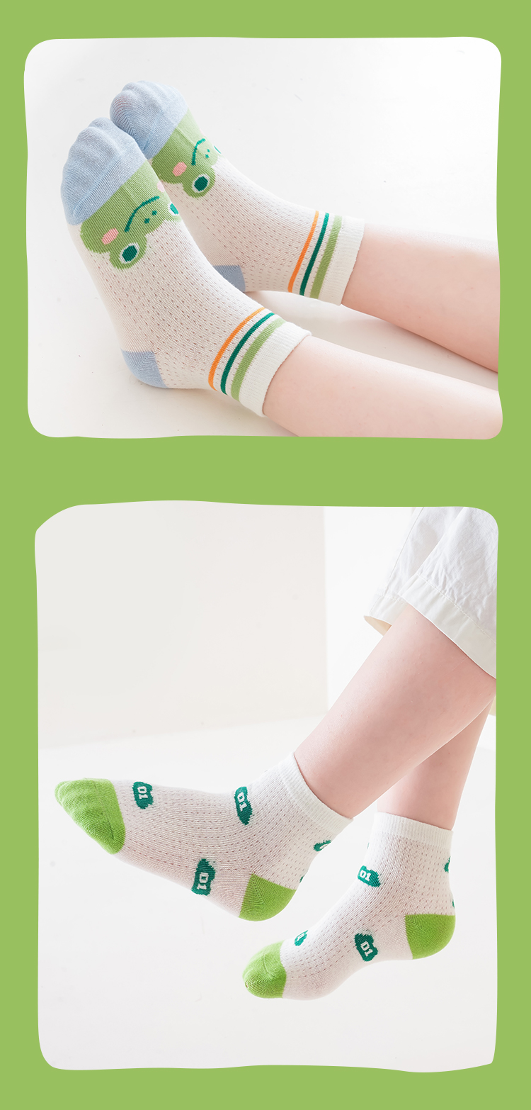 花辞日记纯棉儿童袜子2410绿青蛙网眼儿童袜10双装