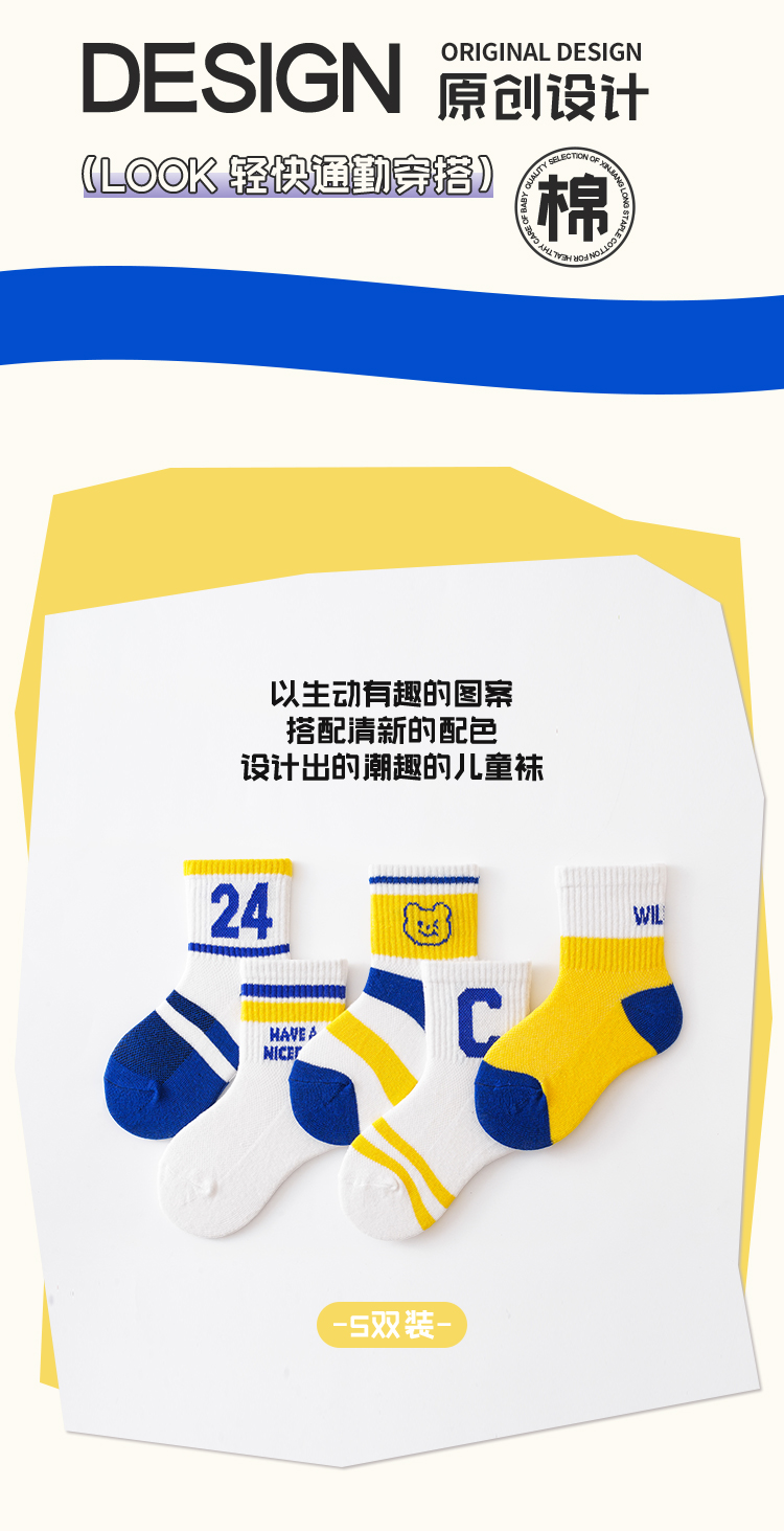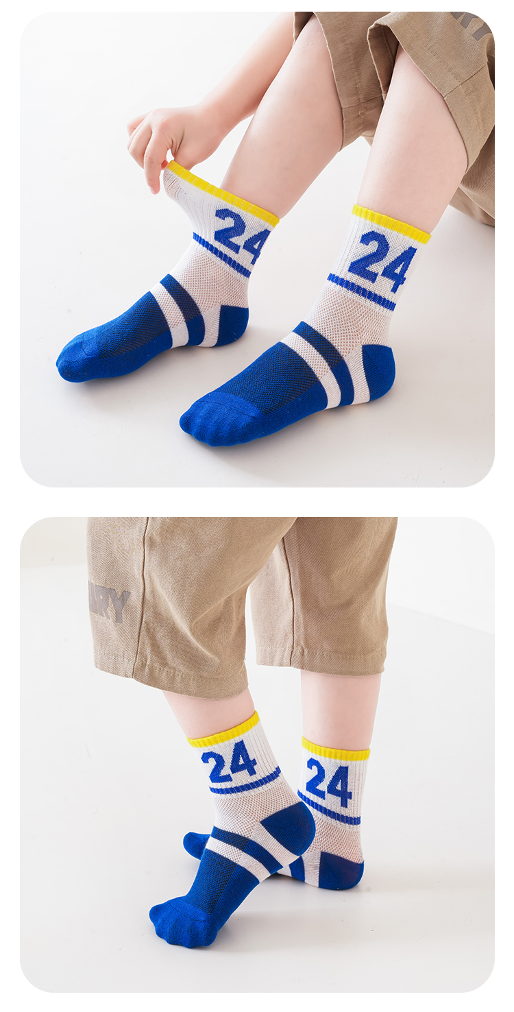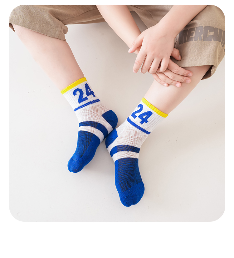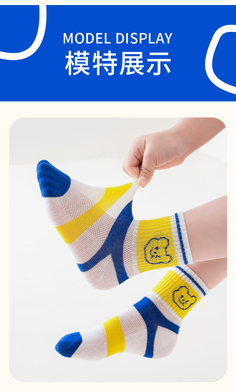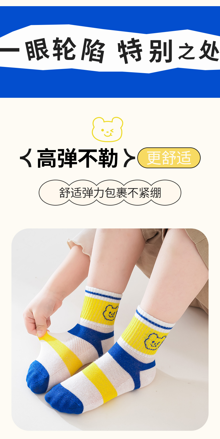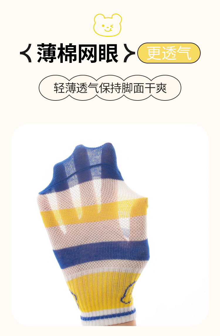 花辞日记纯棉儿童袜子2411蓝黄24号网眼儿童袜10双装