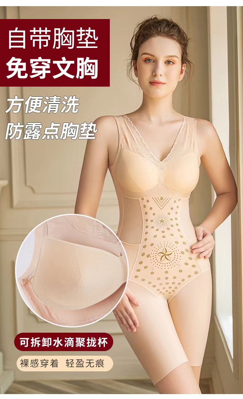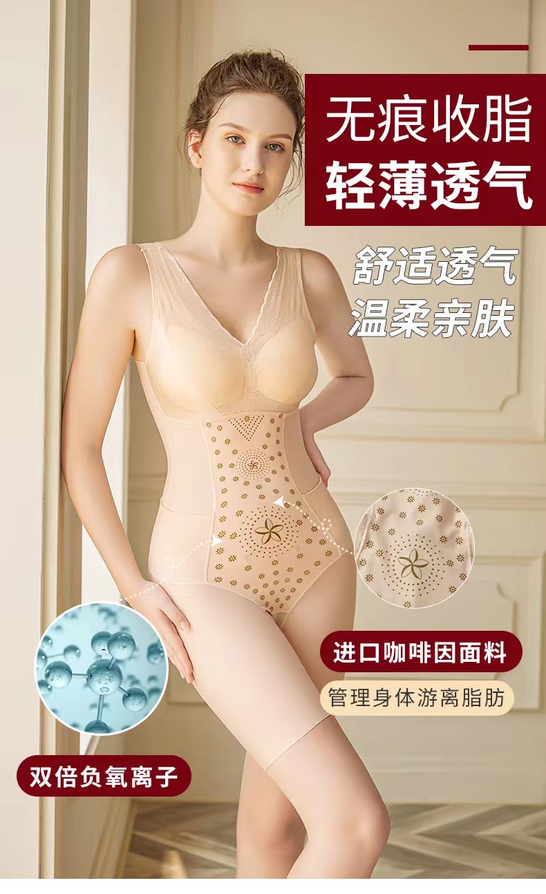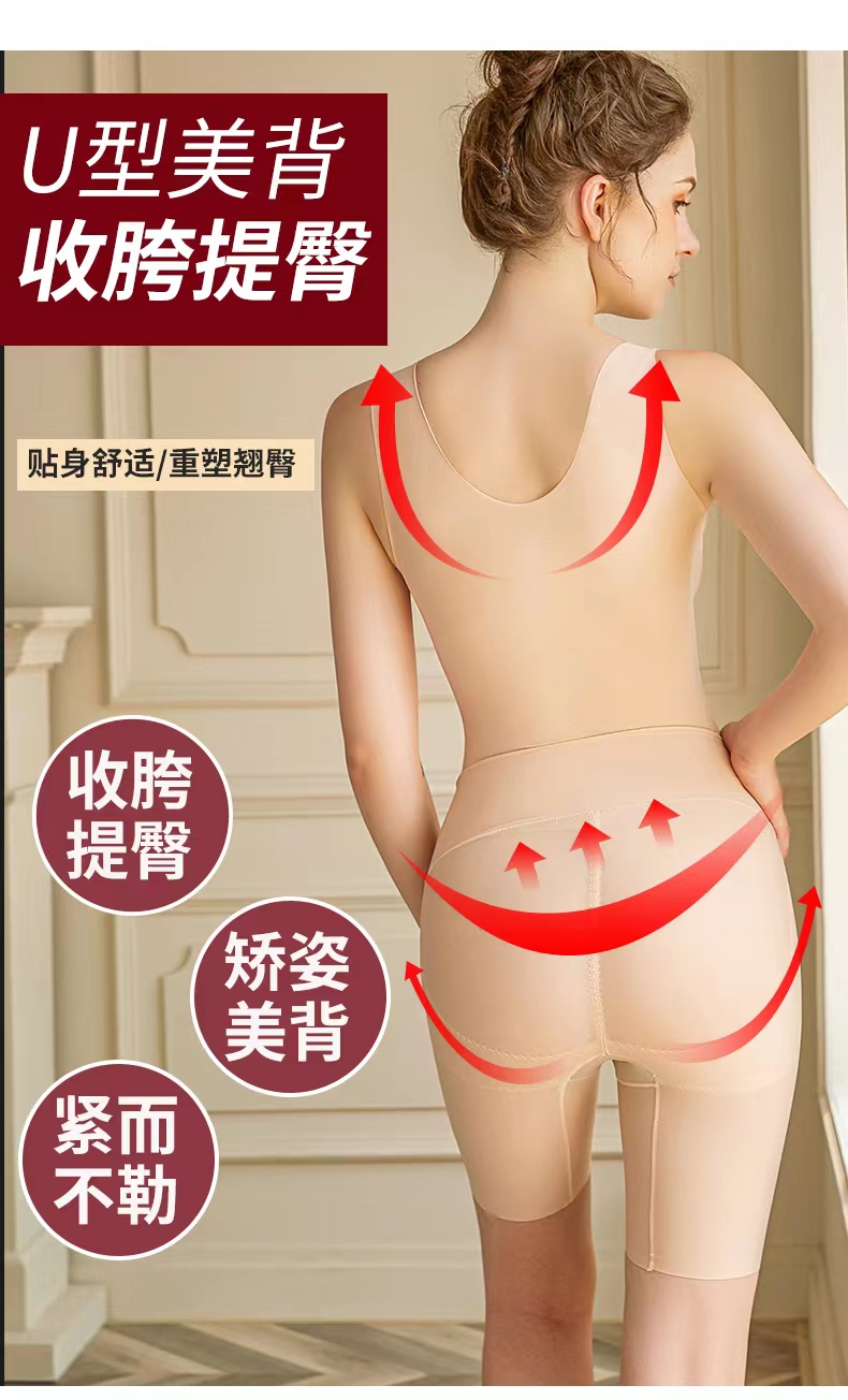 【秋鹭】款号1113夏季薄塑身连体衣免文胸后脱式(平角款)收腹束腰提臀无痕美体衣