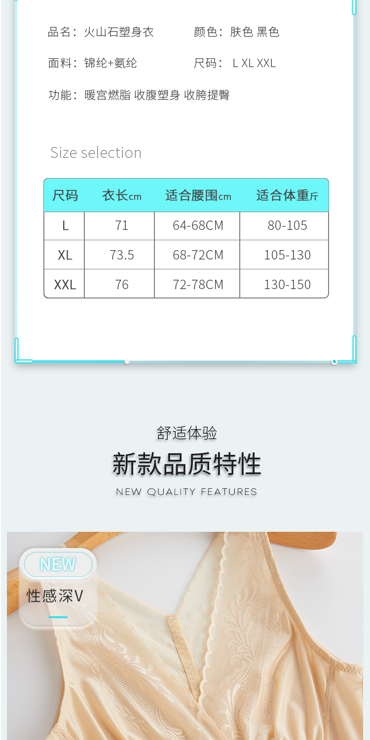 【秋鹭】款号1816负离子印花平腿后脱款火山石收腹束腰提臀无痕美体衣