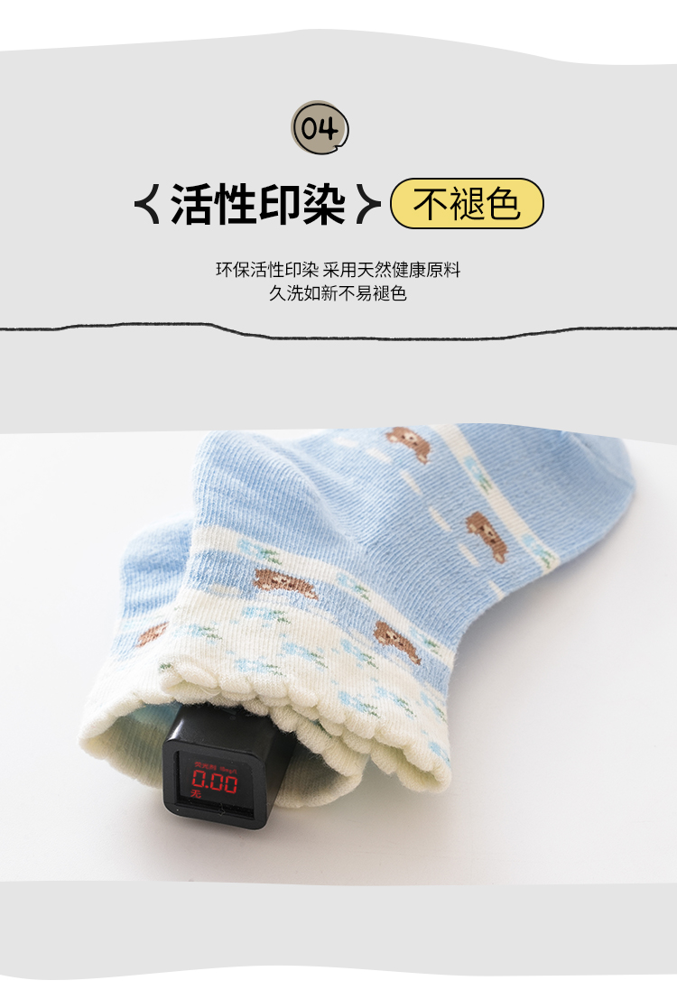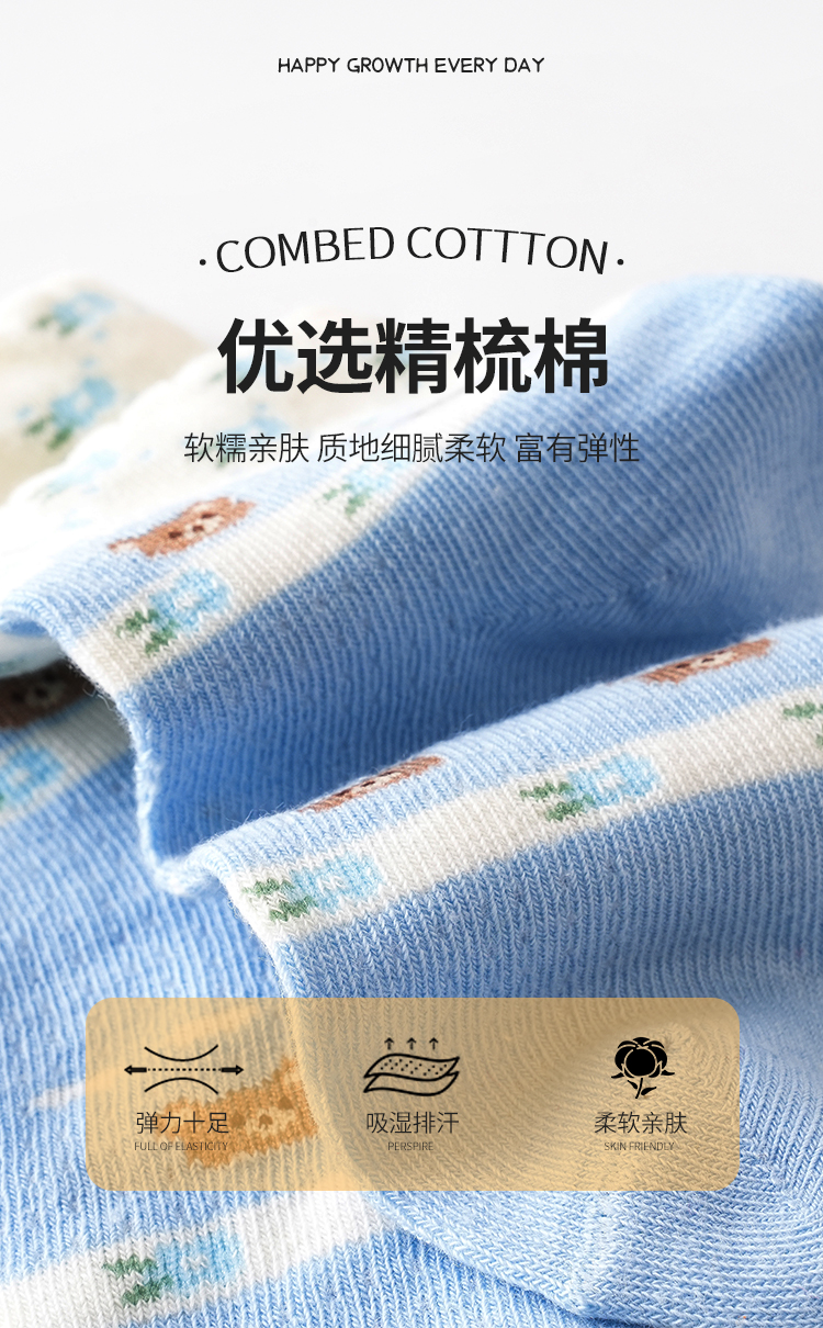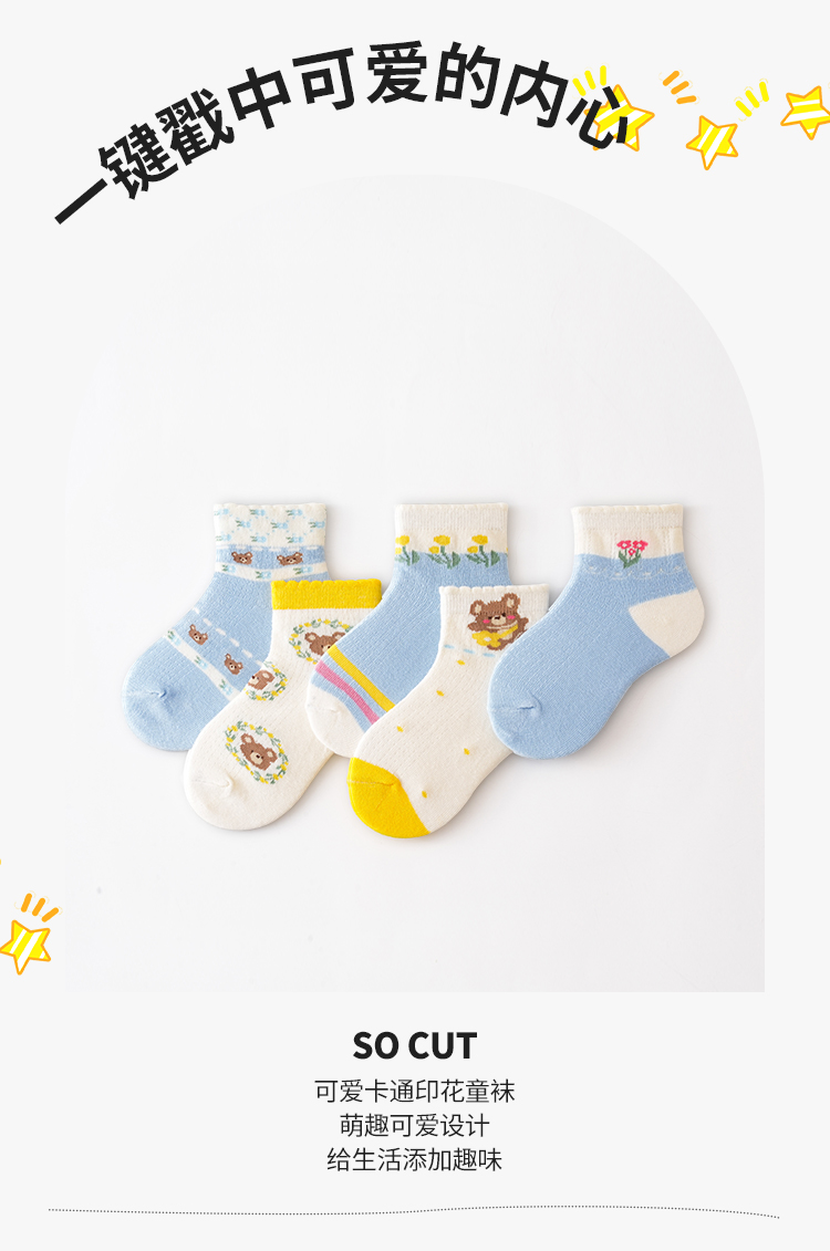 花辞日记纯棉儿童袜2417浅蓝小花朵小熊网眼儿童袜10双装