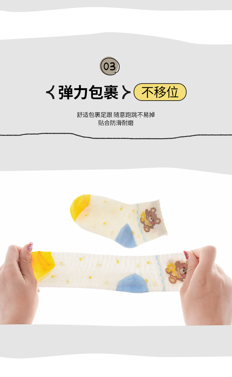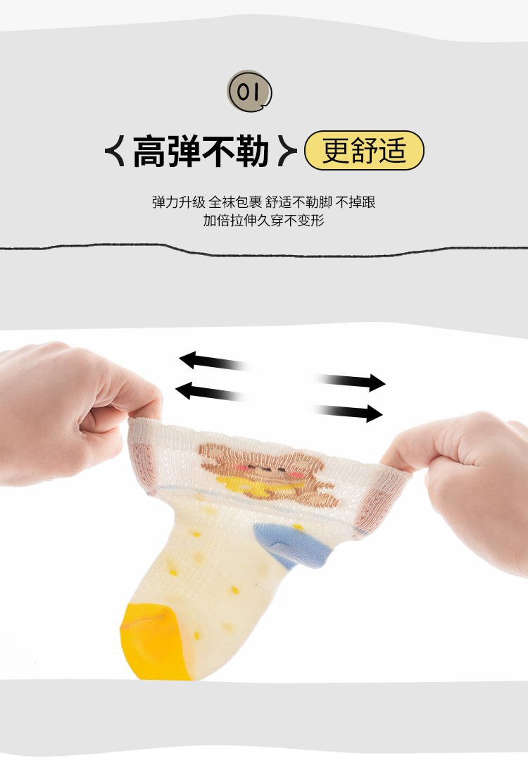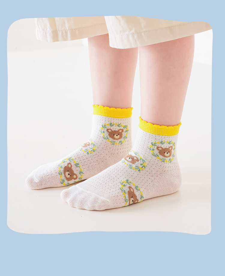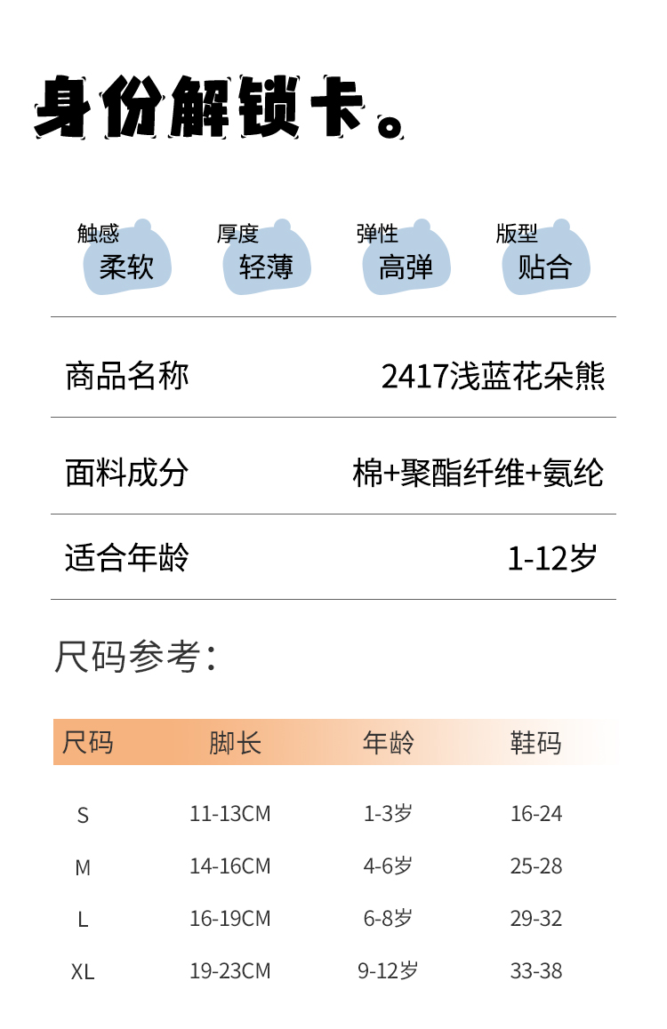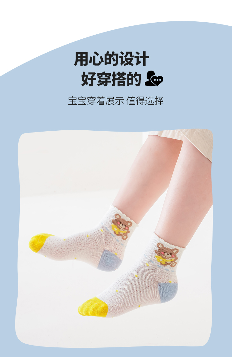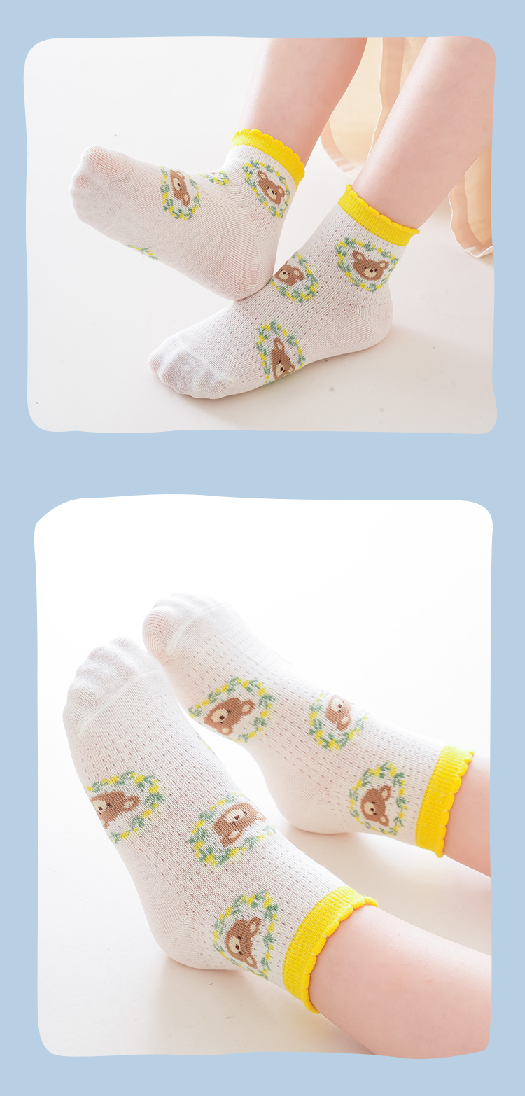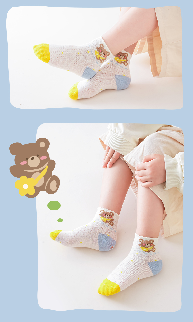 浅蓝小花朵小熊网眼儿童袜【10双装2组】