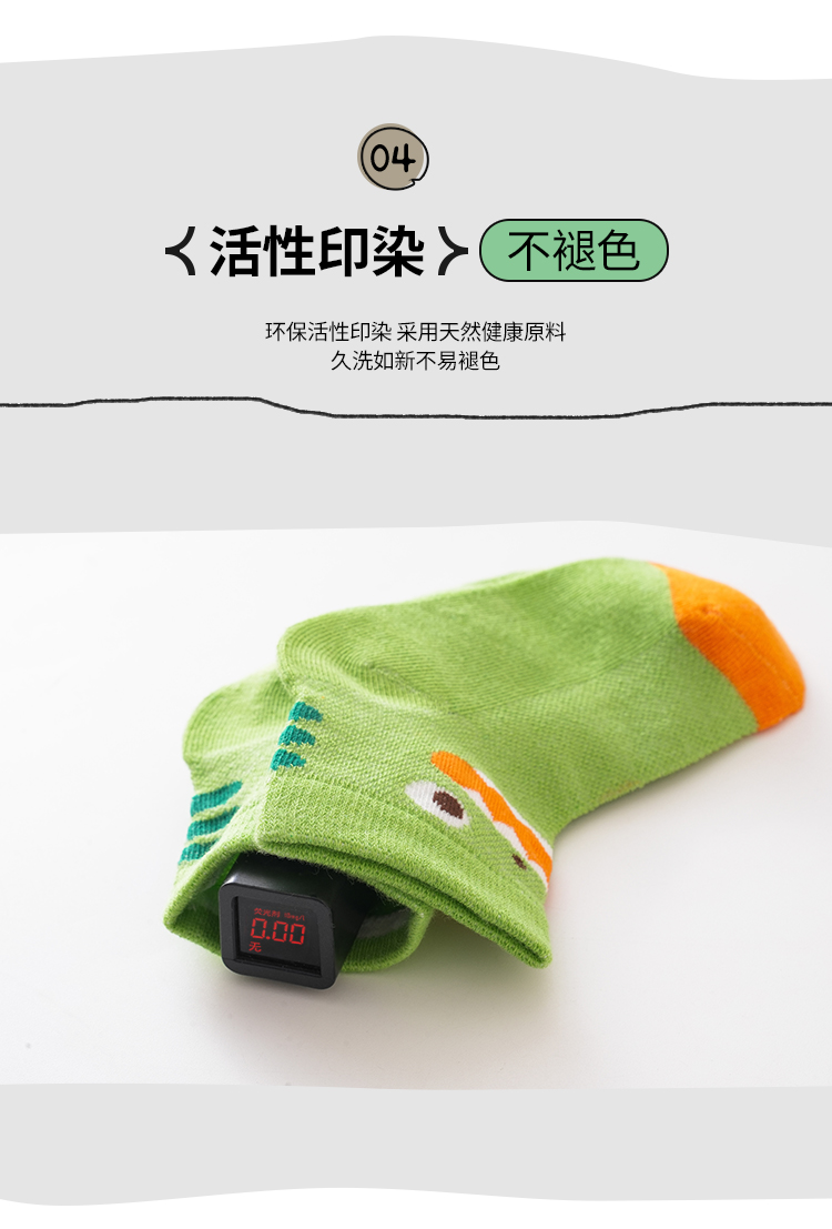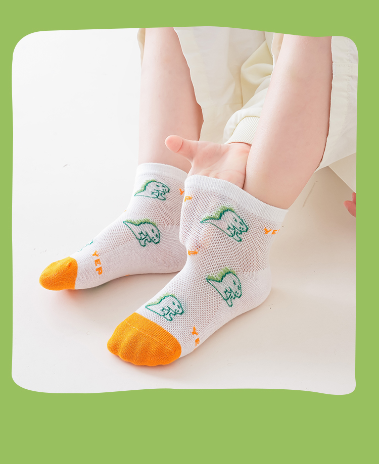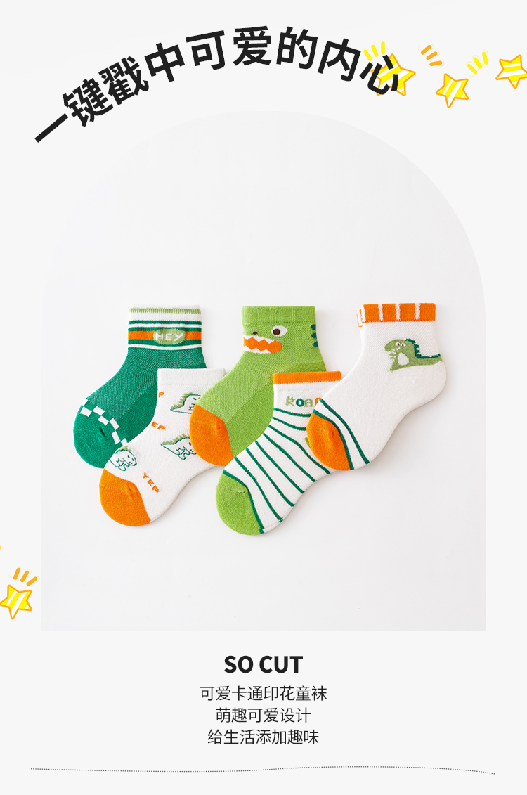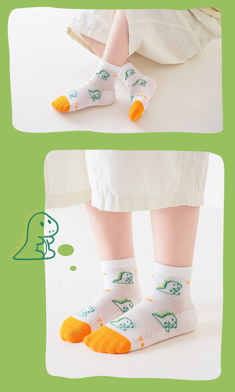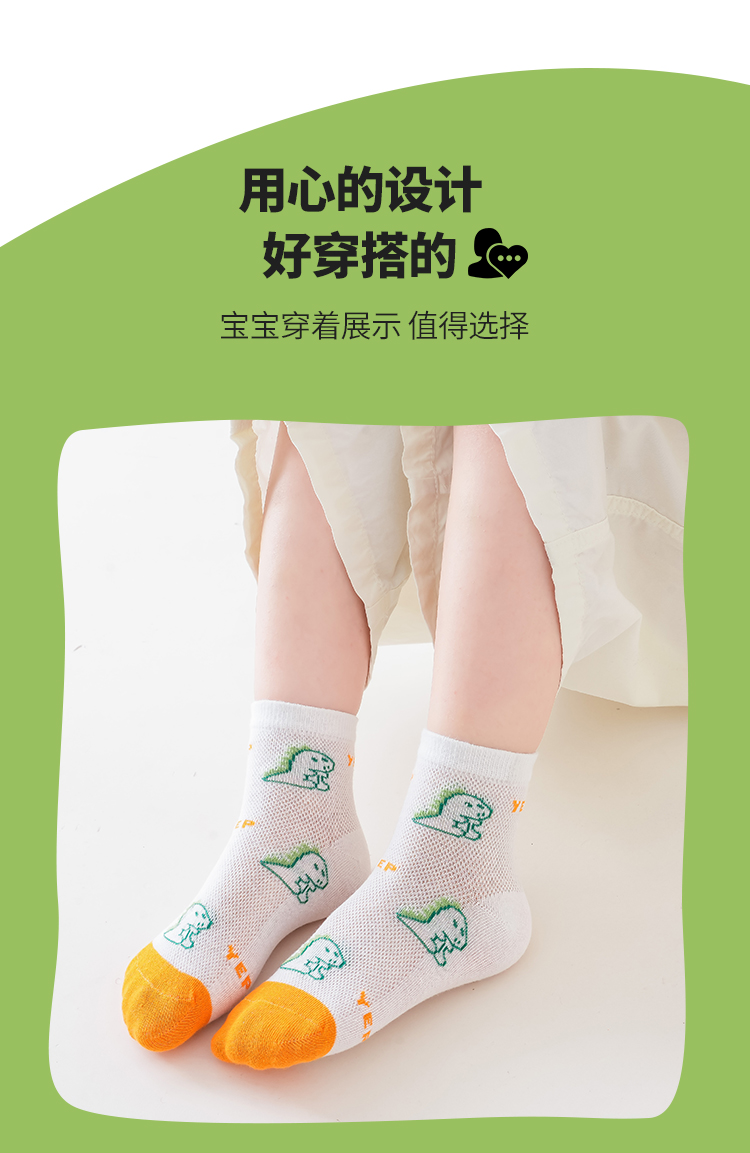 花辞日记纯棉儿童袜2418绿恐龙网眼儿童袜10双装
