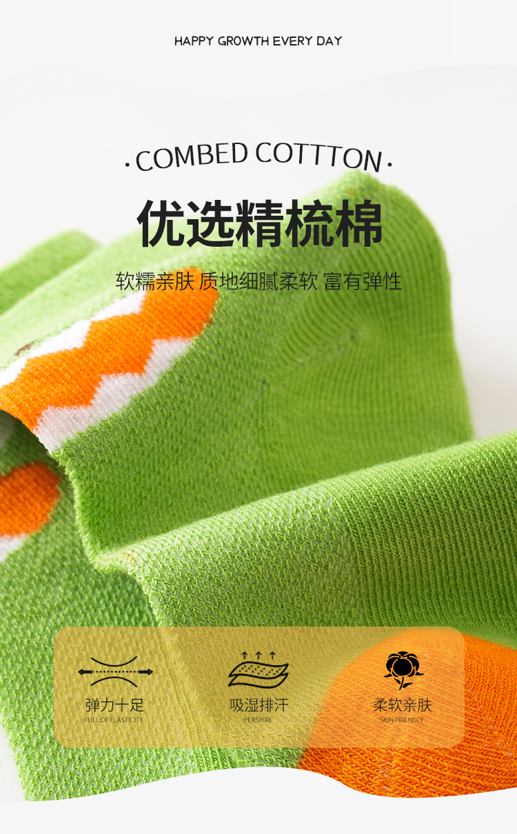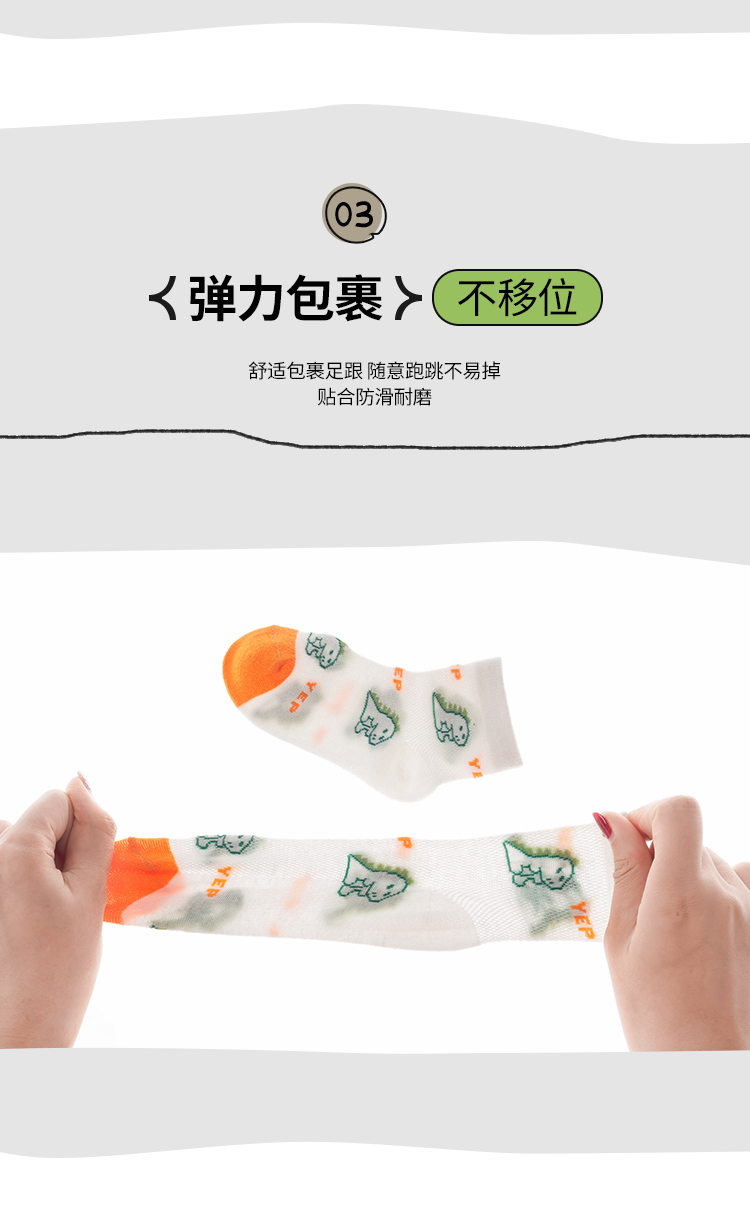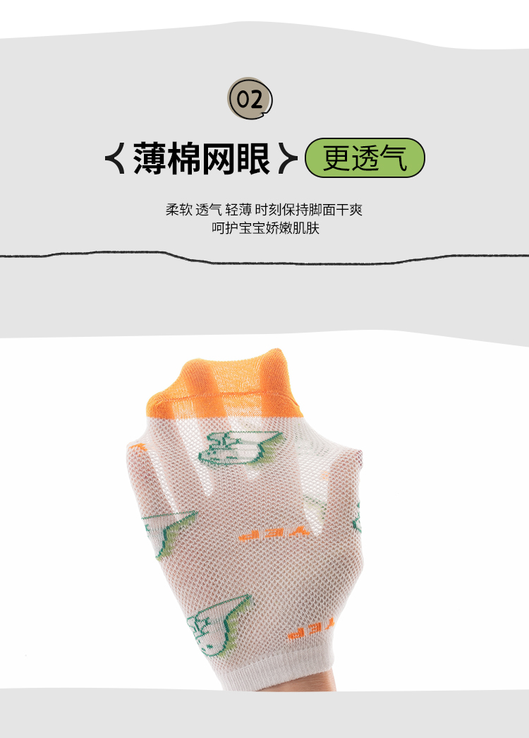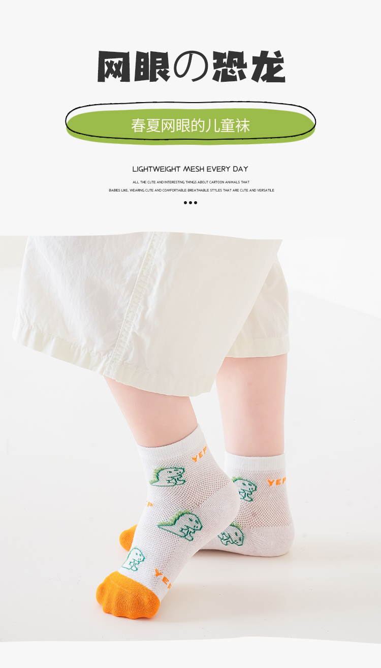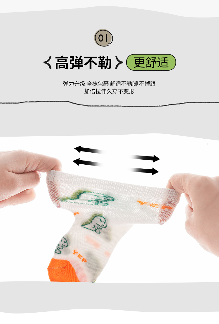 花辞日记纯棉儿童袜2418绿恐龙网眼儿童袜10双装
