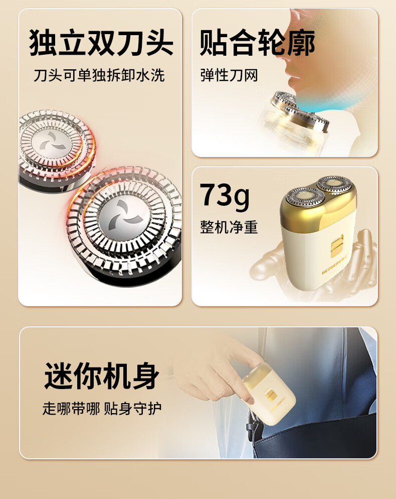 和正迷你电动剃须刀男士便携式刮胡刀充电式胡须刀旅行便携