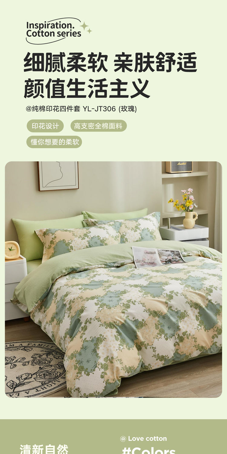 怡莲纯棉印花四件套YL-JT306-香水玫瑰