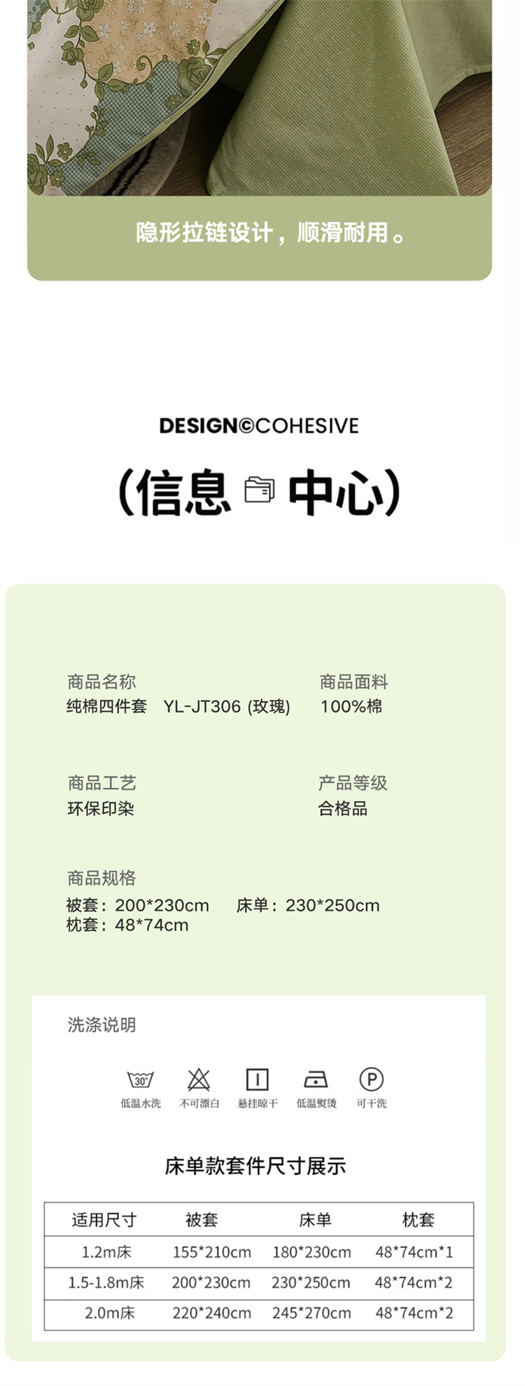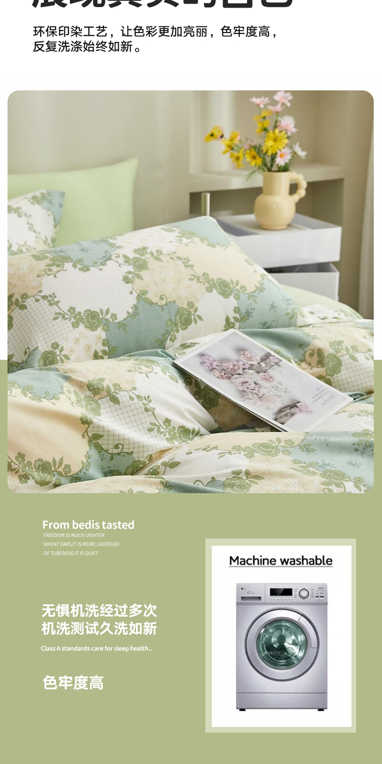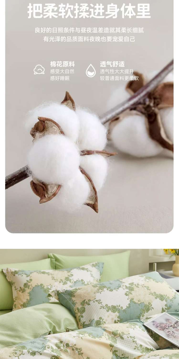 面料:100%纯棉,被套:200*230CM, 床单:230*250CM,枕套:48*74CM*2