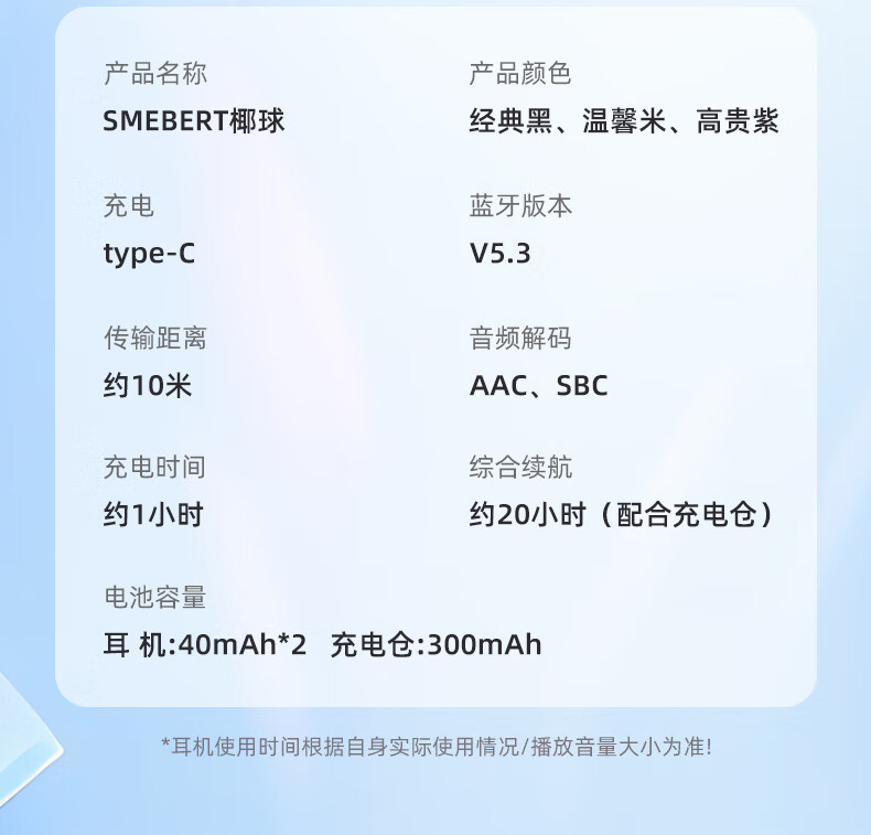 SMEBERT舒曼伯特 椰球蓝牙耳机 IPX5防水防尘 新款蓝牙耳机无线耳机