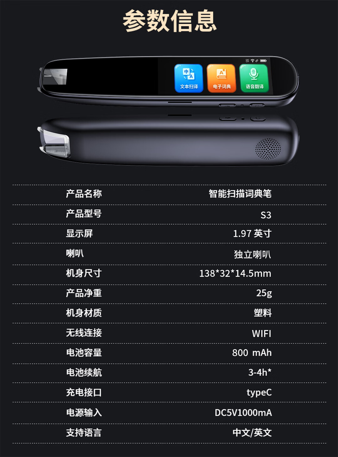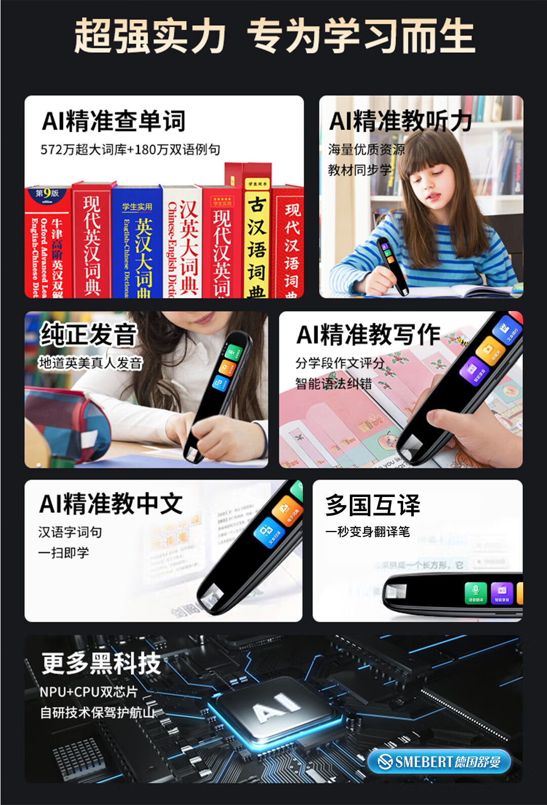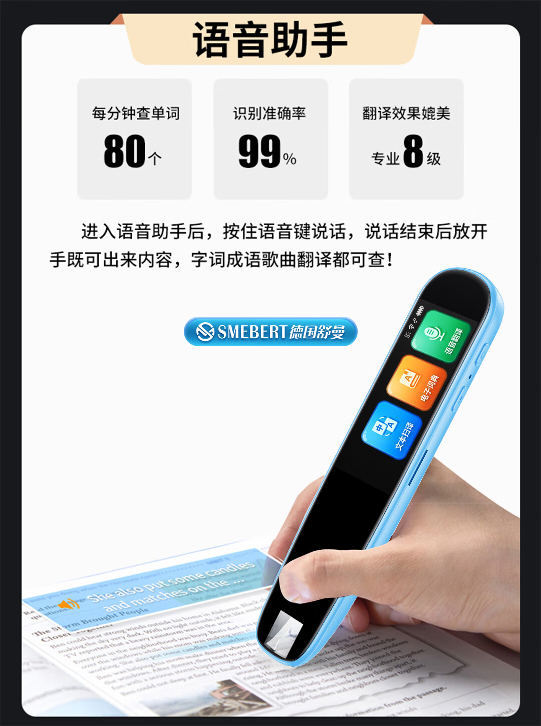 SMEBERT舒曼词典笔S3 点读笔英语学习翻译神器 翻译笔扫描笔 单词笔学习笔中小学生电子词典