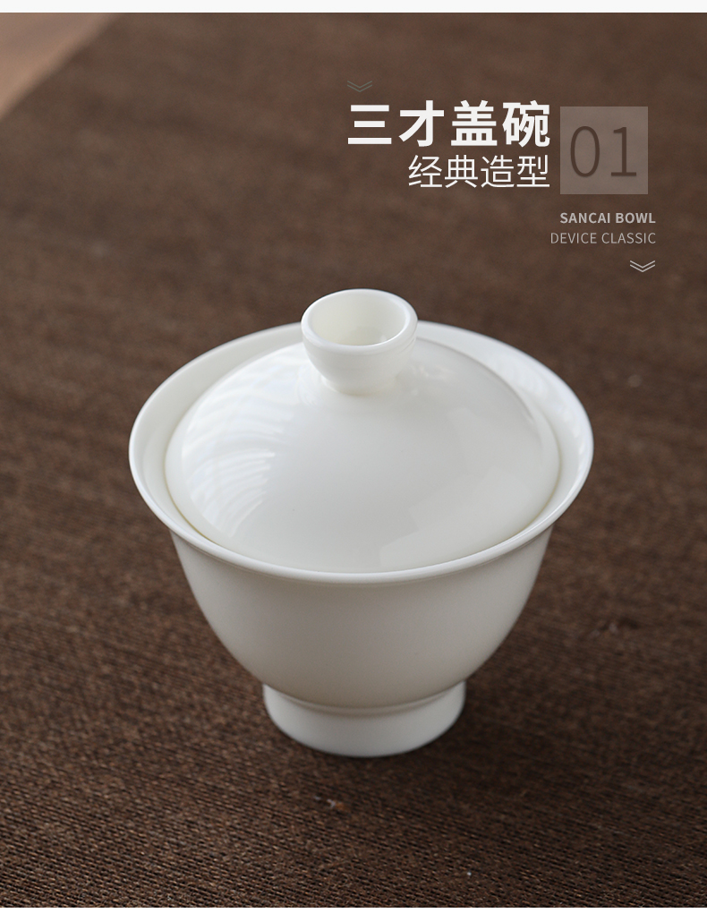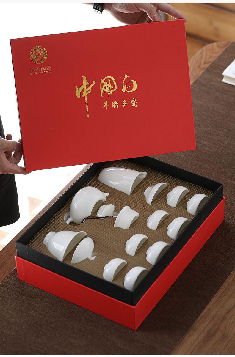 苏氏陶瓷(SUSHI CERAMICS)羊脂玉茶具套装德化中国白瓷功夫茶具茶杯三才盖碗礼盒装