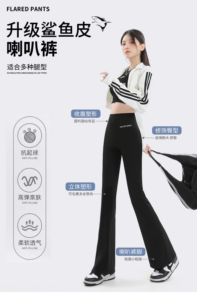 MX-9117 微喇裤鲨鱼裤女秋季高腰显瘦修身马蹄阔腿裤女外穿紧身喇叭裤打底