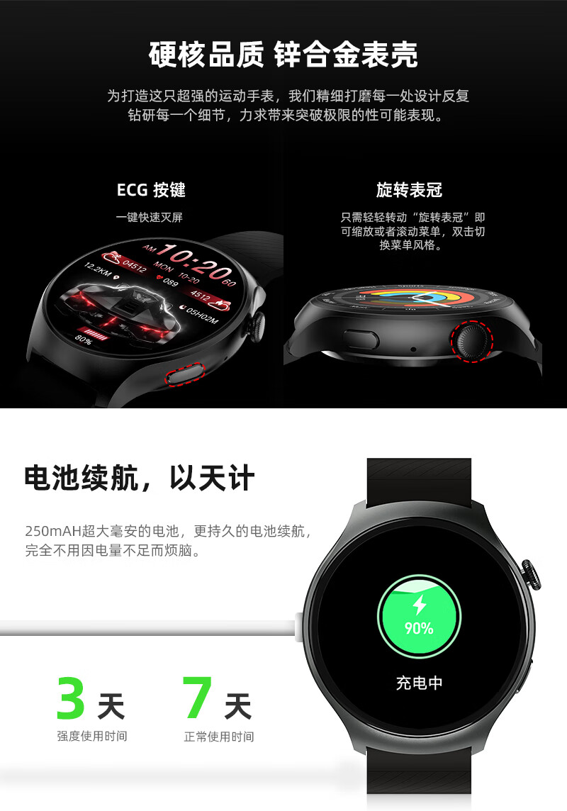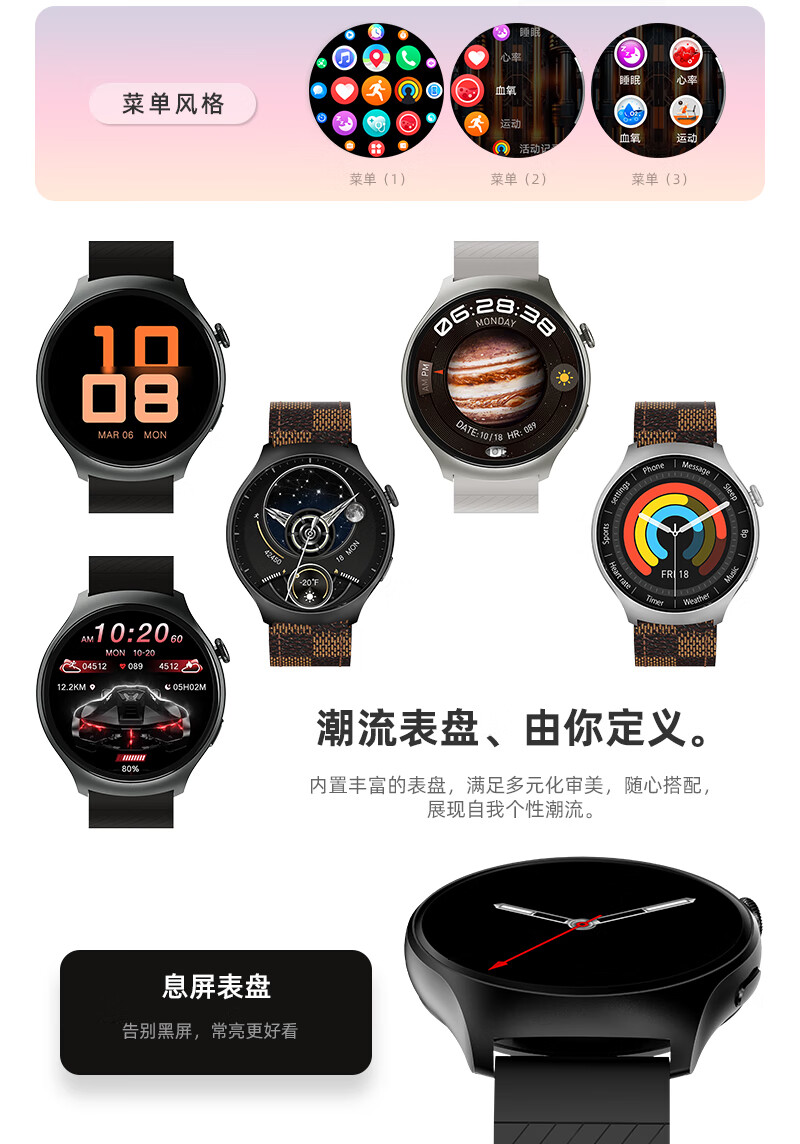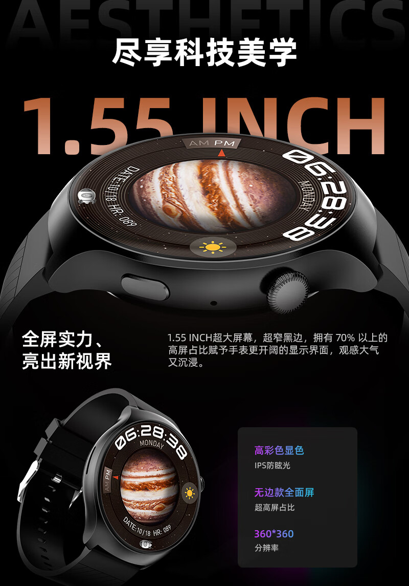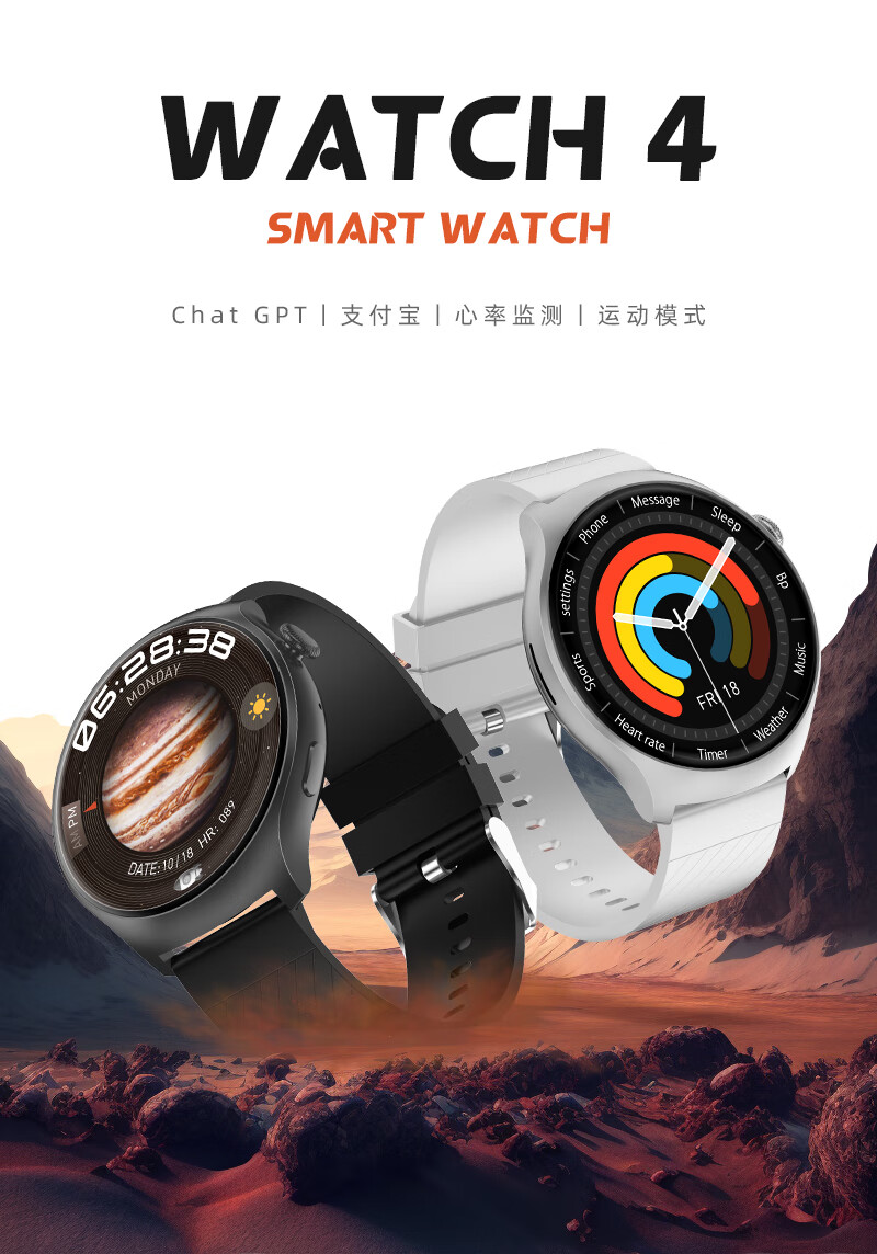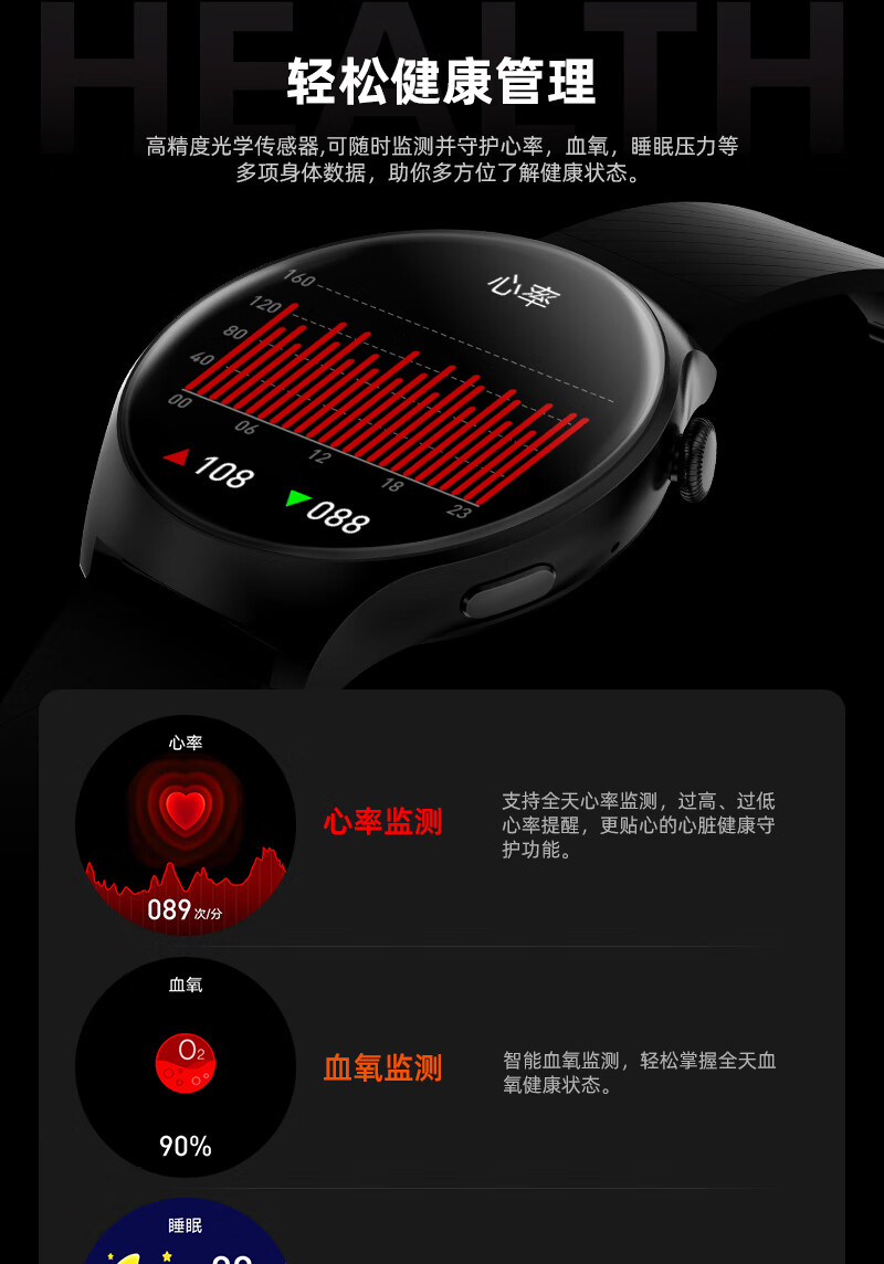 SMEBERT舒曼智能手环手表WATCH 4健康监测血压心率多功能通话圆盘运动手表