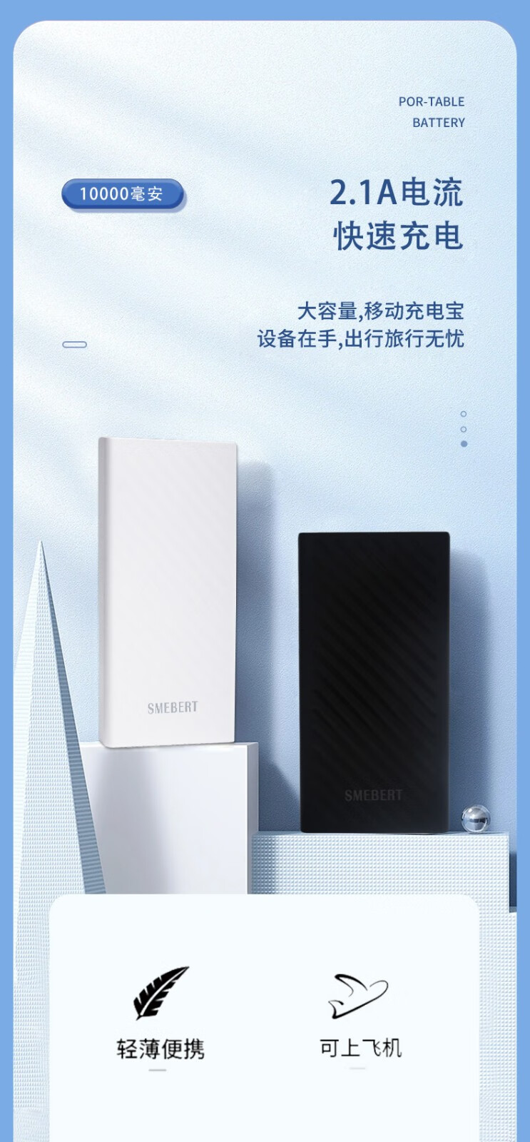SMEBERT舒曼移动电源CL07原装10000毫安轻薄小巧易携带磨砂纹理设计手感舒适