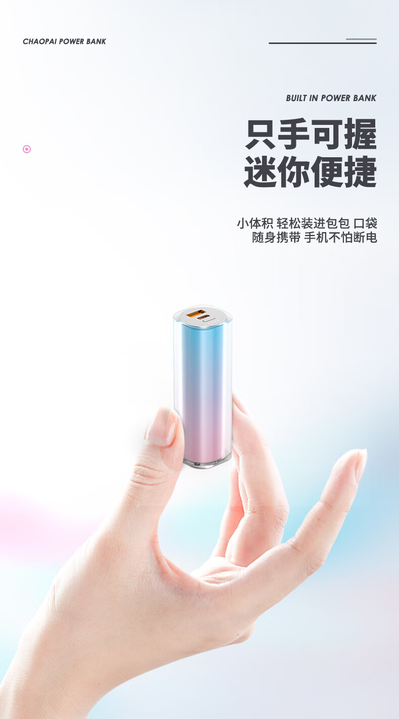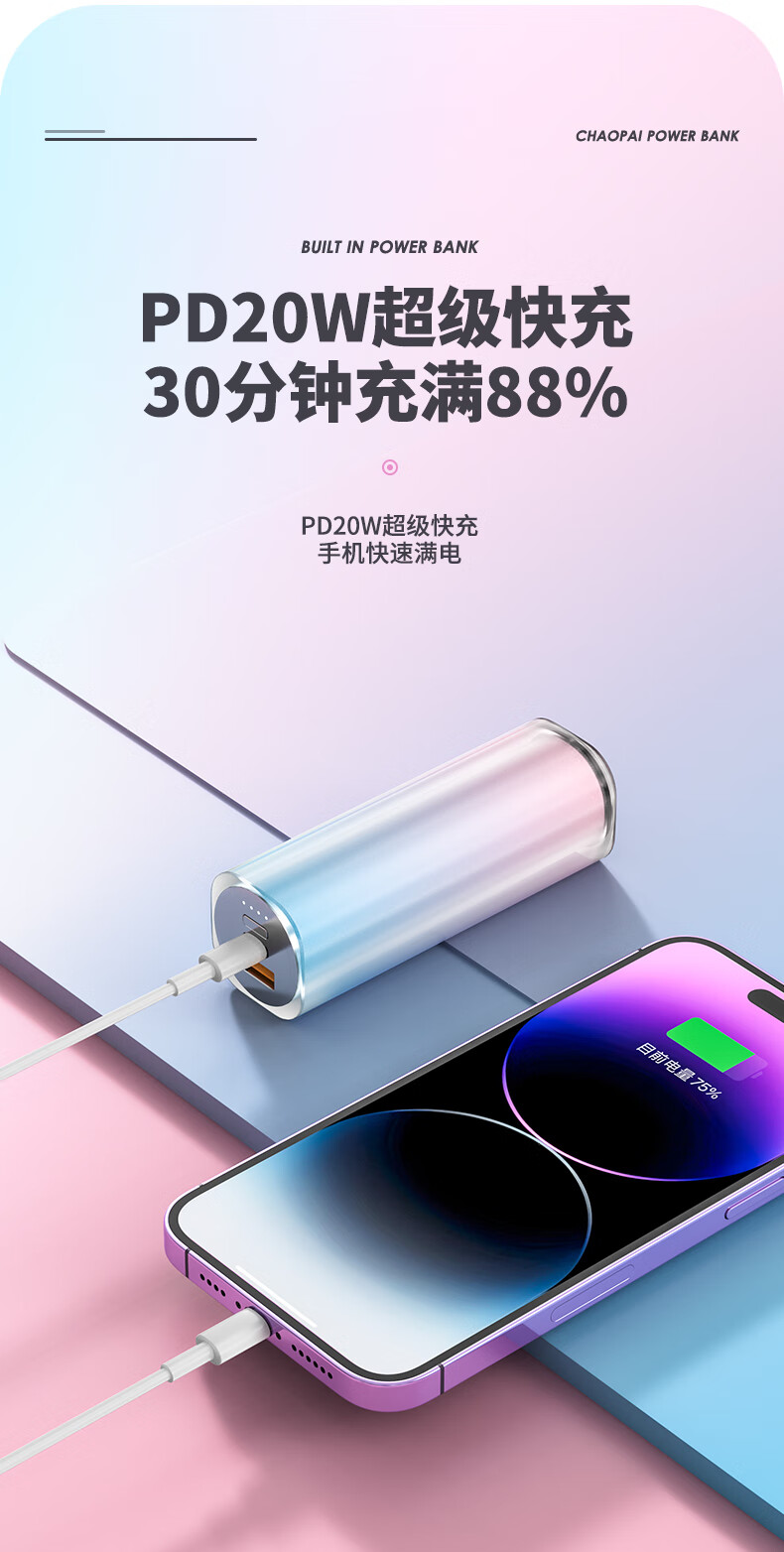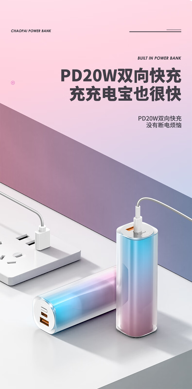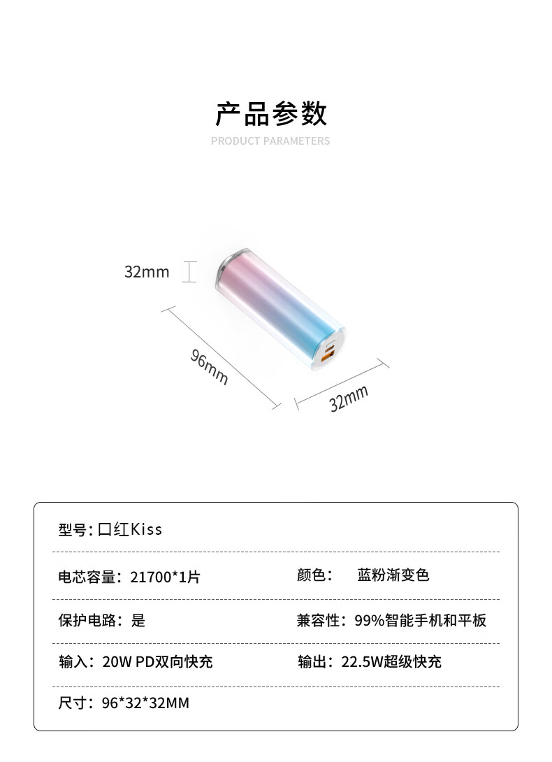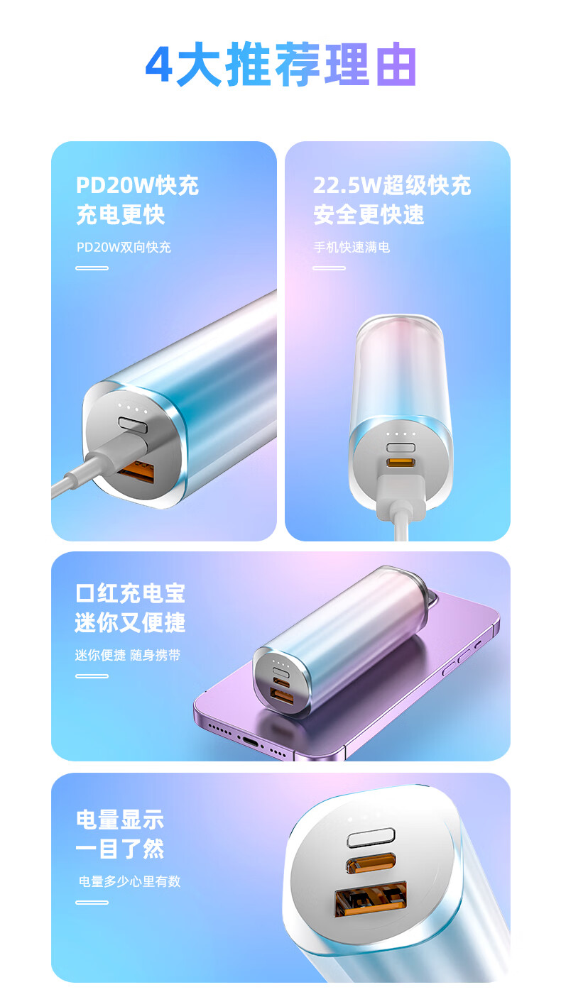 SMEBERT舒曼Kiss充电宝5000mAh口红版 Type-C双向充电 多设备兼容20W 快充轻巧 便携充电宝