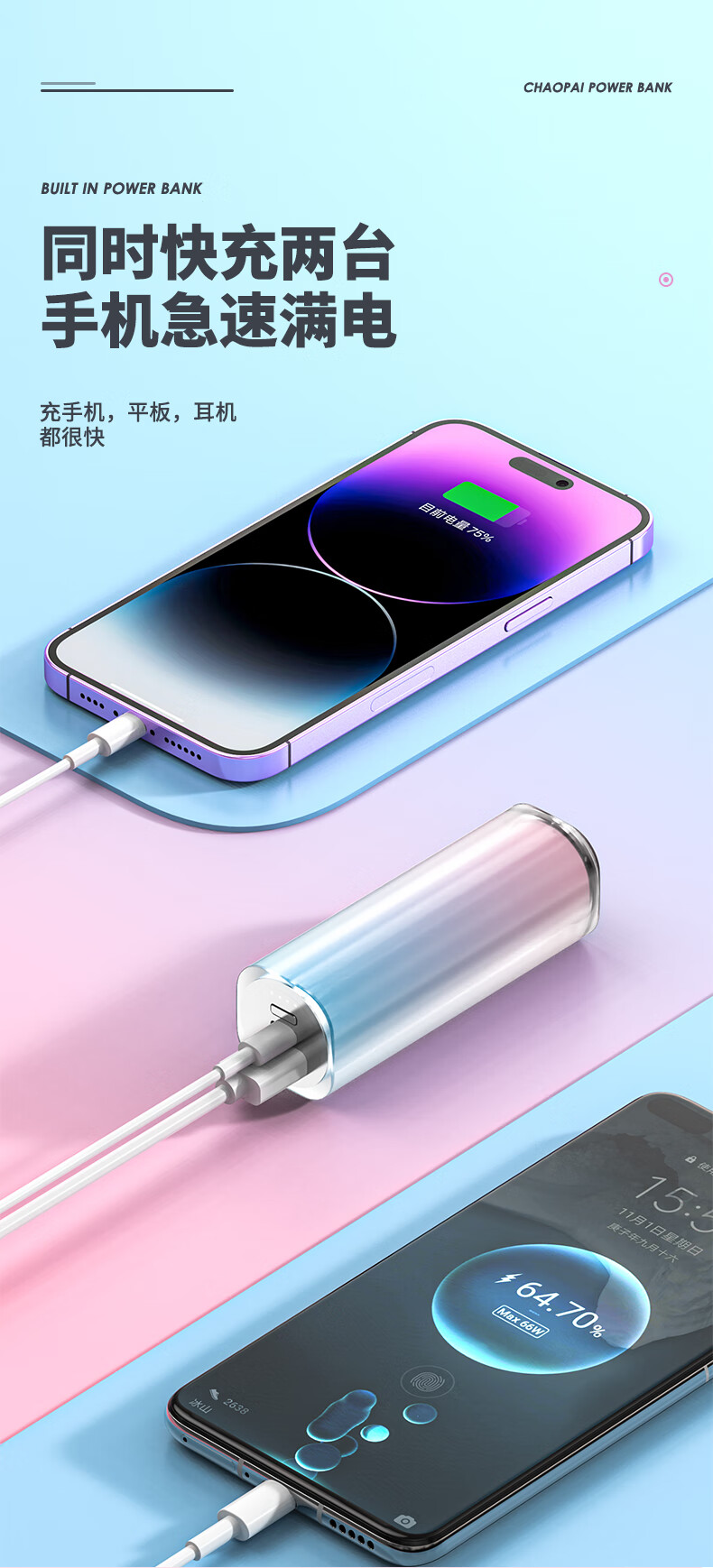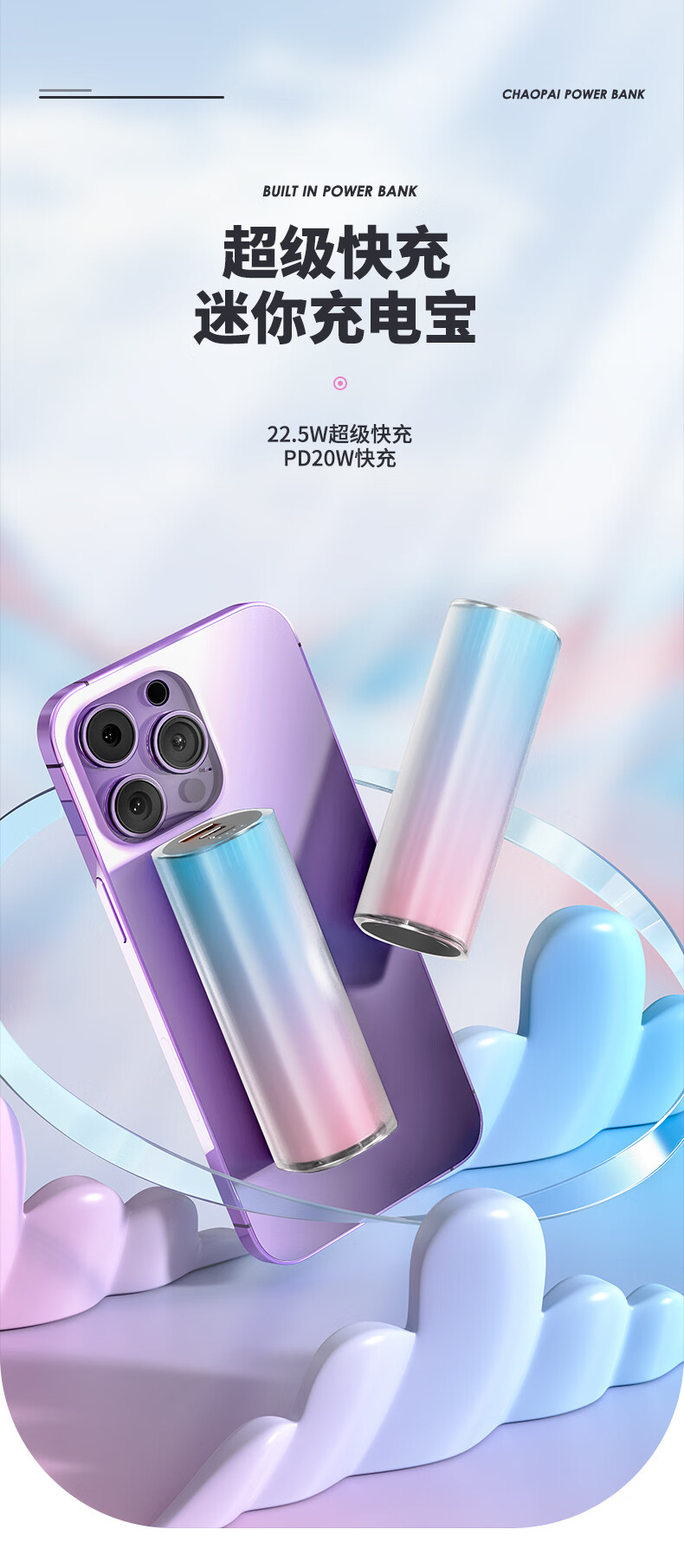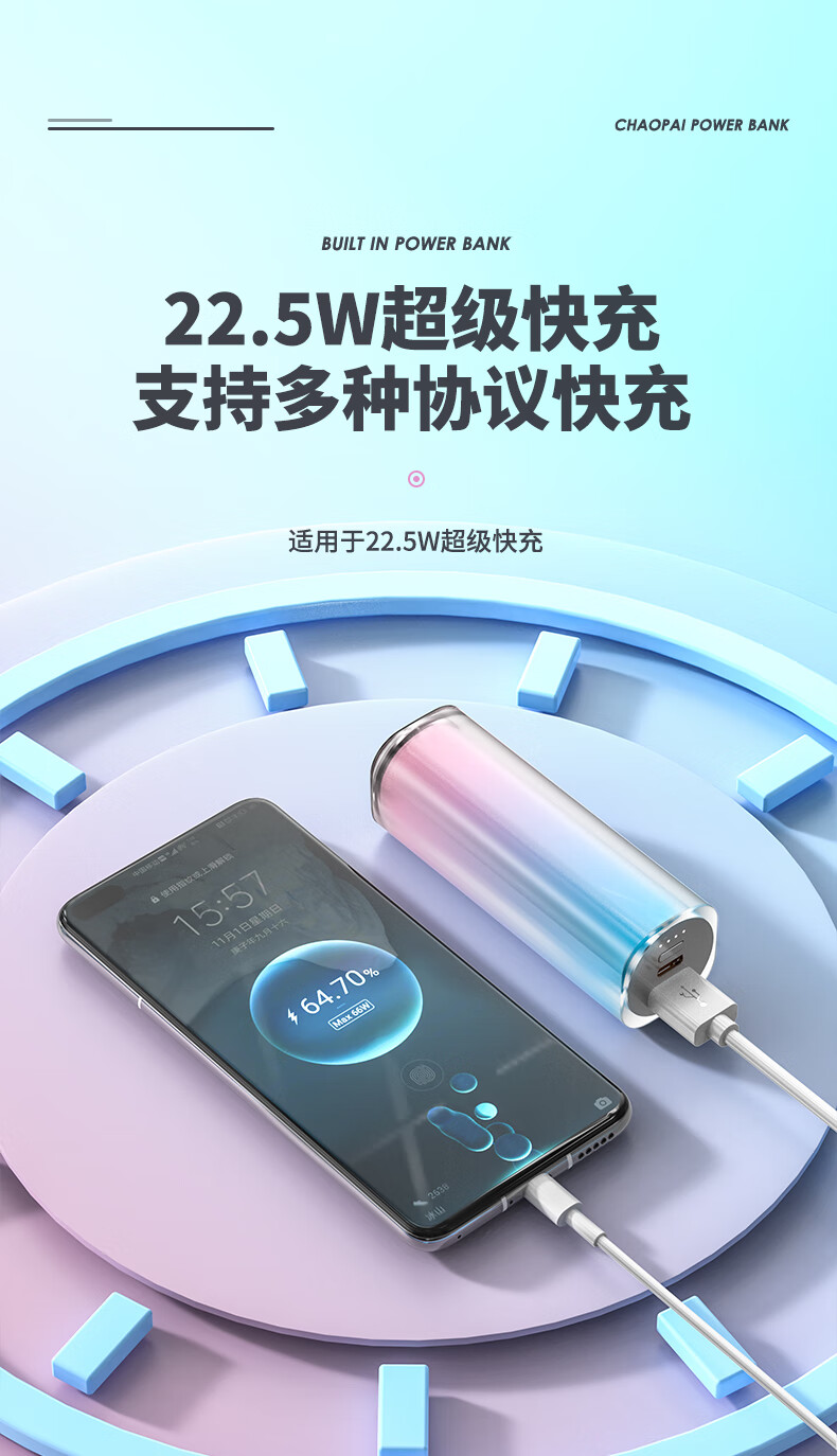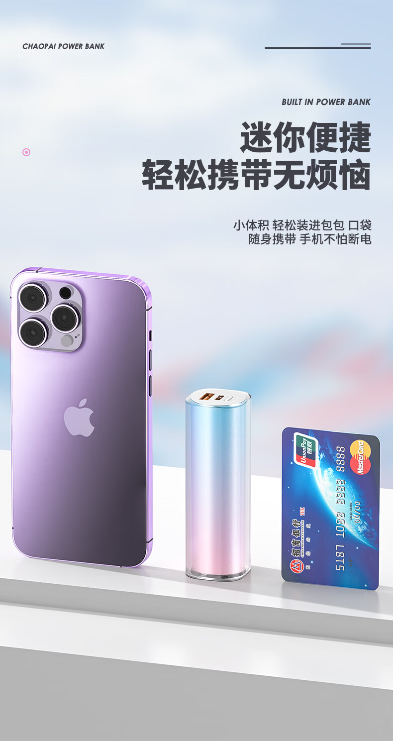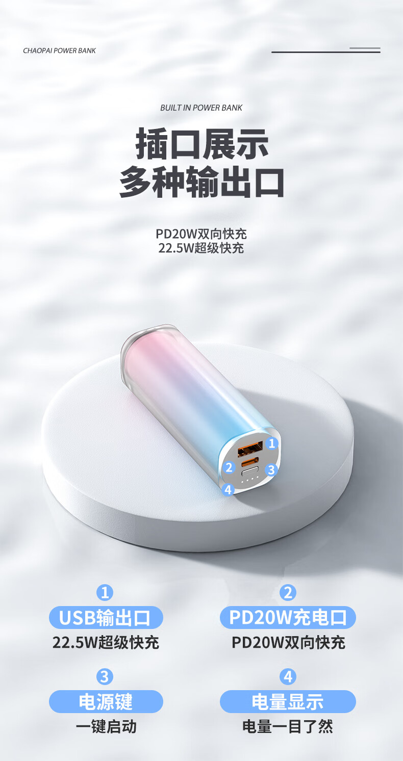 SMEBERT舒曼Kiss充电宝5000mAh口红版 Type-C双向充电 多设备兼容20W 快充轻巧 便携充电宝