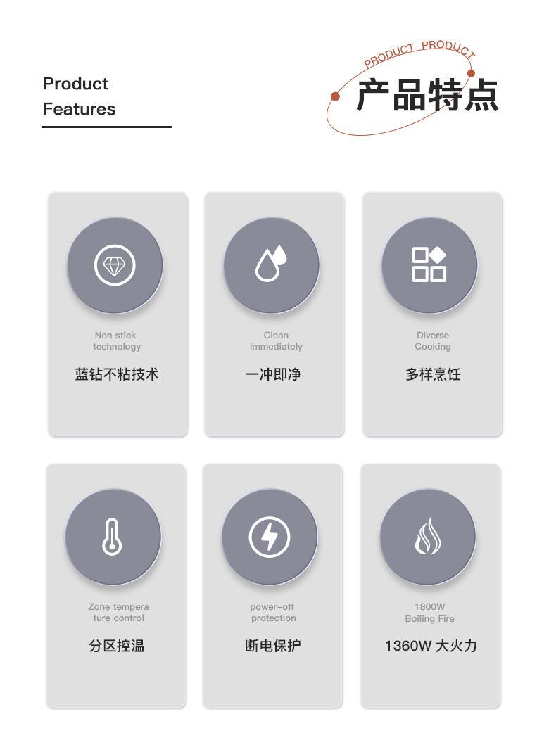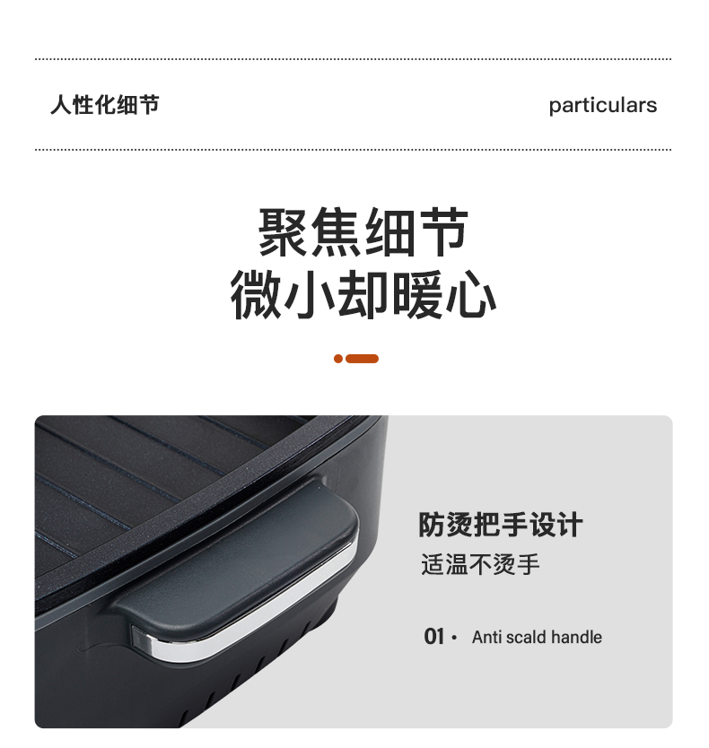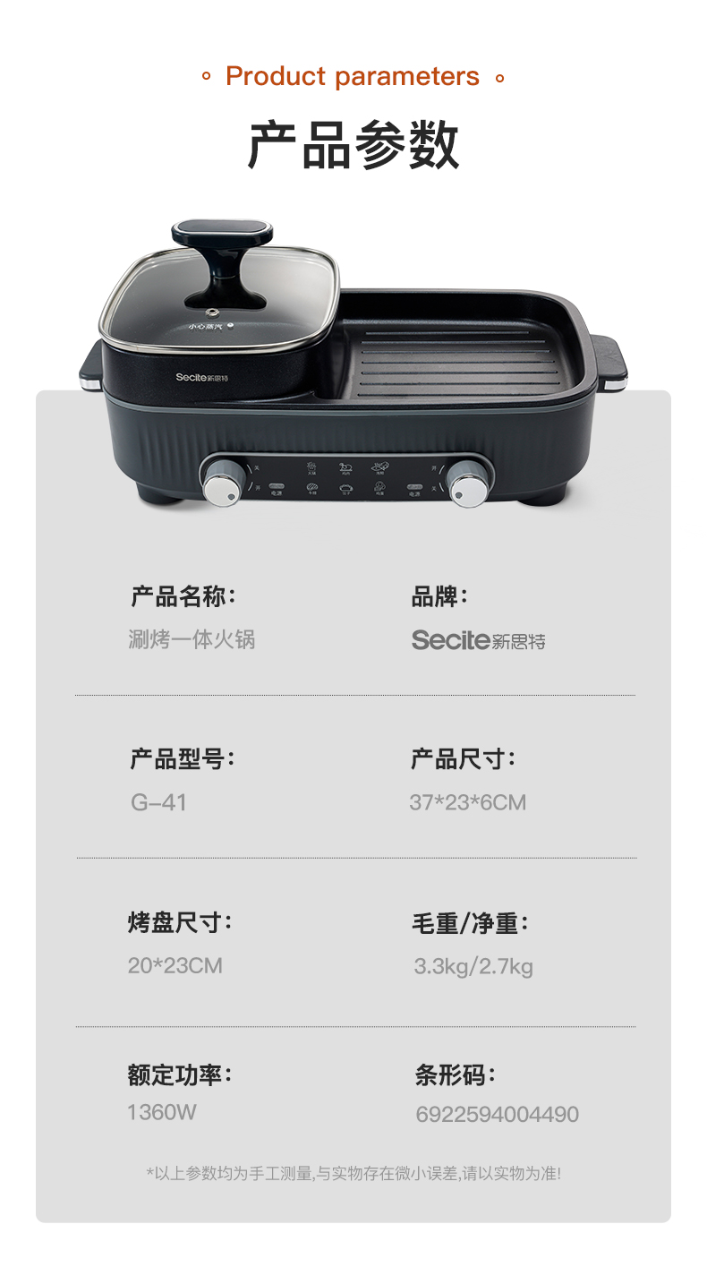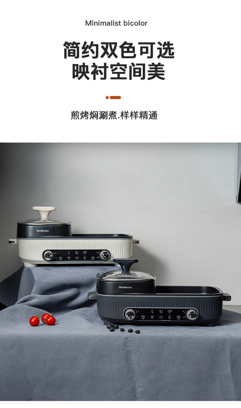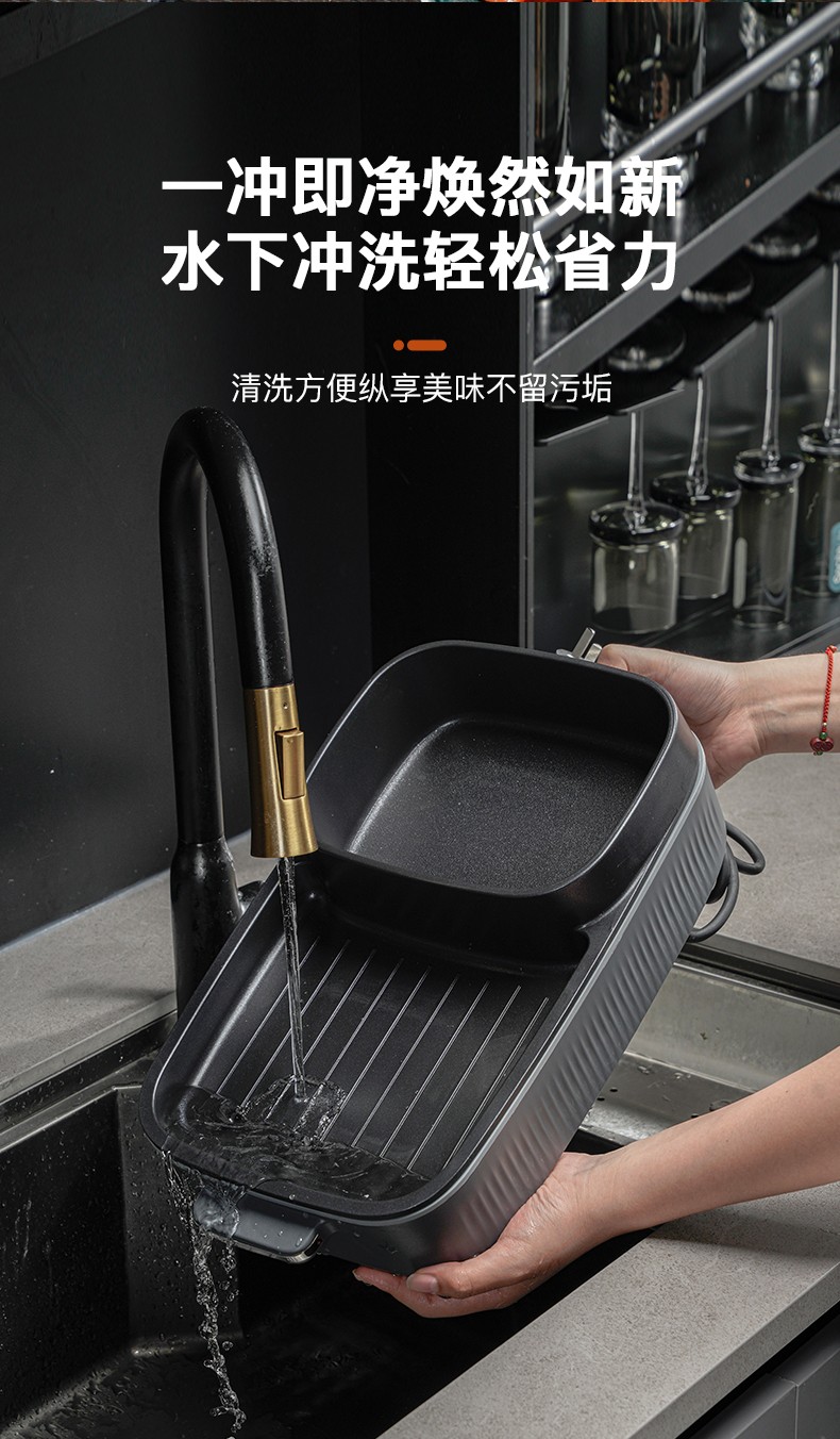 新思特G-41涮烤一体锅多功能锅煎炸焖煮炖炒蒸涮烤一体电热锅小型火锅烧烤机 高级灰