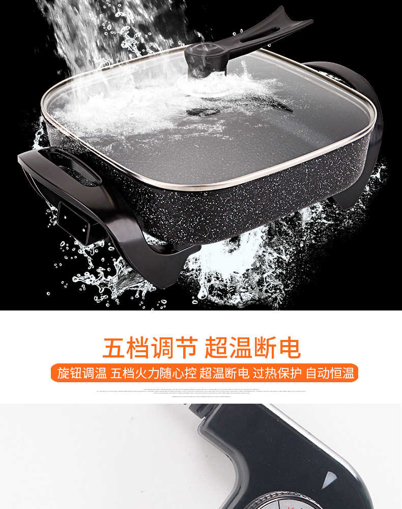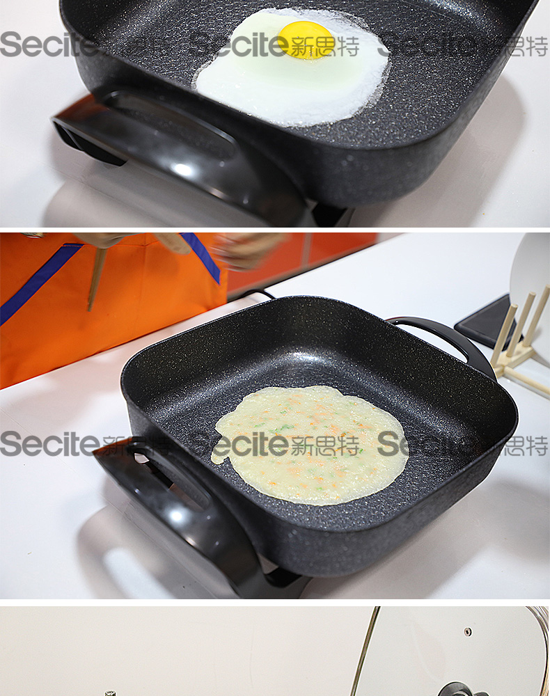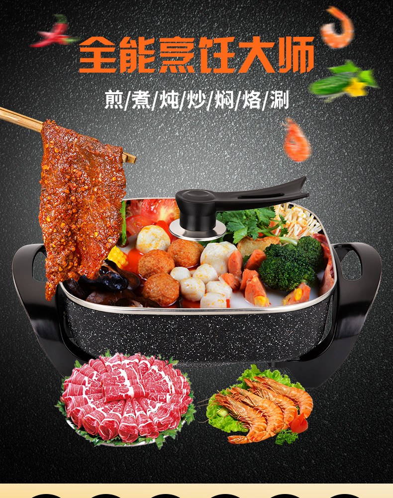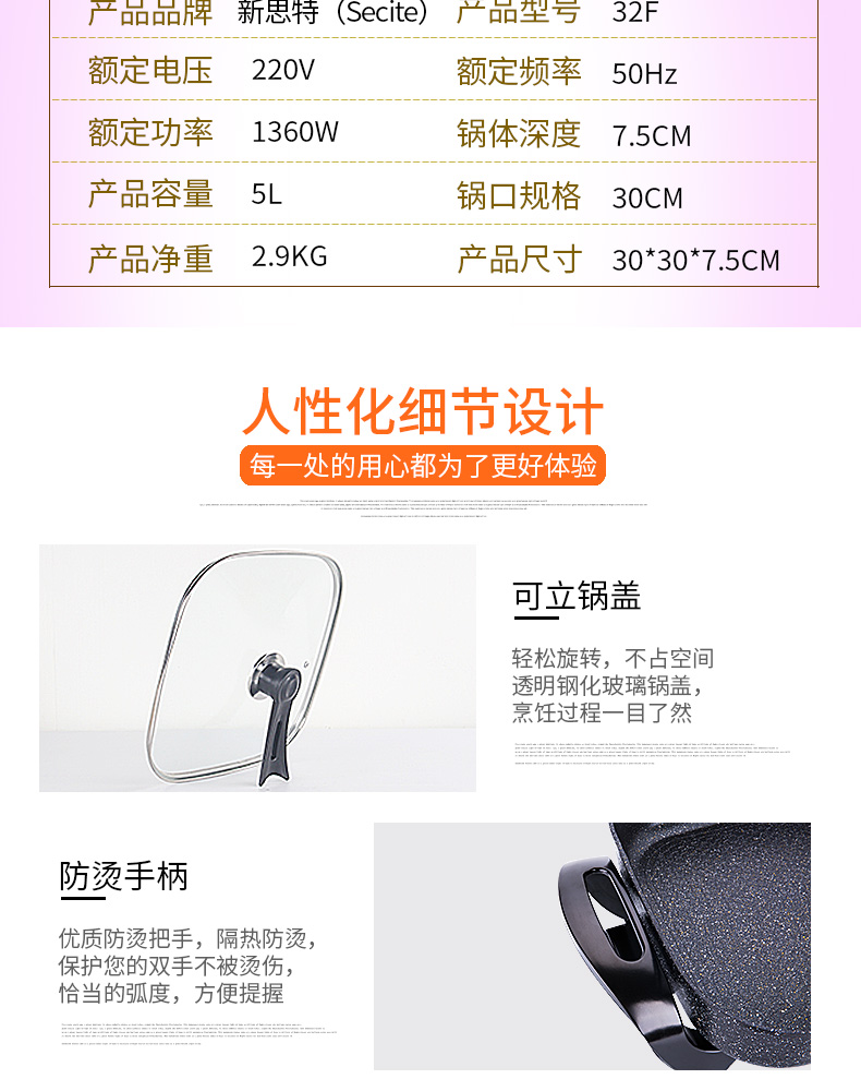 新思特多功能电火锅32F煎炸焖煮炖炒多功能电锅炒菜火锅煎炸家用小电器不粘易清洁全身可水洗加热速度快