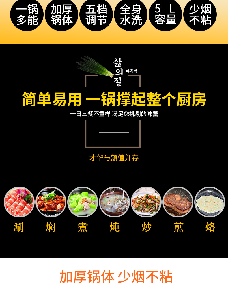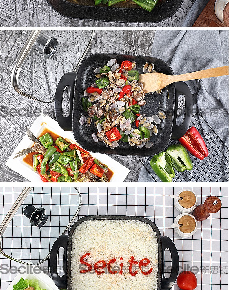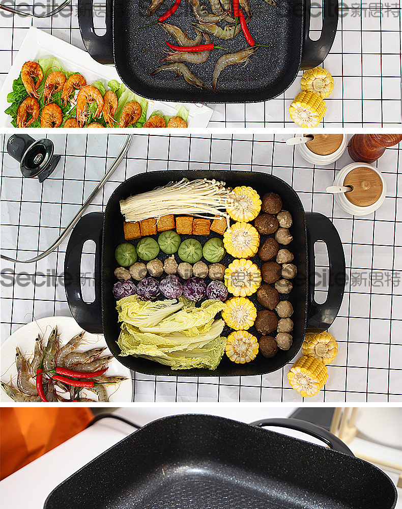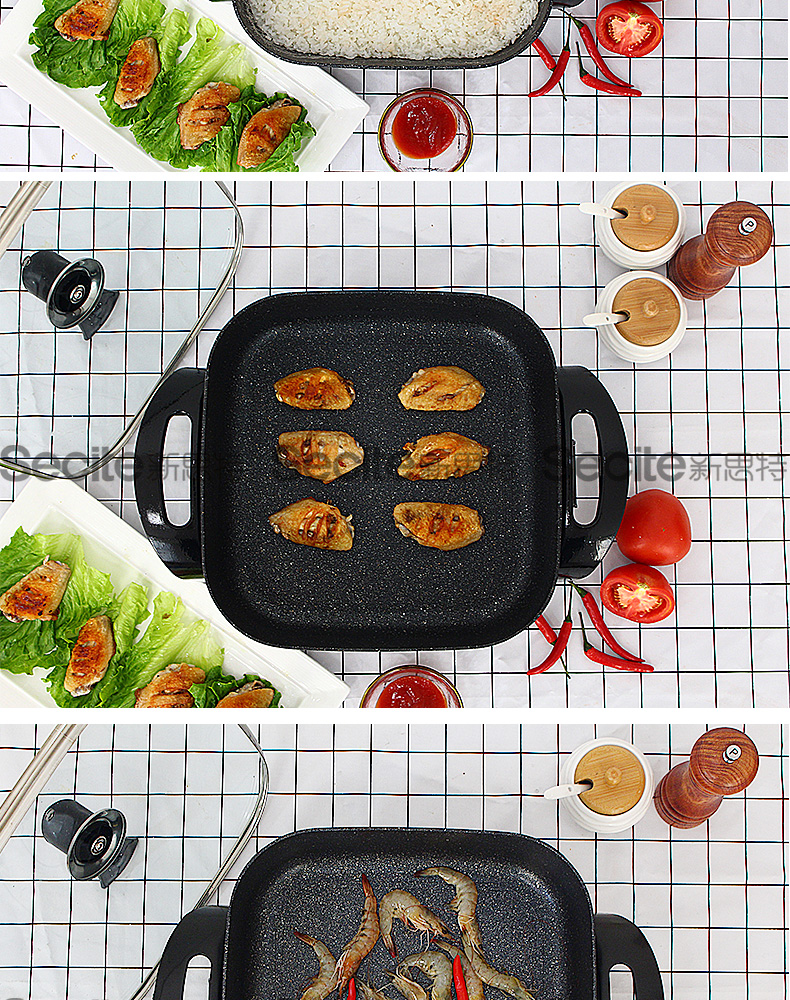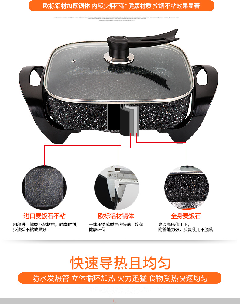 新思特多功能电火锅32F煎炸焖煮炖炒多功能电锅炒菜火锅煎炸家用小电器不粘易清洁全身可水洗加热速度快