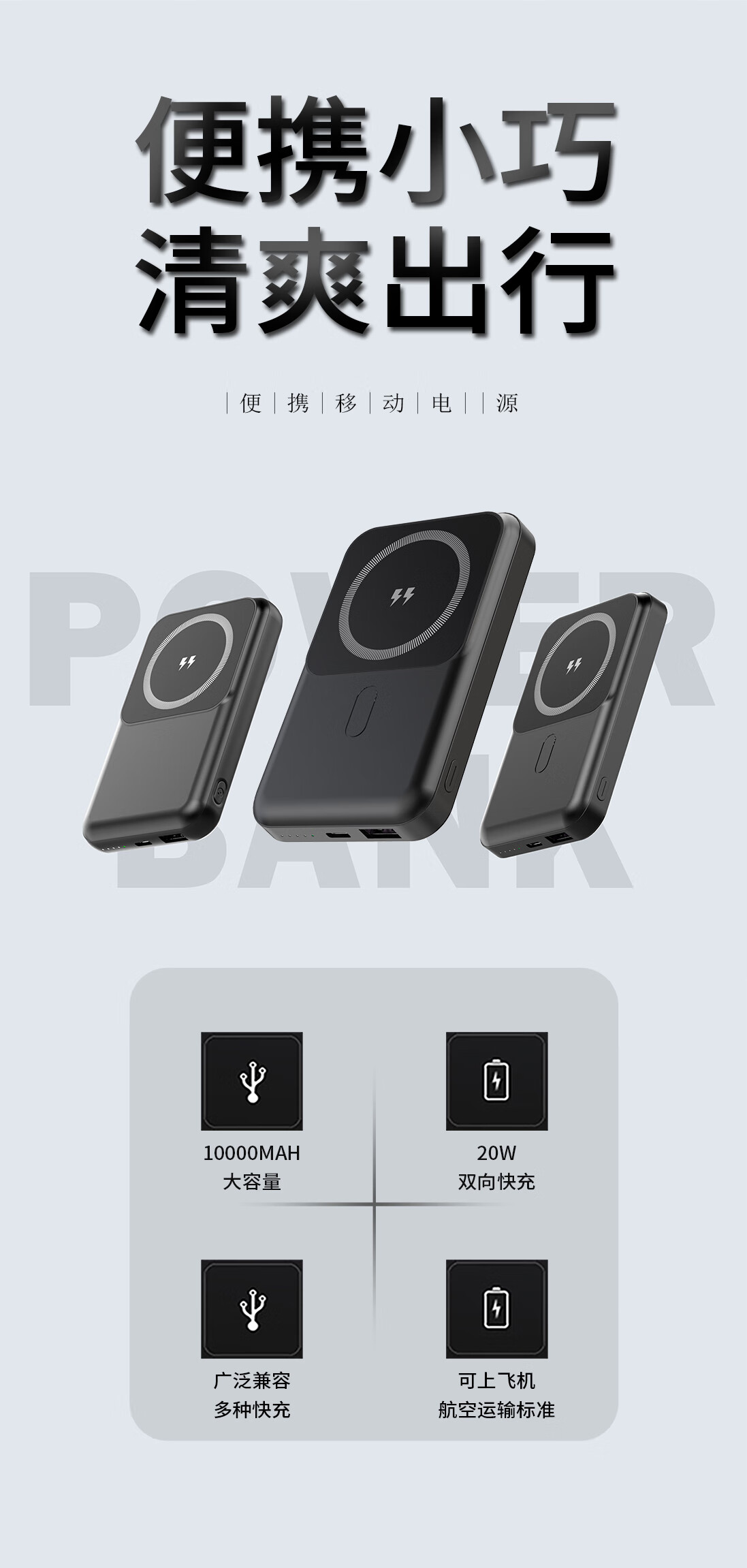 SMEBERT 舒曼C18苹果磁吸无线充电宝支持MagSafe外接电池10000毫安时快充充电宝