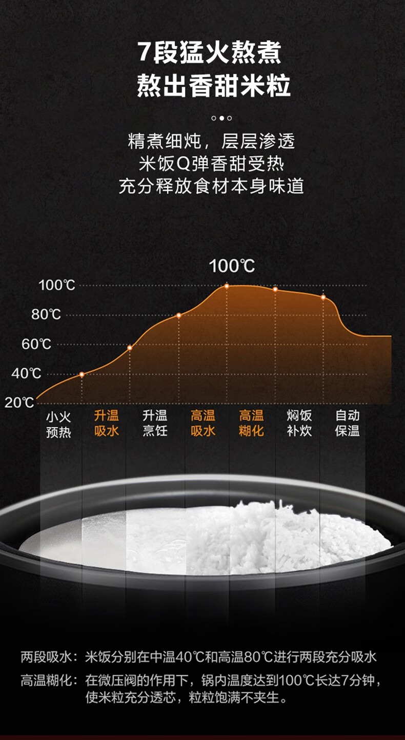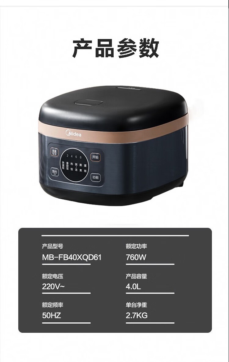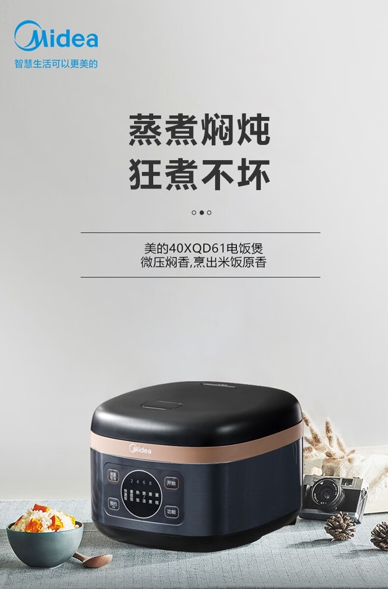 美的(Midea)电饭煲4升多功能 微压焖香蒸汽智能5层内胆7段熬煮电饭锅 MB-FB40XQD61