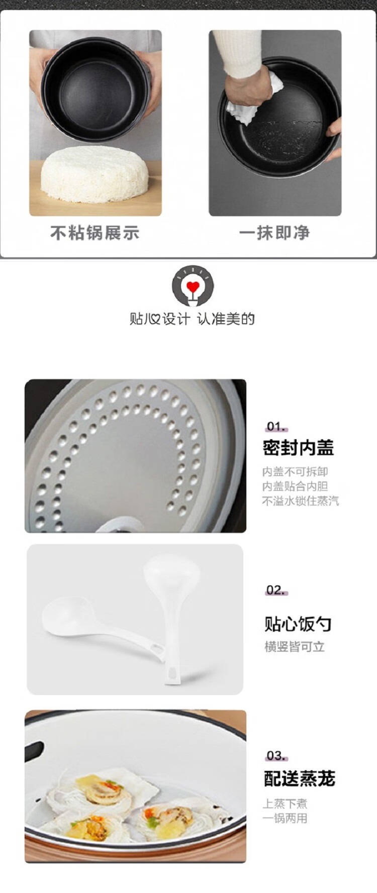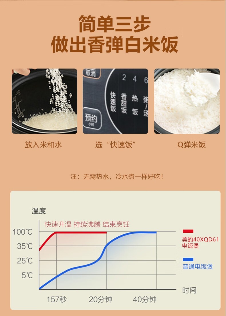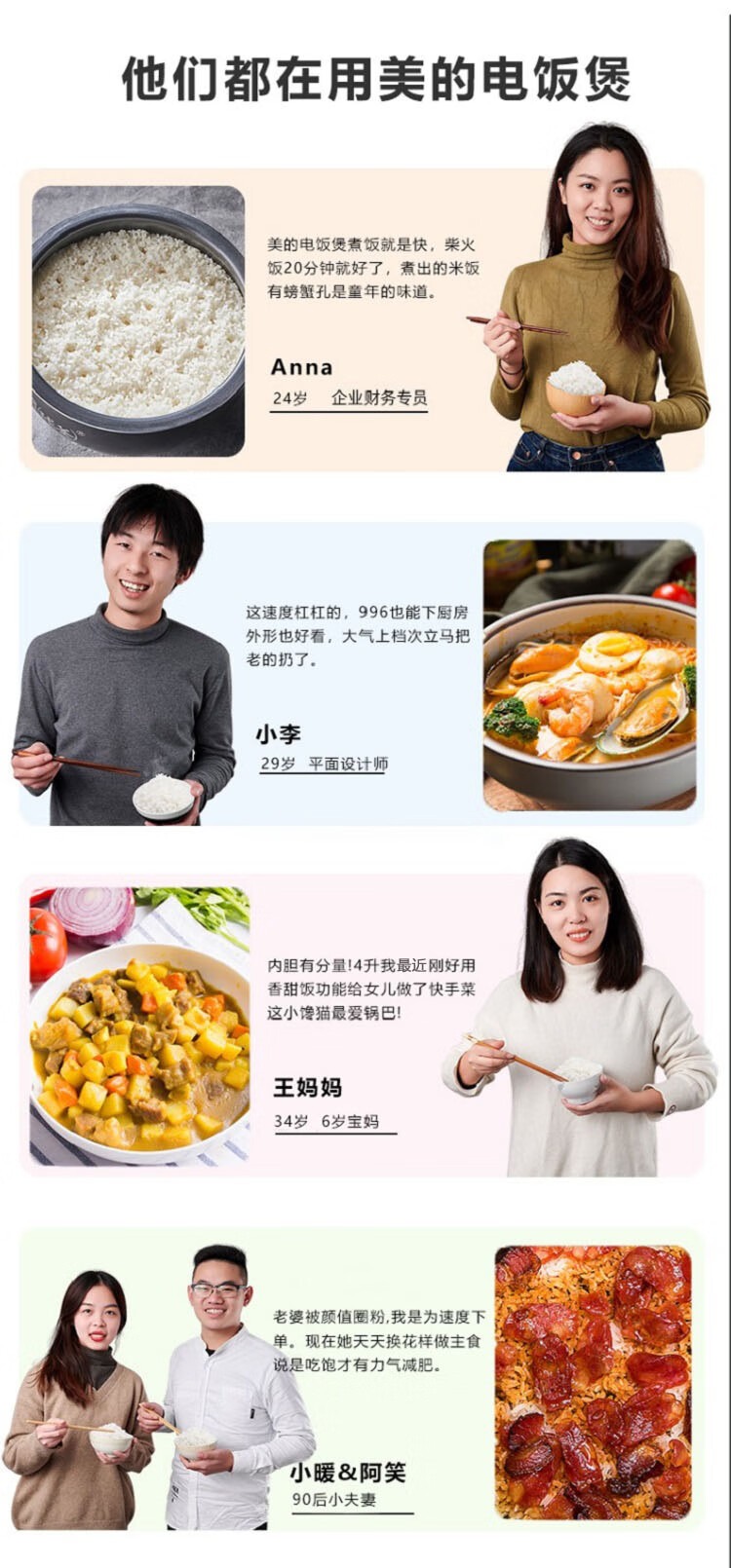 美的(Midea)电饭煲4升多功能 微压焖香蒸汽智能5层内胆7段熬煮电饭锅 MB-FB40XQD61