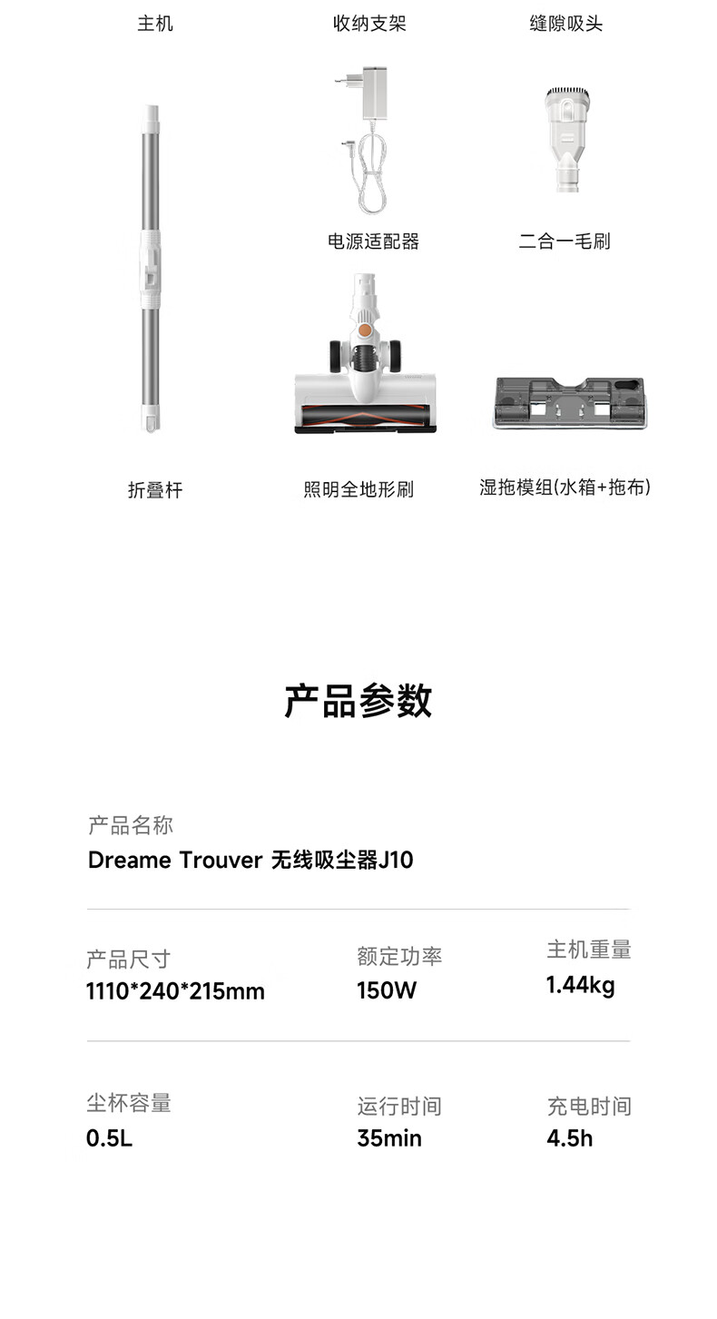 追觅无线吸尘器 长续航 折叠金属杆 家庭宠物使用追 觅Dreame J10