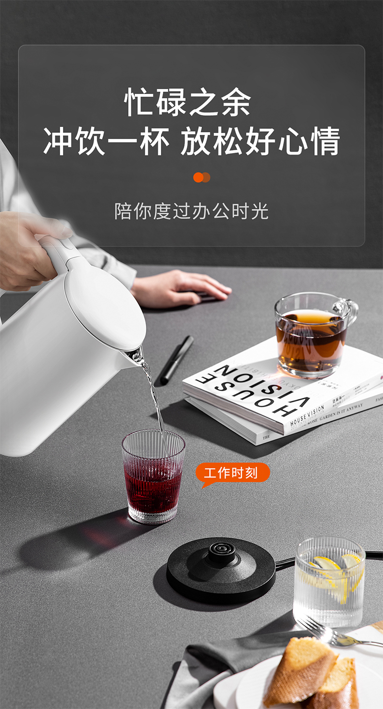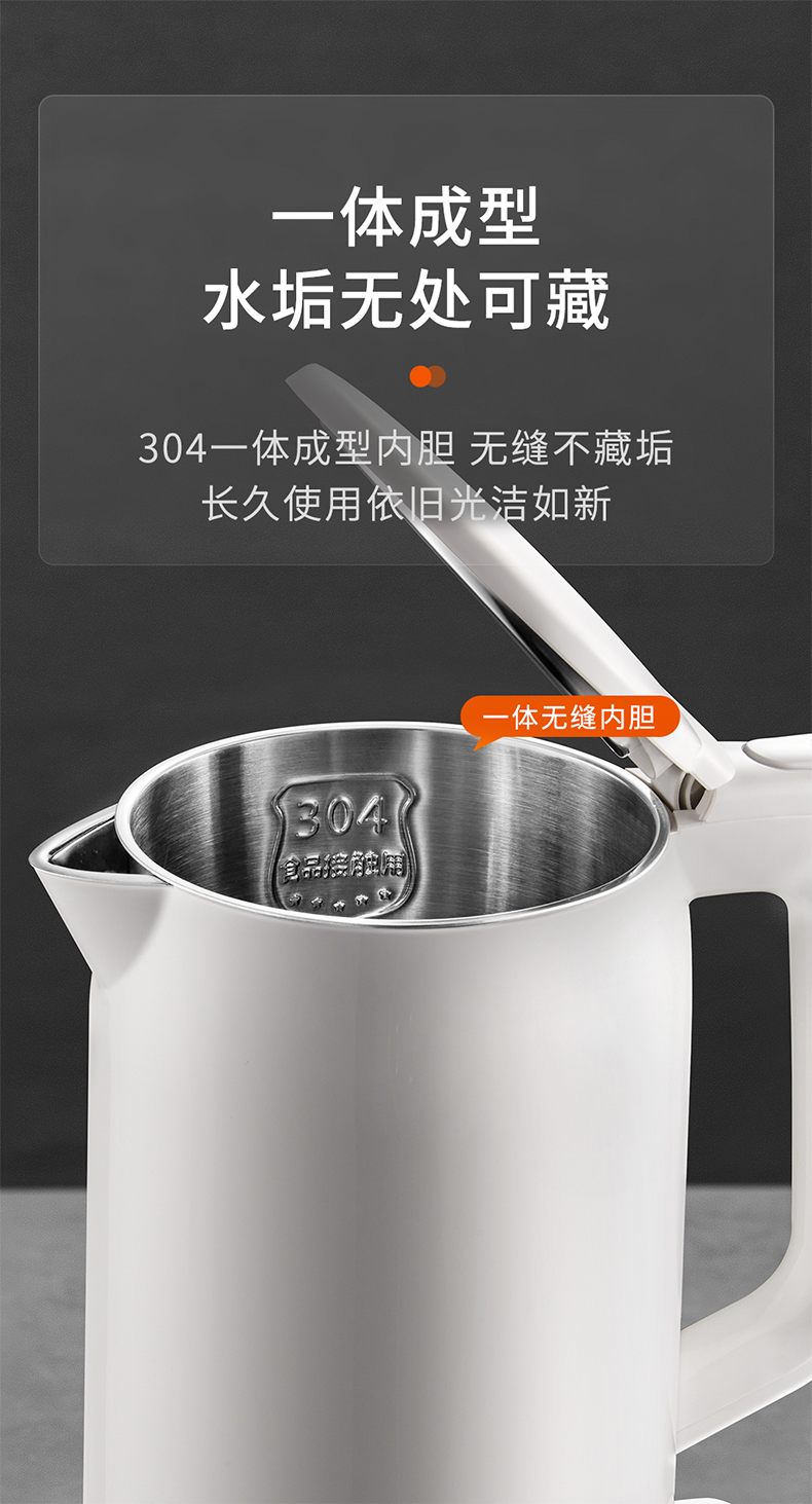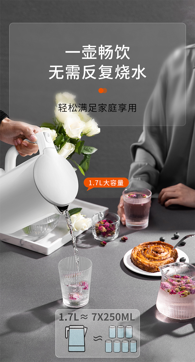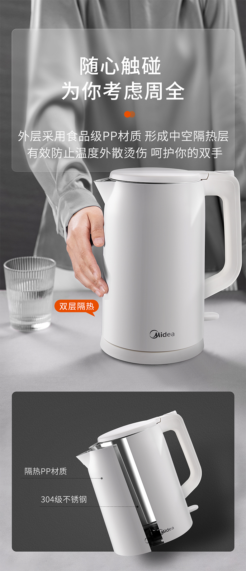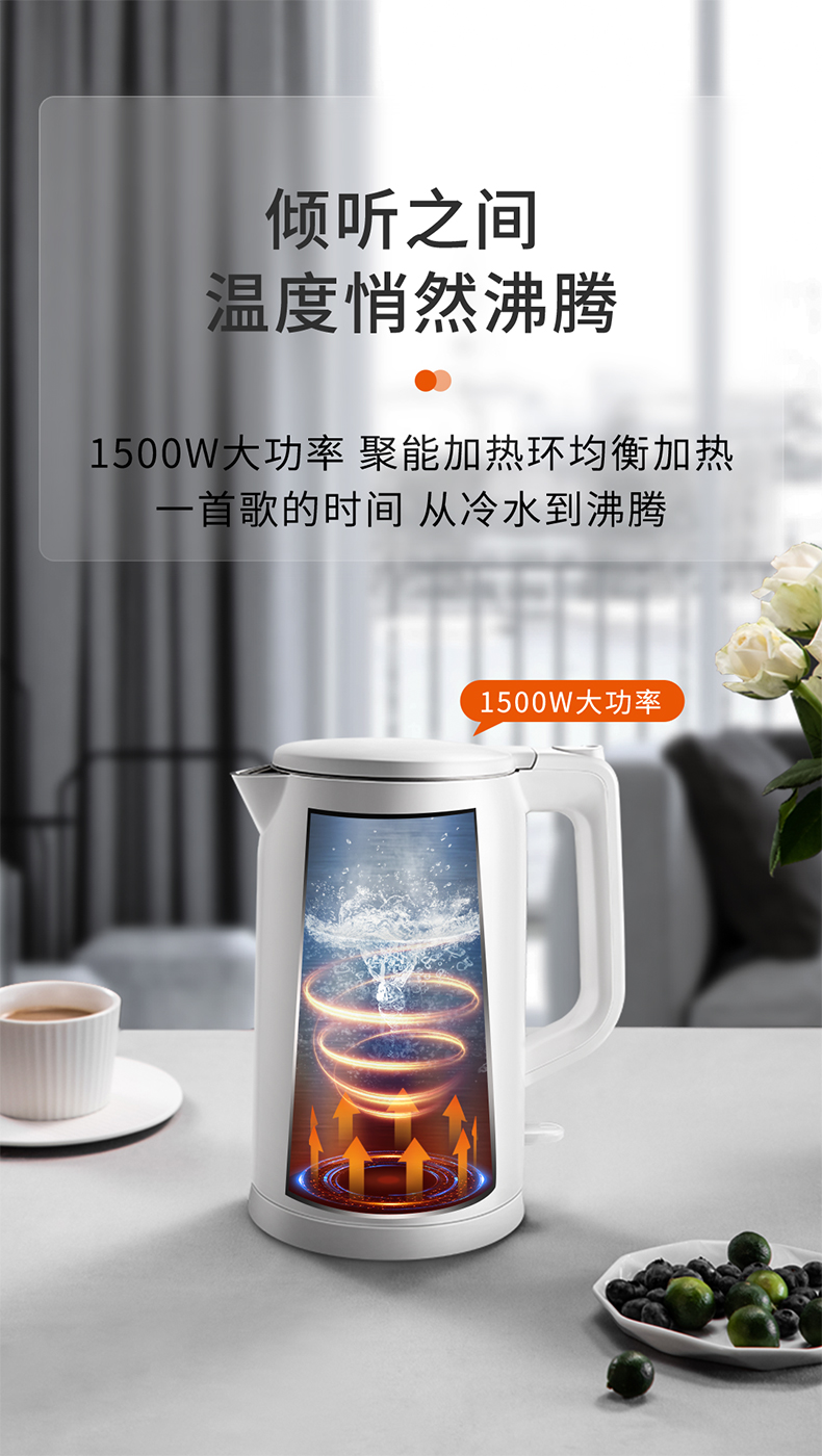 美的MK-AEK1769电热水壶 1.7L双层防烫家用烧水壶开水壶