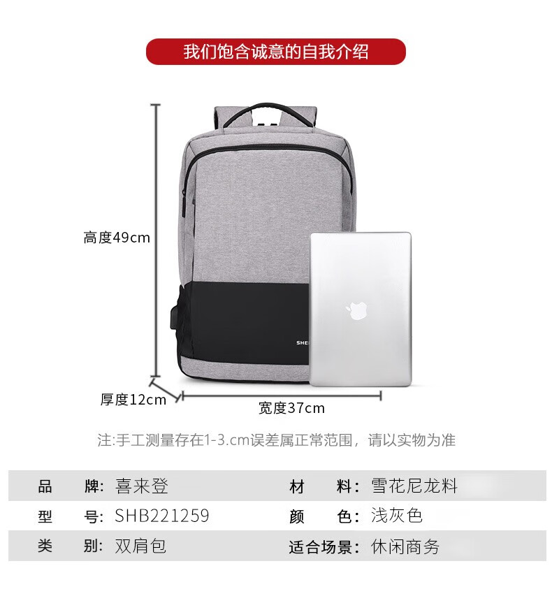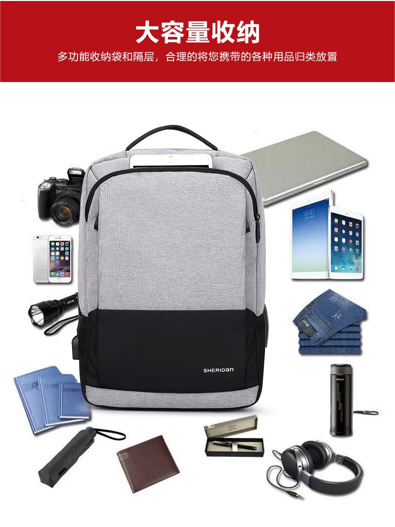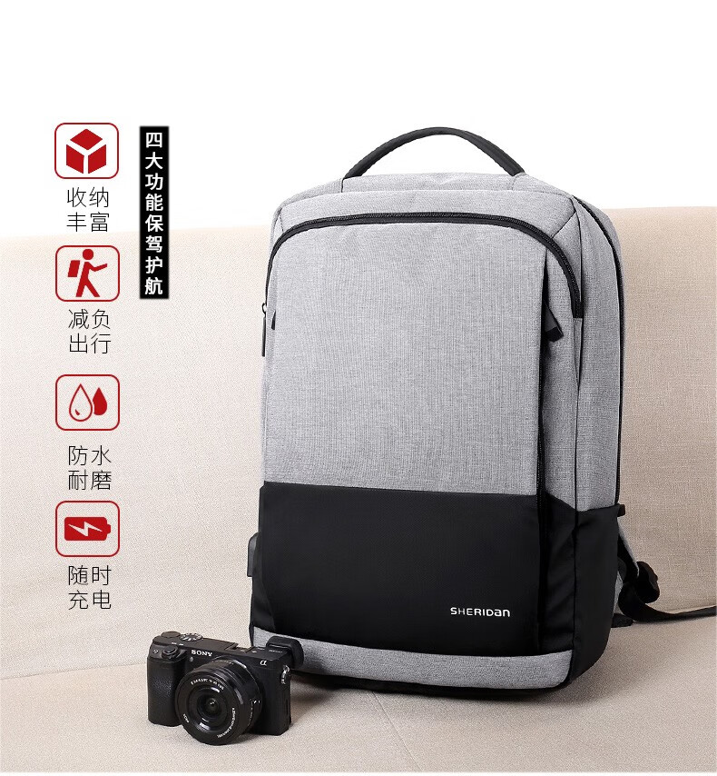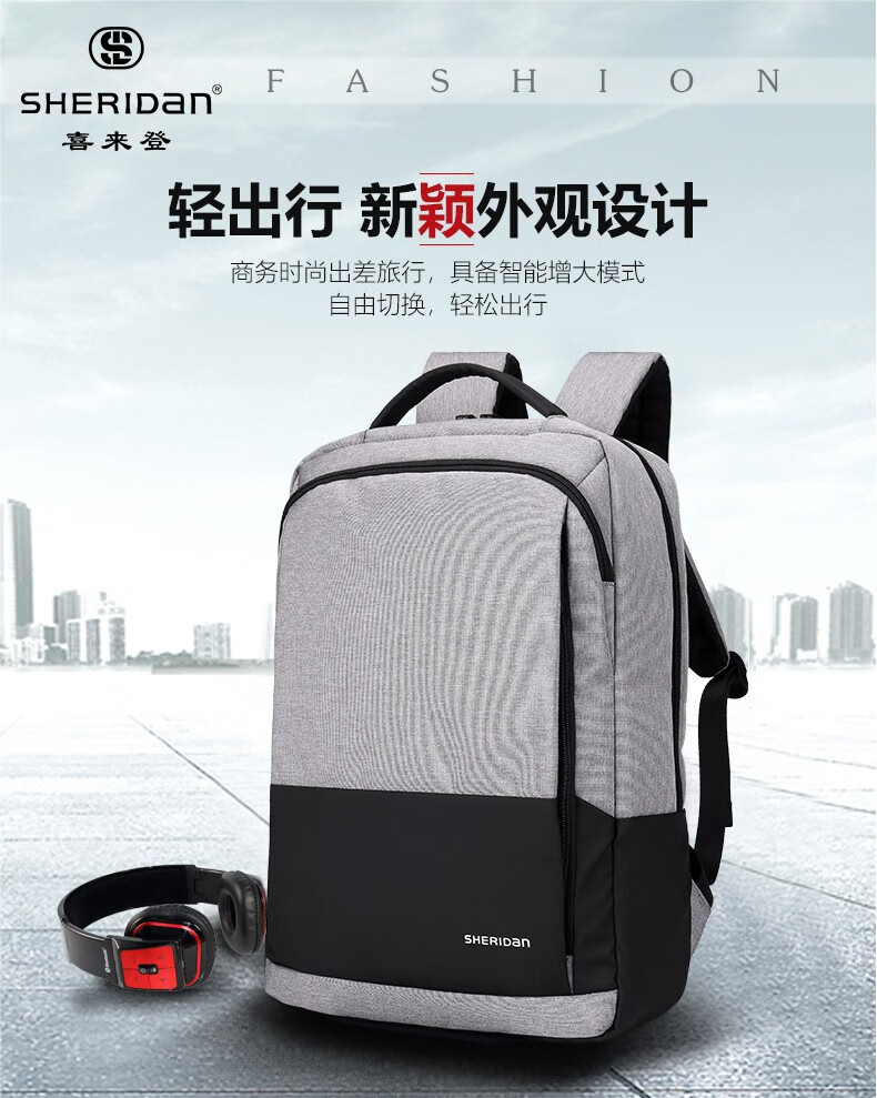 喜来登(SHERIDAN)双肩包男 背包大容量15.6英寸电脑包 男士户外旅行休闲商务包 SHB221259