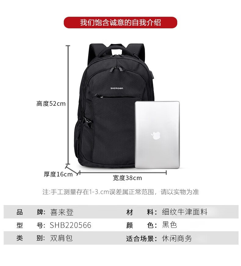 喜来登(SHERIDAN)双肩背包男 15.6英寸笔记本电脑包 商务多功能大容量背包旅行包 SHB220566
