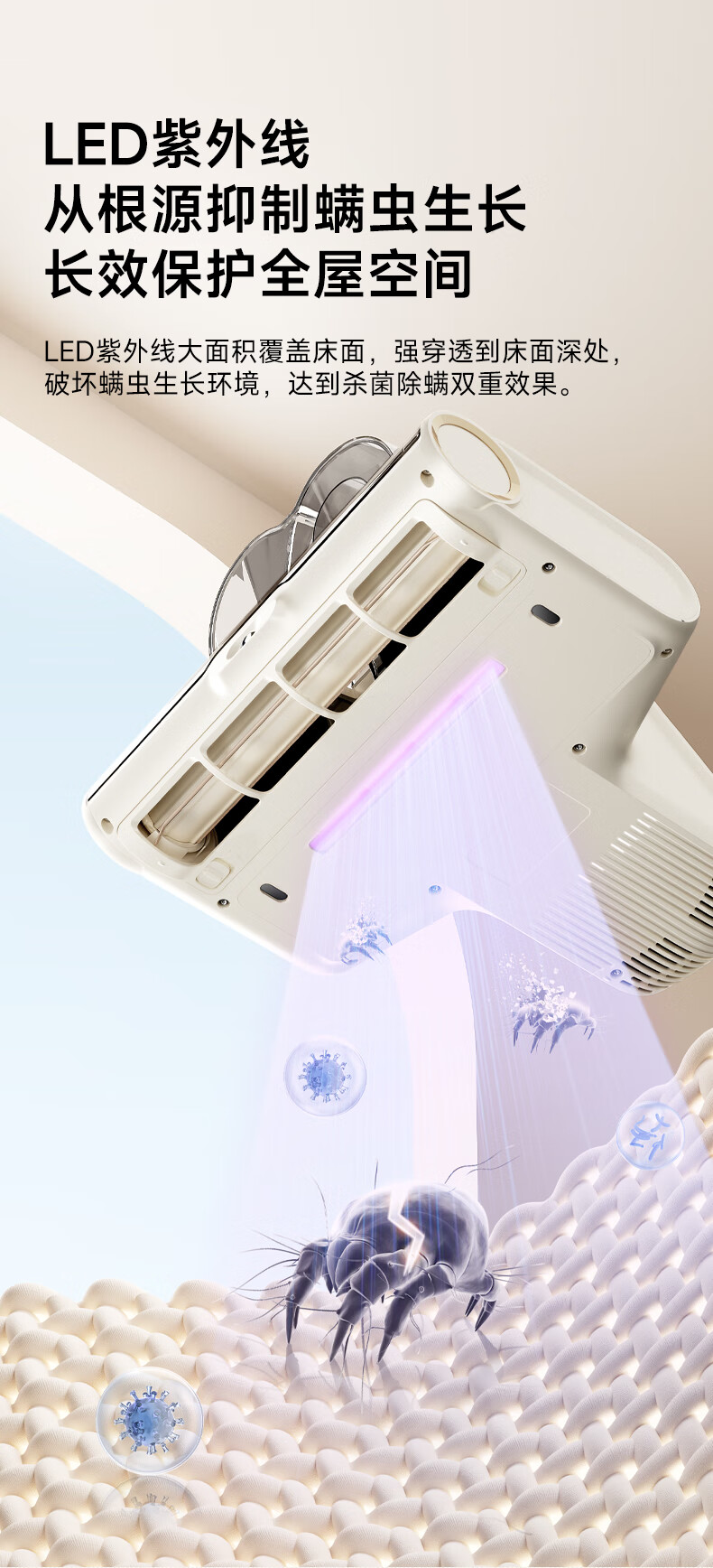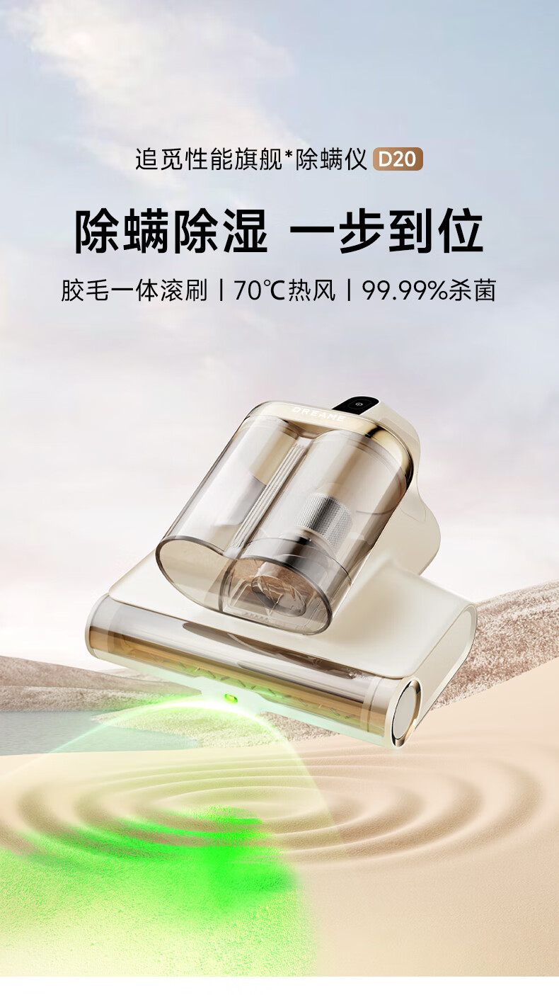 追觅除螨仪D20 家用手持除螨 床上吸尘器 去螨虫 强劲捶打 双杯大吸力紫外线杀菌除湿