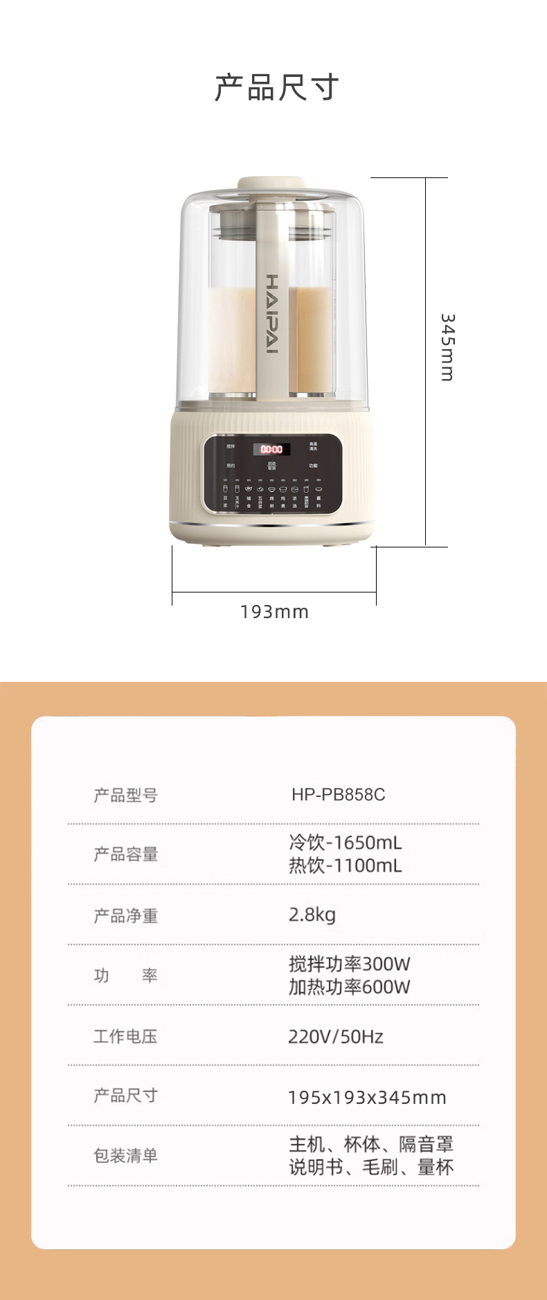 海牌HP-PB858C 安睡破壁机低音全自动豆浆机隔音罩多功能辅食机料理机米糊机