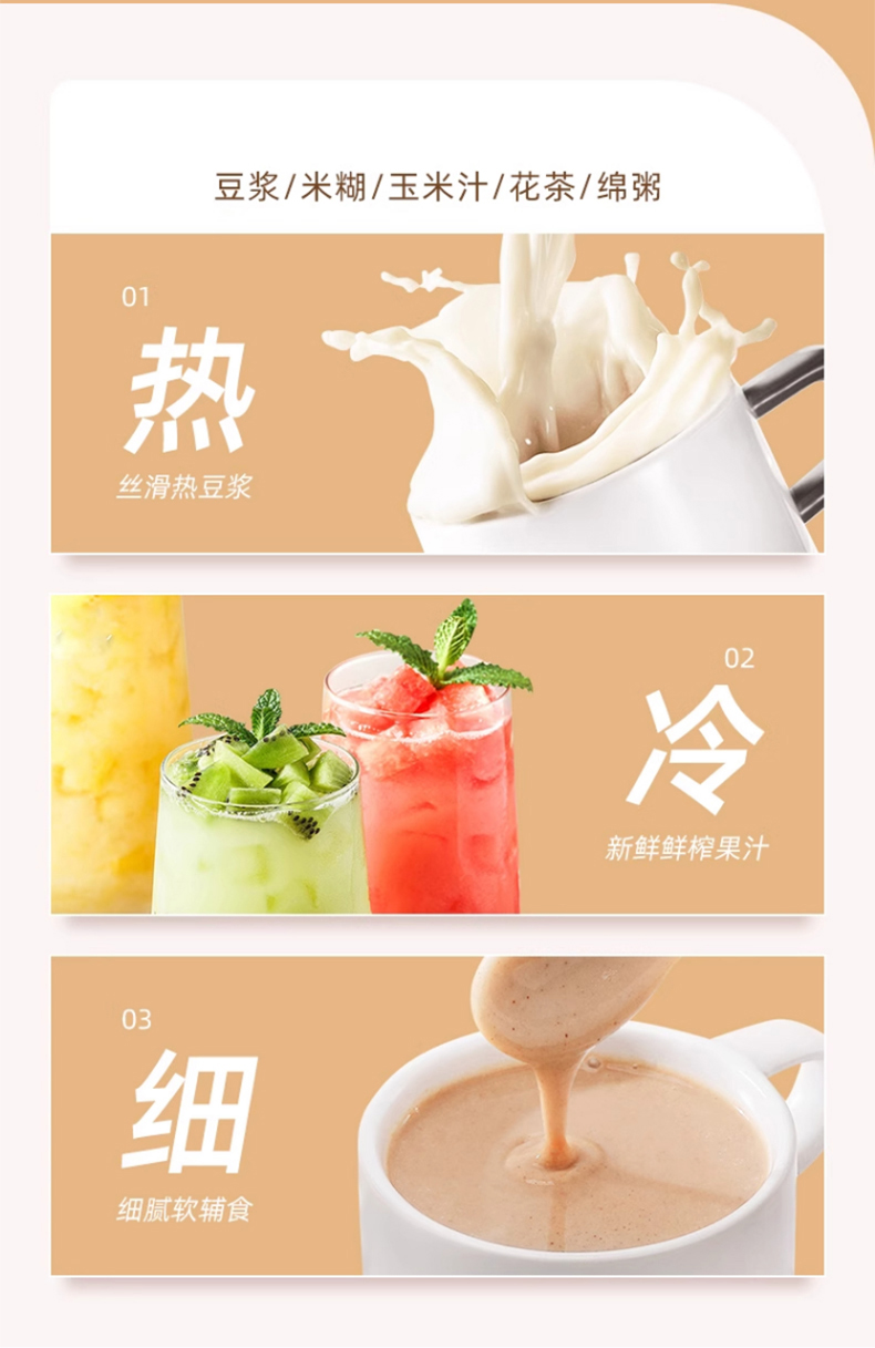 豆浆,五谷浆,玉米汁,绵粥,保温,鱼汤,婴儿糊,花茶,蒸煮,果蔬汁,预约,清洗