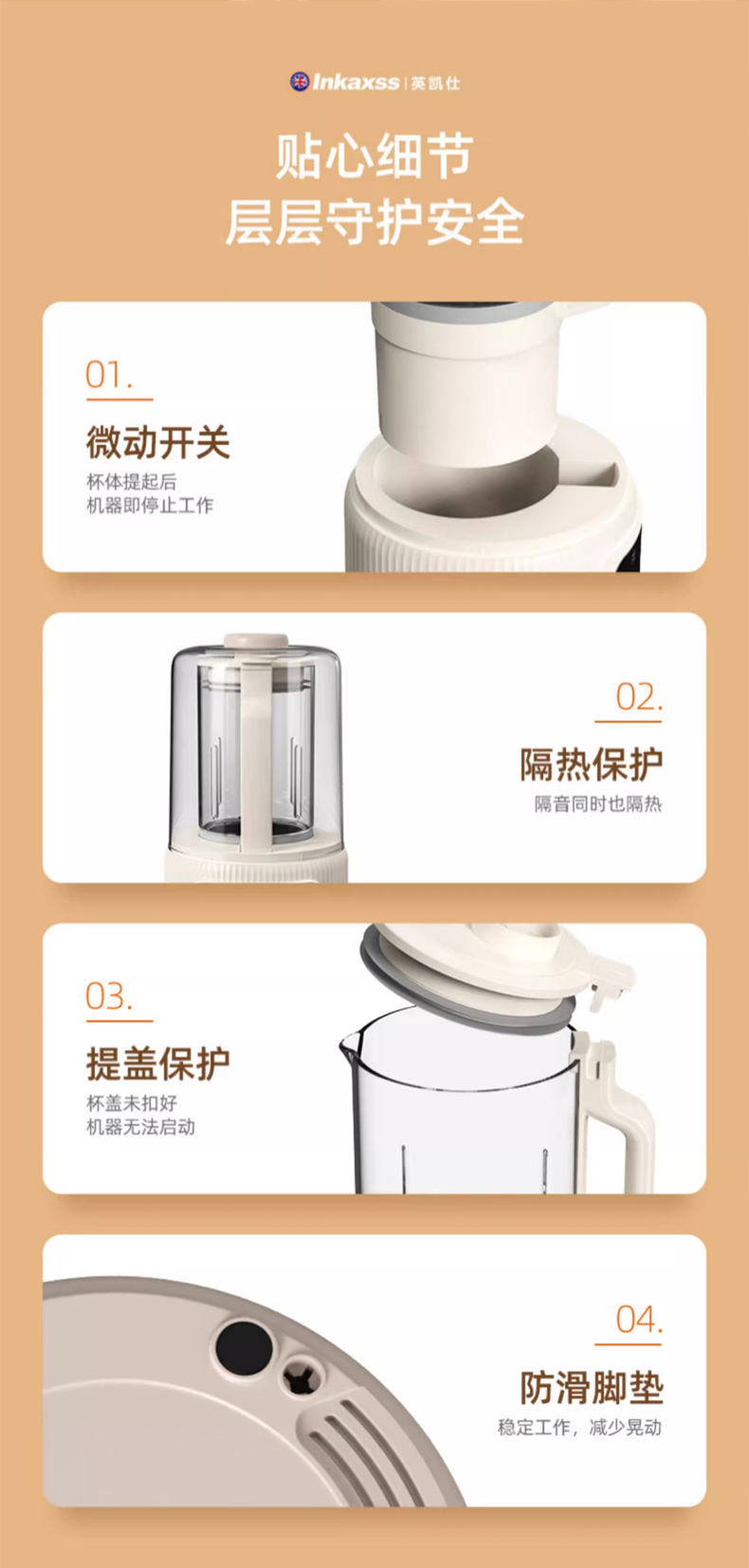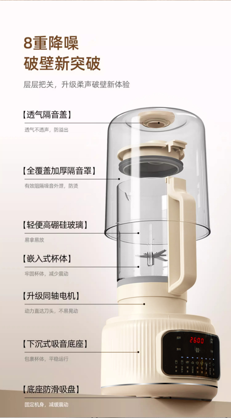 7重降噪设计,加厚隔音外罩,45db.低噪破壁不扰眠。