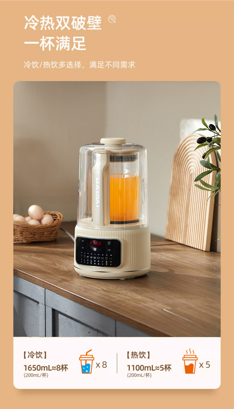 冷热双破壁机, 冷饮/热饮多选择,满足不同需求。