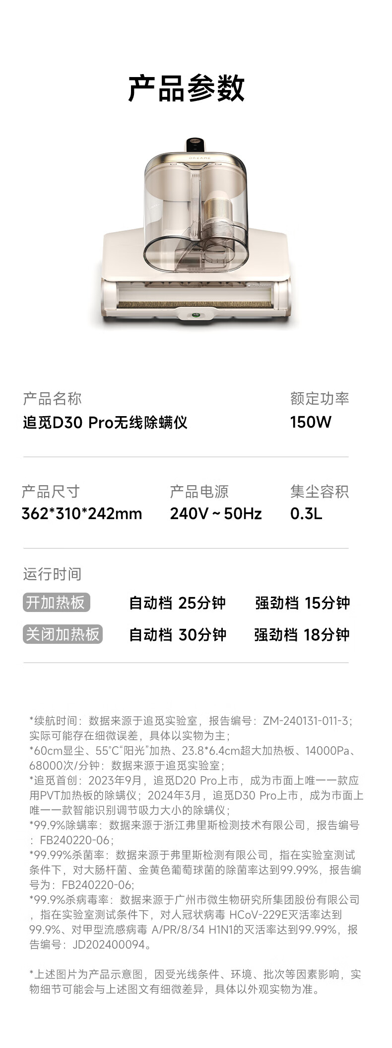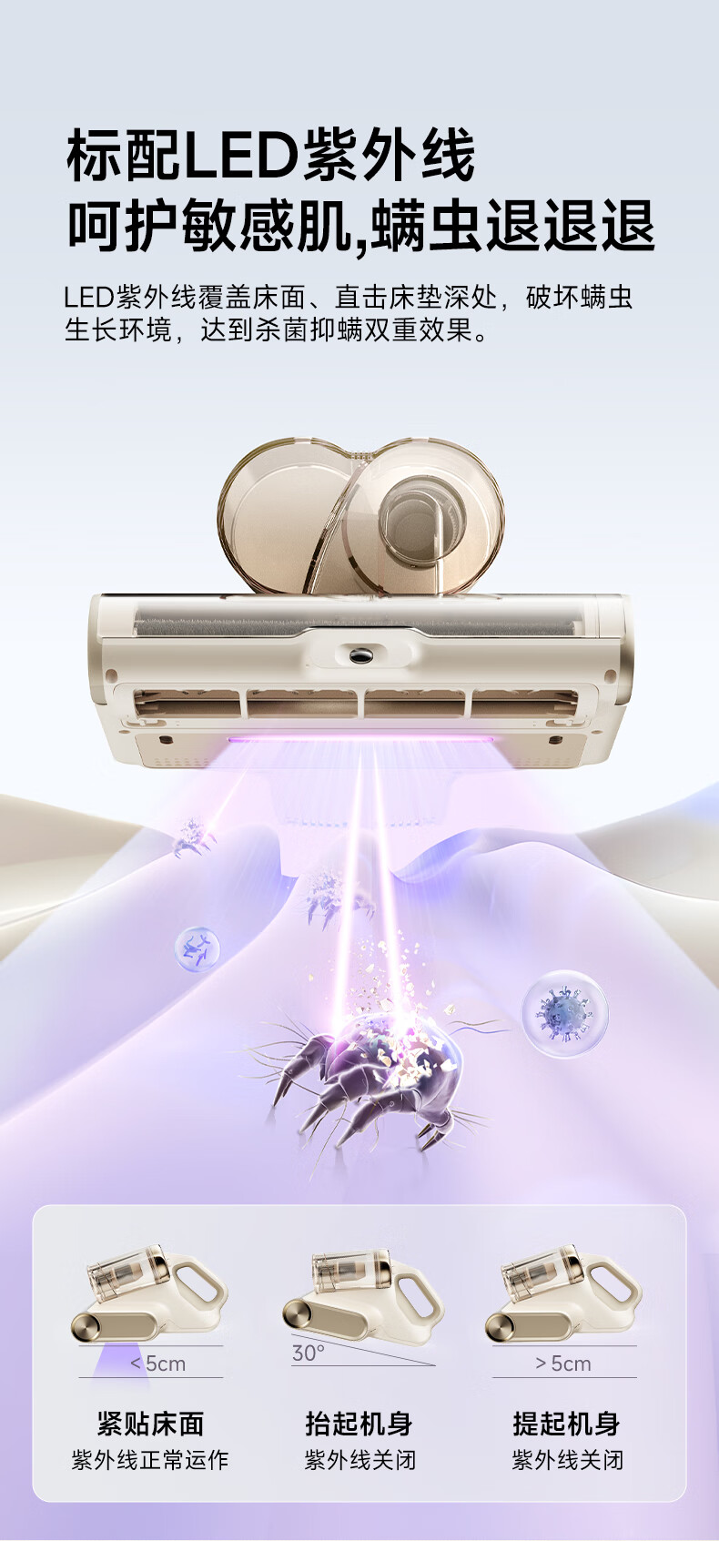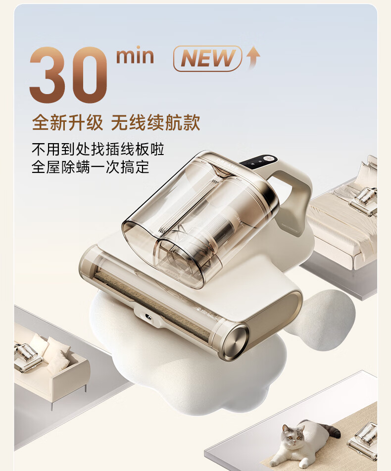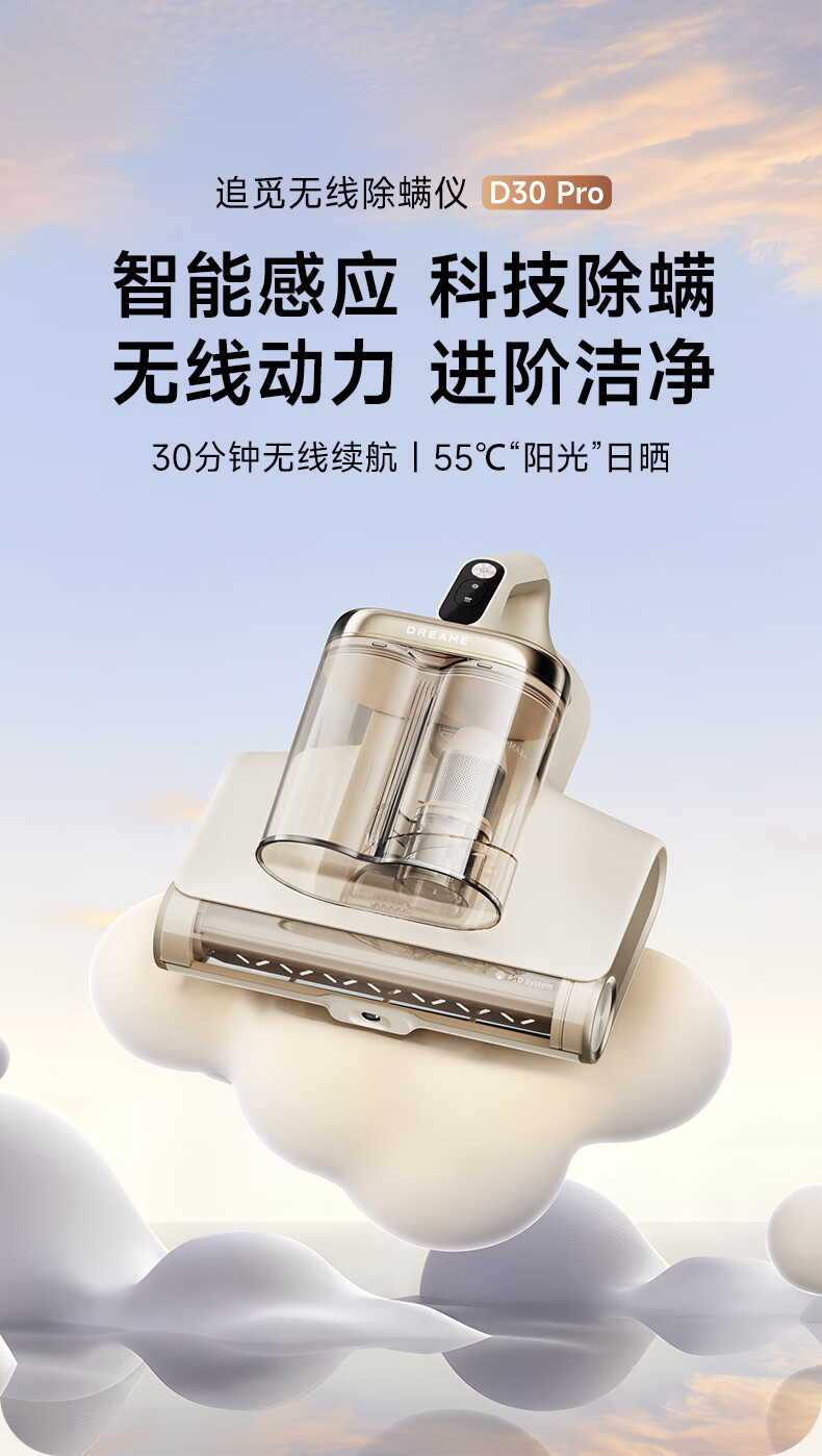 追觅家用无线手持除螨仪 床上吸尘器 除螨虫 360°强劲拍打长续航D30 Pro