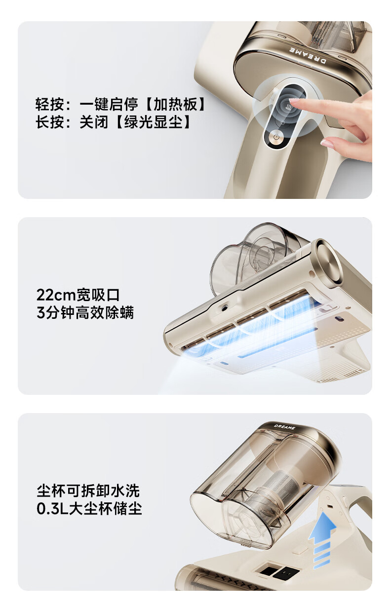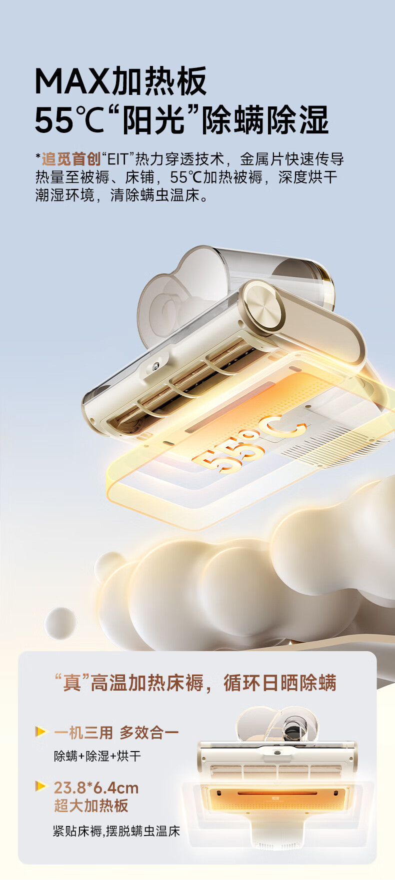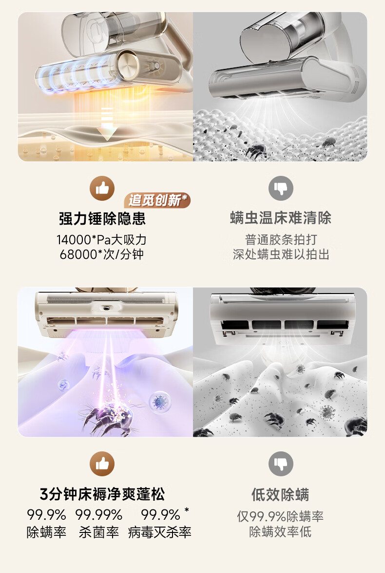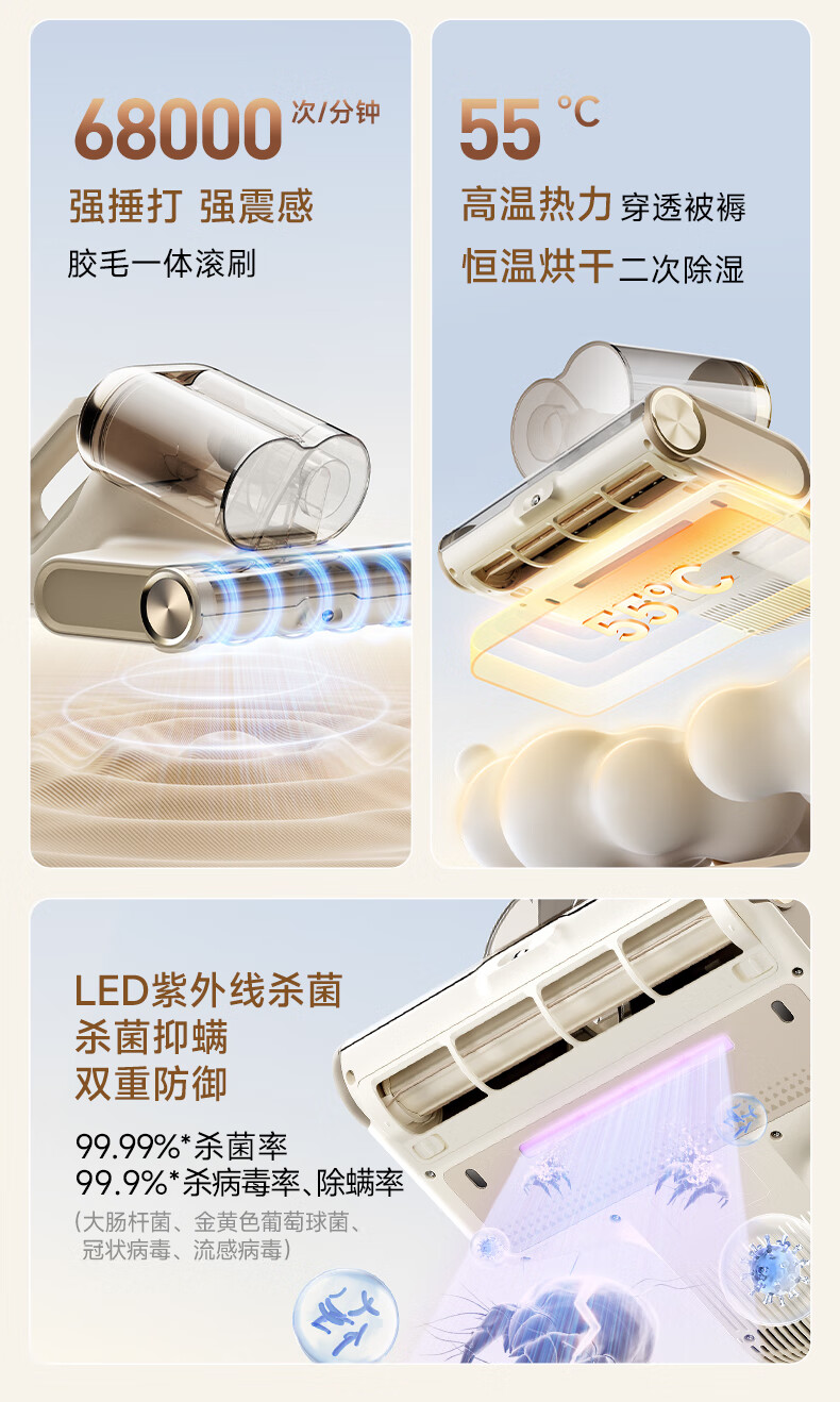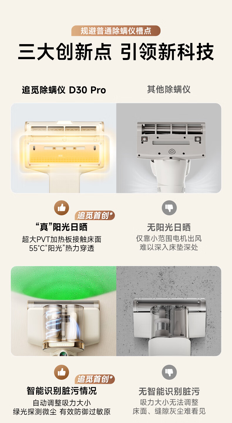 追觅家用无线手持除螨仪 床上吸尘器 除螨虫 360°强劲拍打长续航D30 Pro
