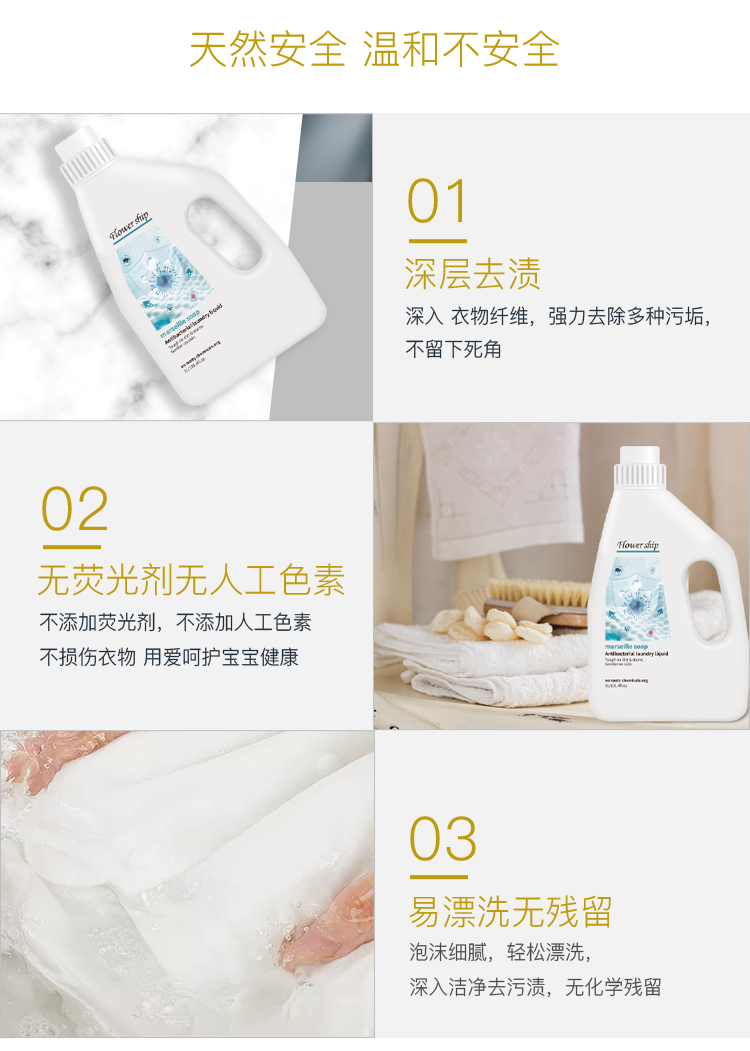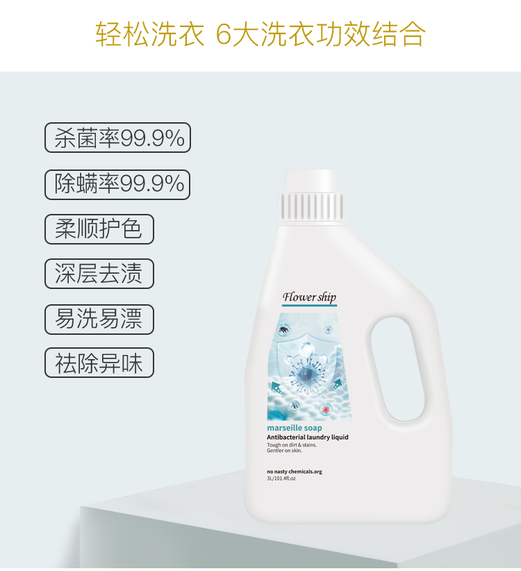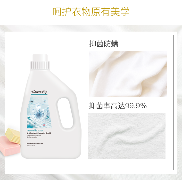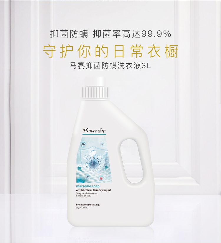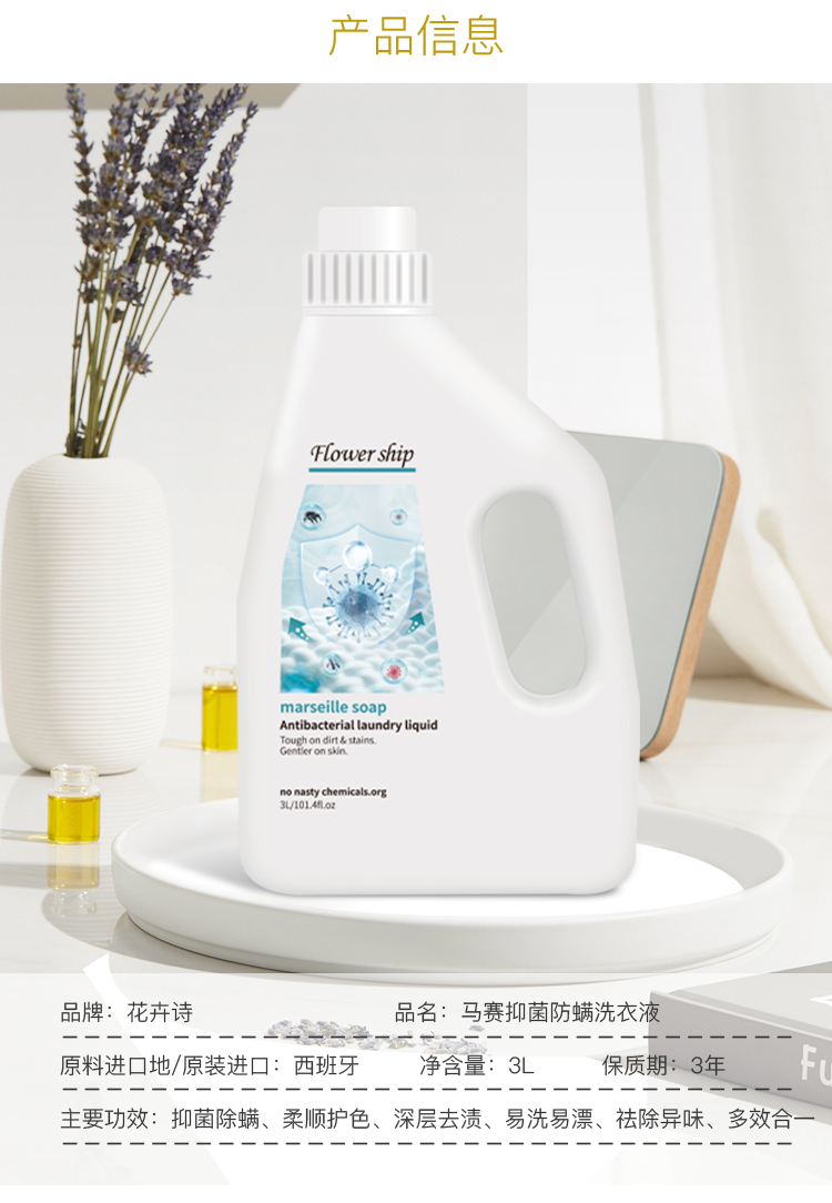 Flower ship西班牙花卉诗原装进口洗衣液除螨去污祛异味植物清香马赛菌洗衣液3L*3瓶