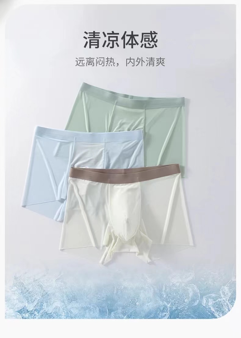 【秋鹭】2410款号冰丝轻薄凉感男平角面膜内裤1盒3条