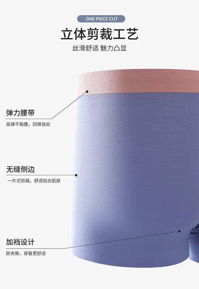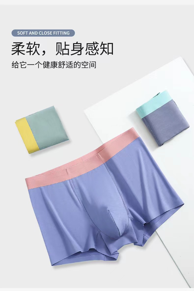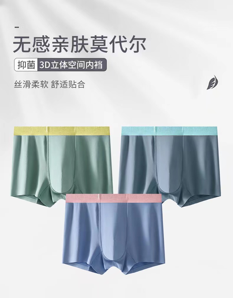 【秋鹭】2411款号50S莫代尔无痕纯色男平角内裤1盒3条
