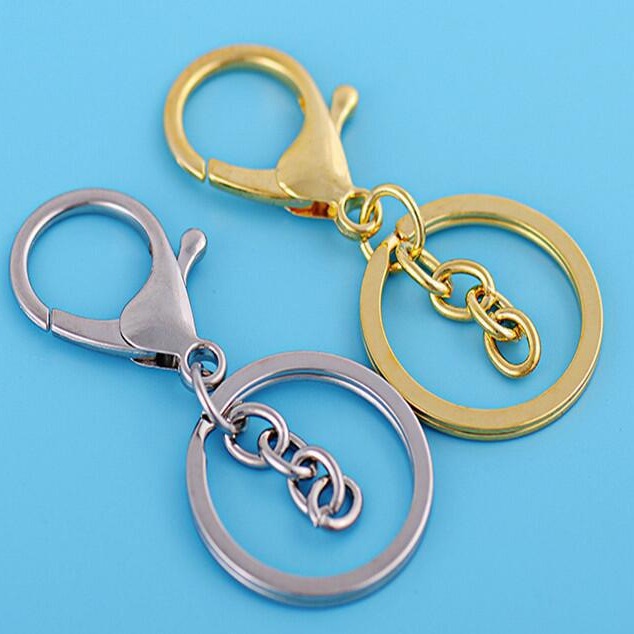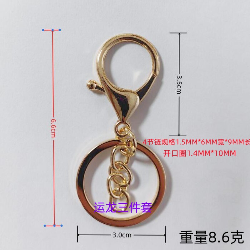 浅金锌合金龙虾扣三件套带链金属钥匙圈带8字扣饰品挂件