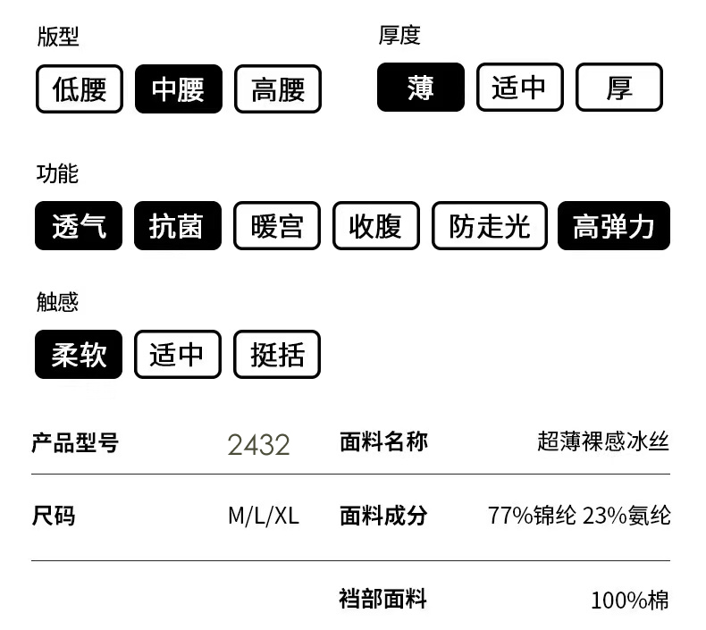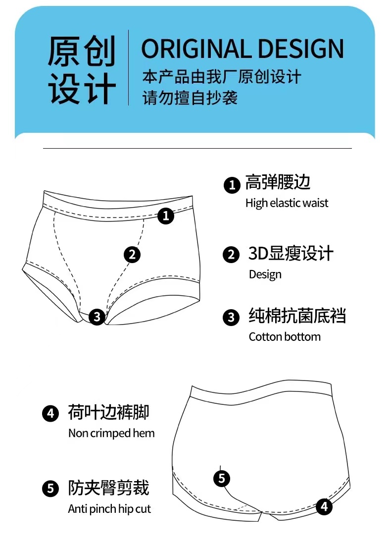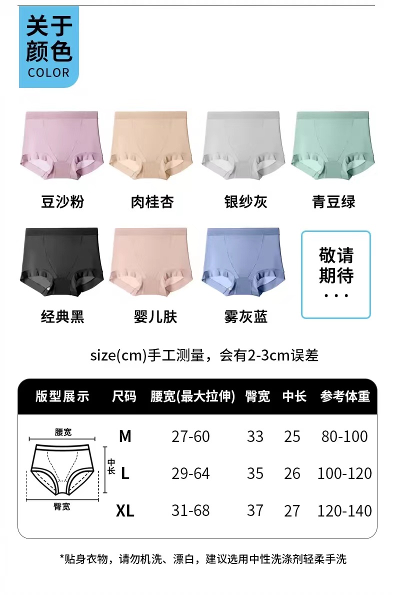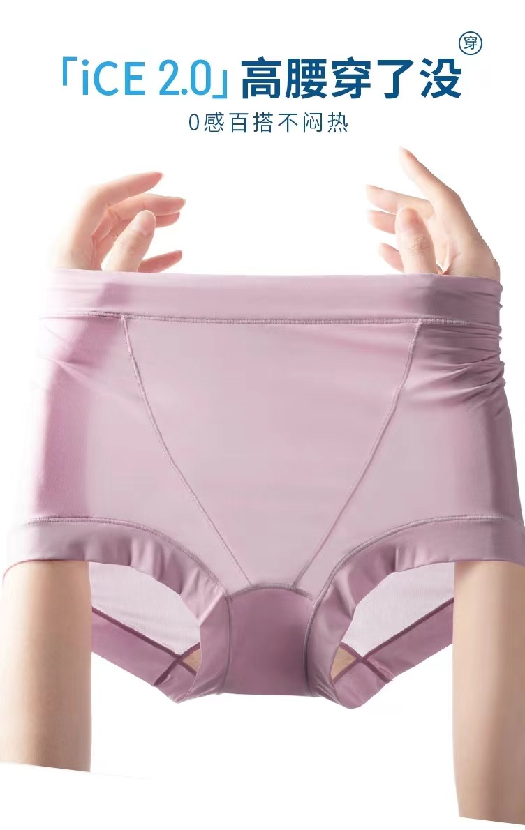 【秋鹭】2432款号高腰冰丝纯棉裆女内裤1盒3条